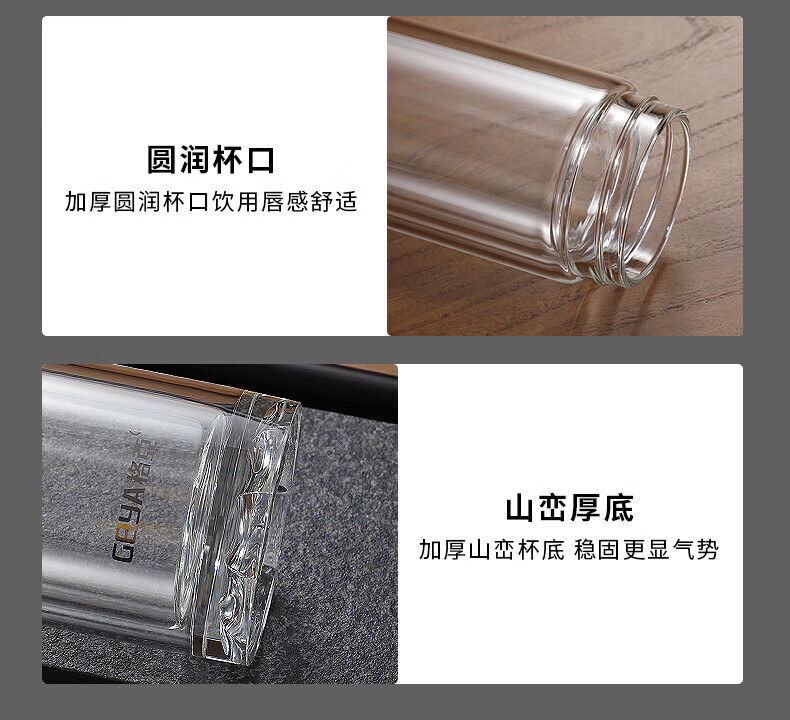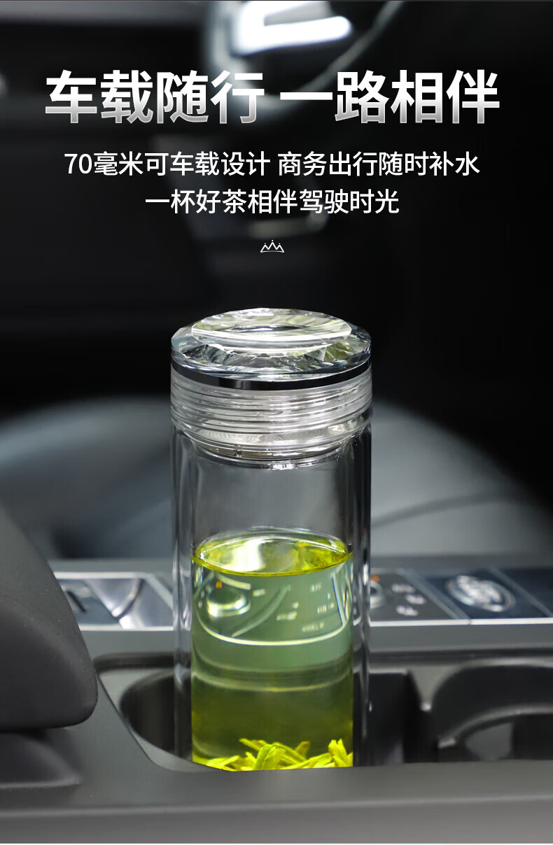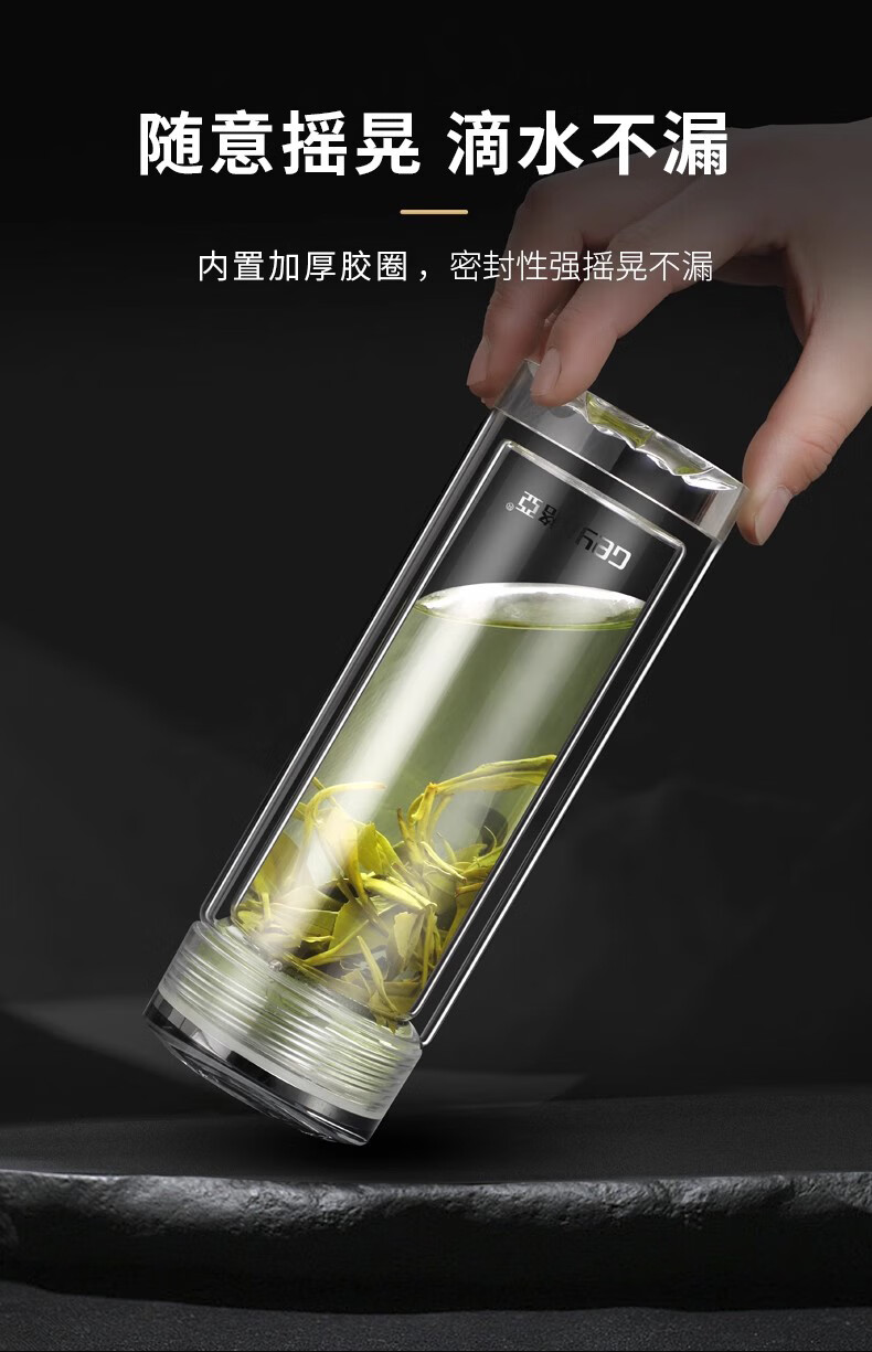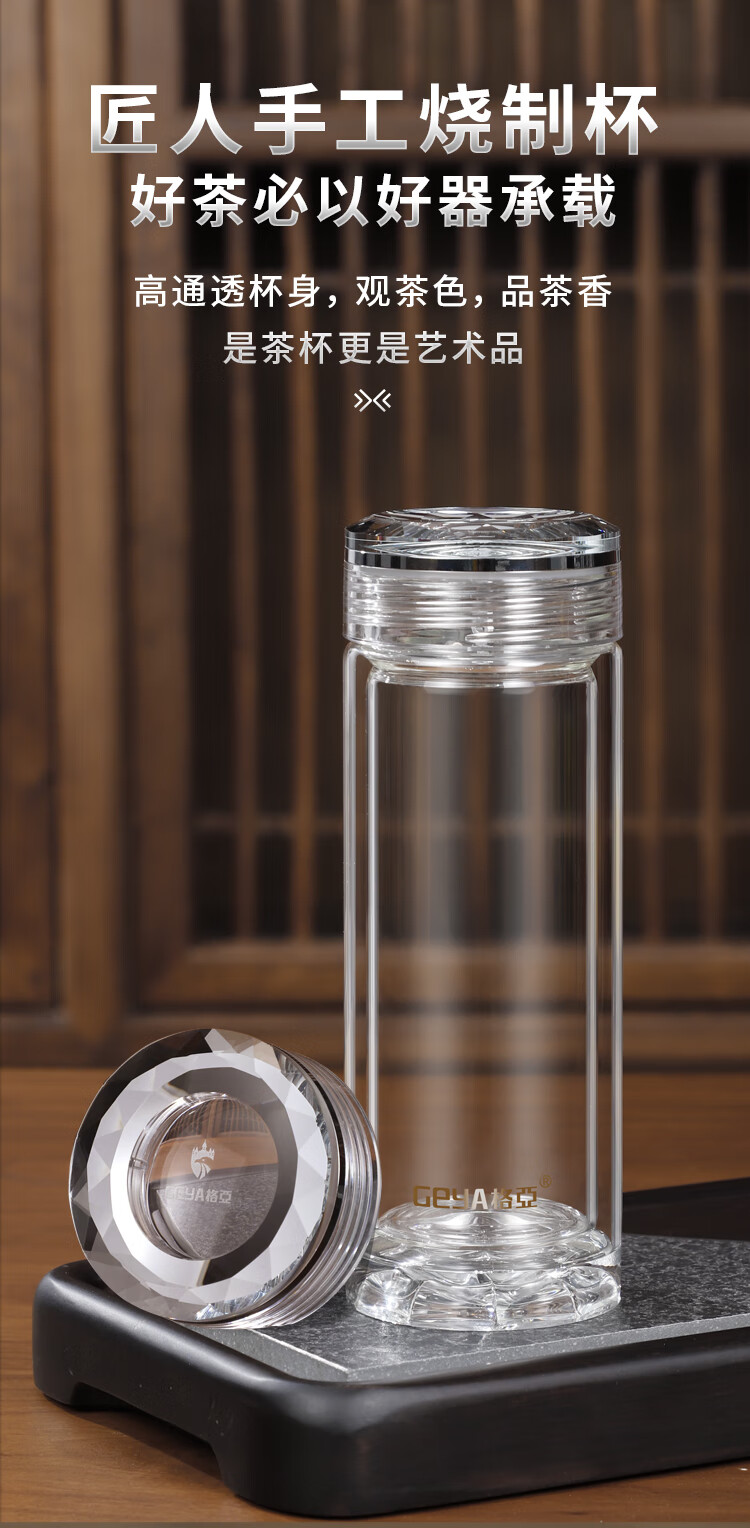 格亚(GEYA)高端玻璃杯隔热双层水杯大容量男茶杯玻璃水杯泡茶杯子办公车载 升级银离子抑菌款400ml 高档礼盒