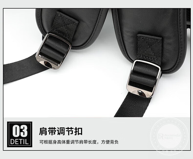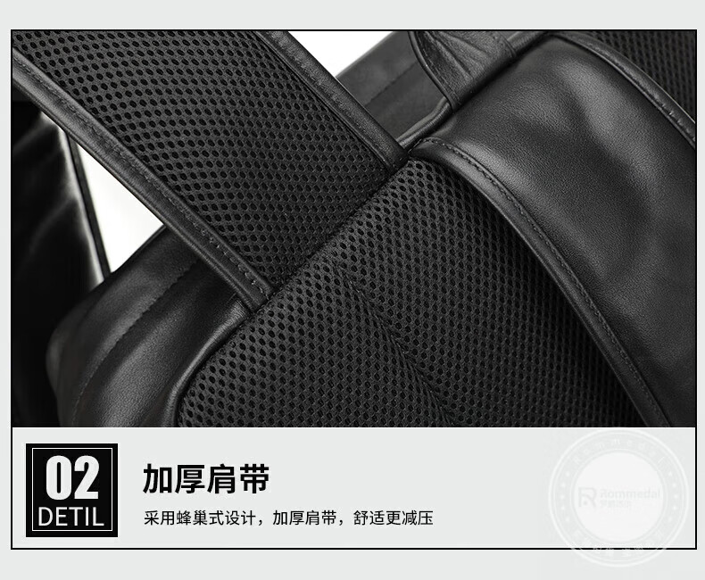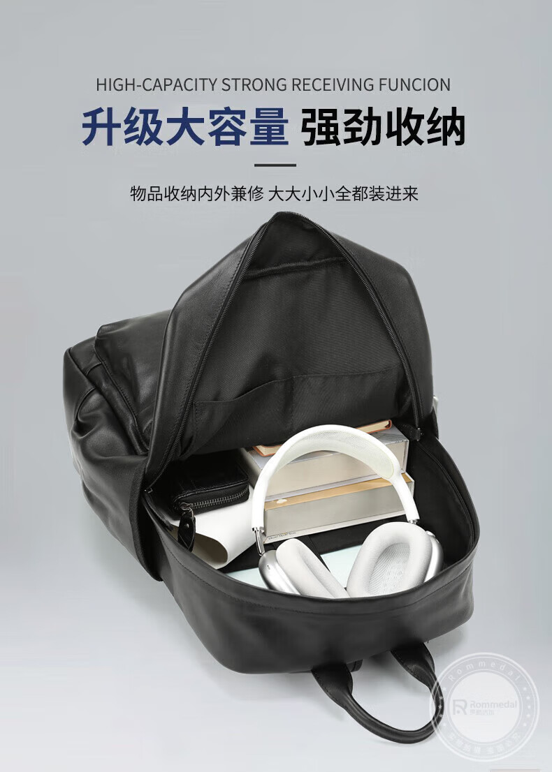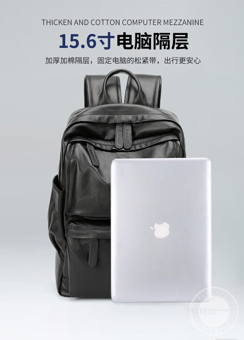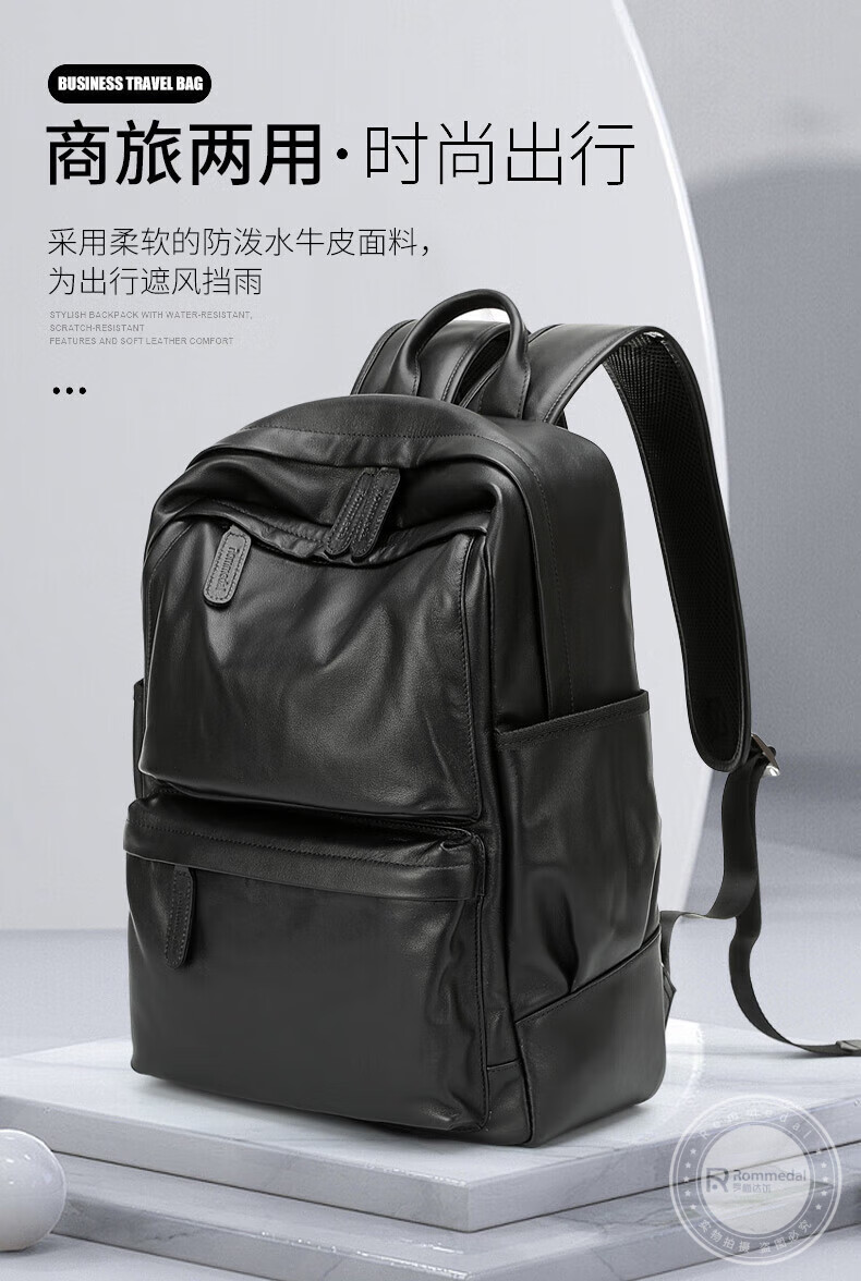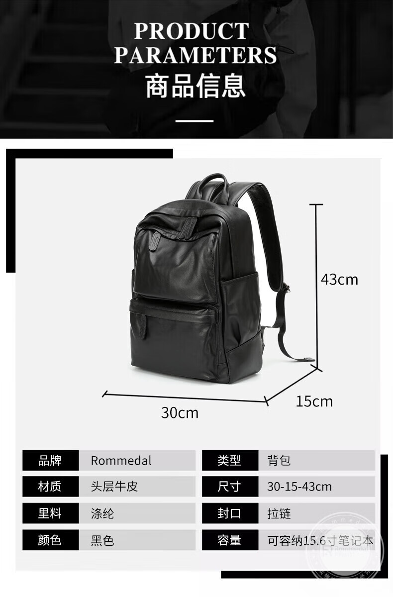 罗梅达尔(Rommedal)真皮双肩包男大容量旅行包男士双肩包电脑包商务休闲背包双肩包 黑色【京东快递】高43*宽30*厚15cm