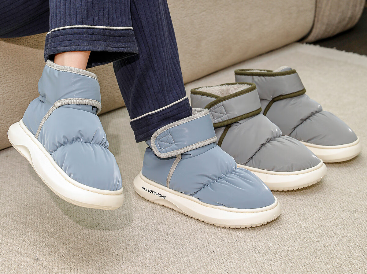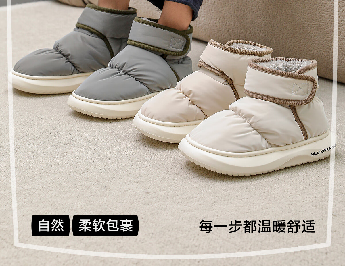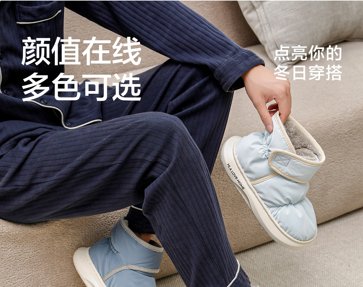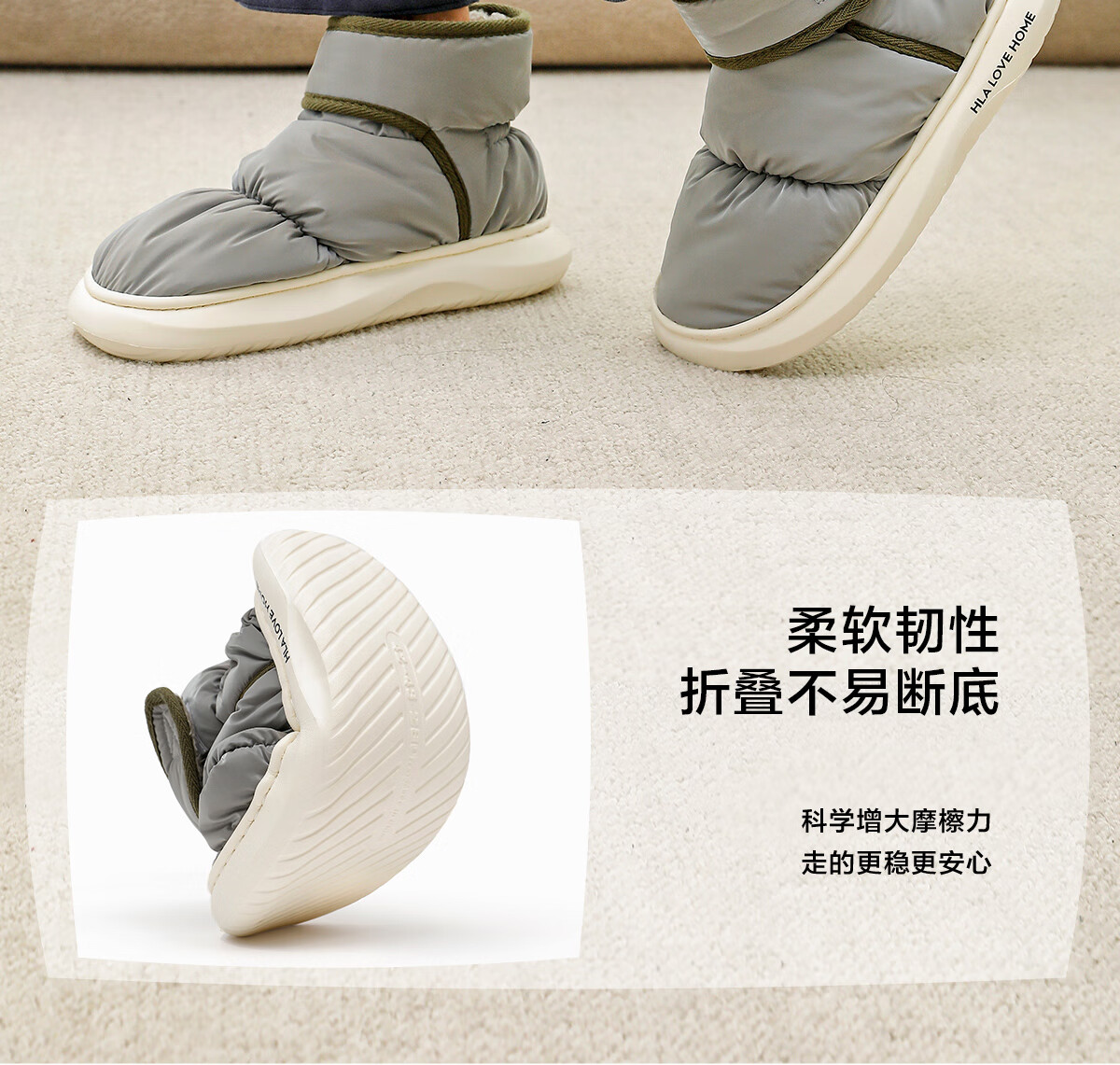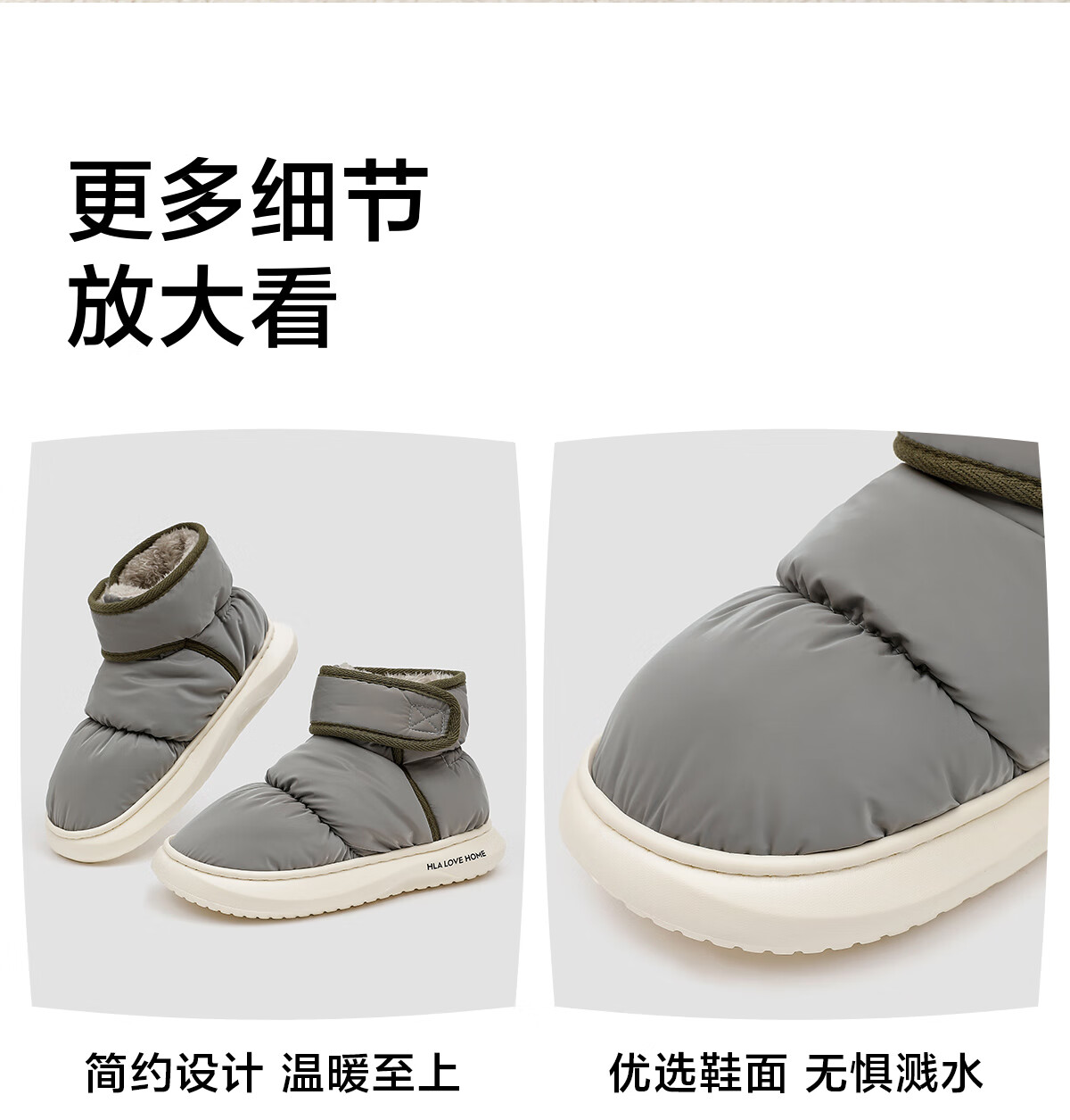 海澜之家(HLA)高帮棉鞋男士冬季居家居防滑厚底保暖情侣魔术贴毛绒包根棉拖鞋女 灰色 44-45 【适合43-44码】