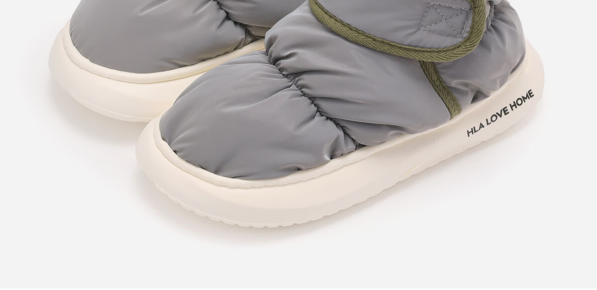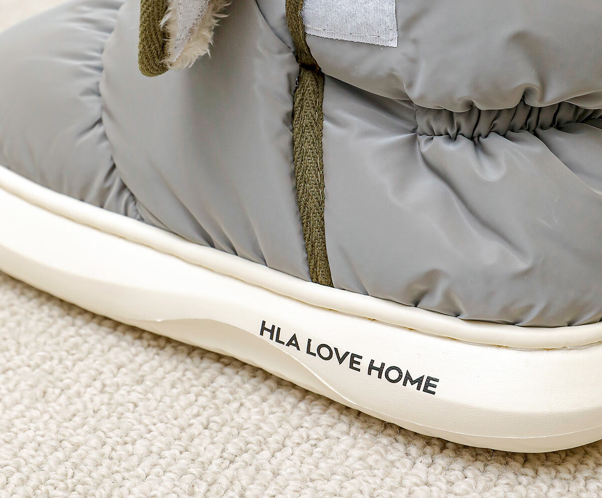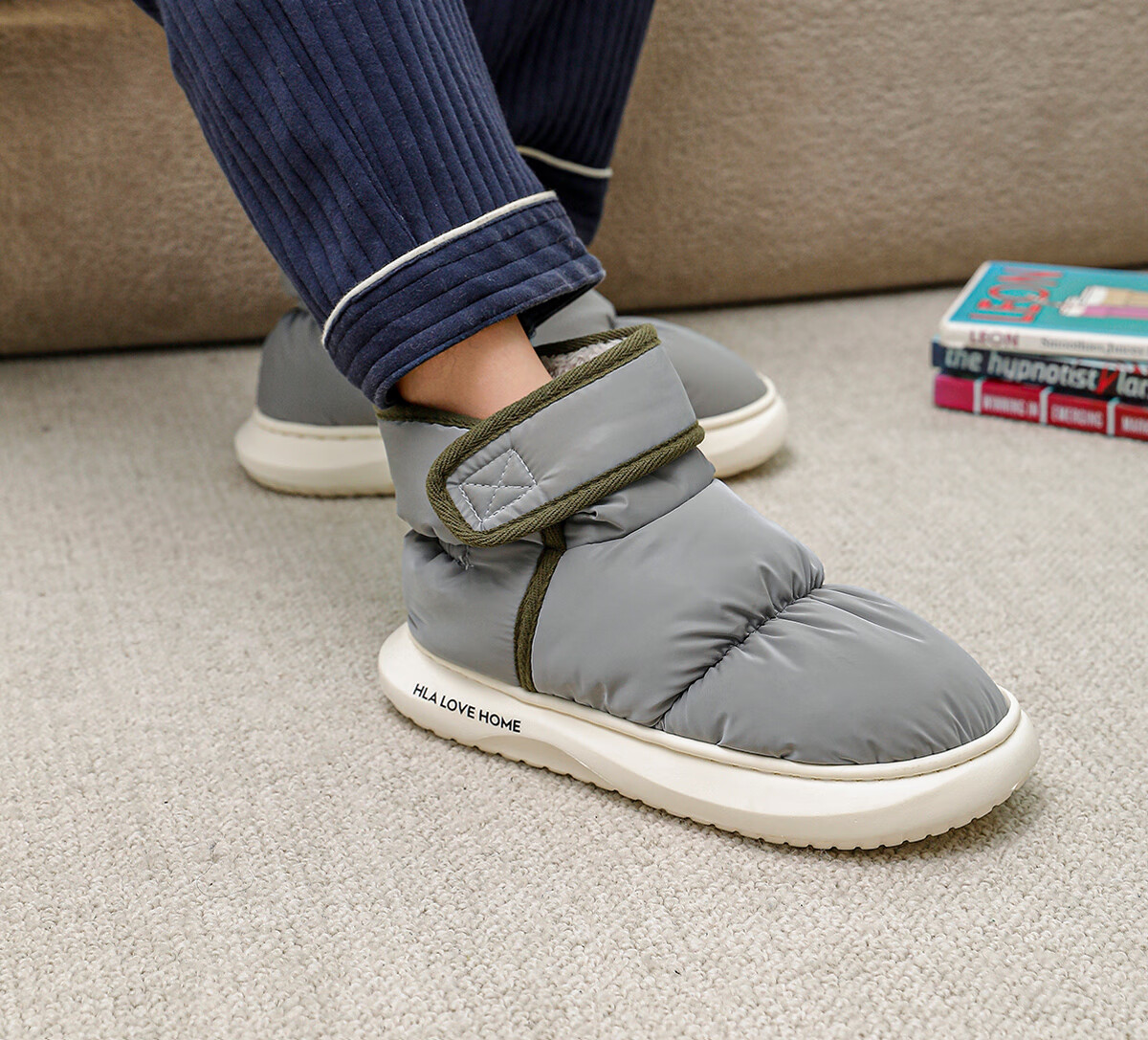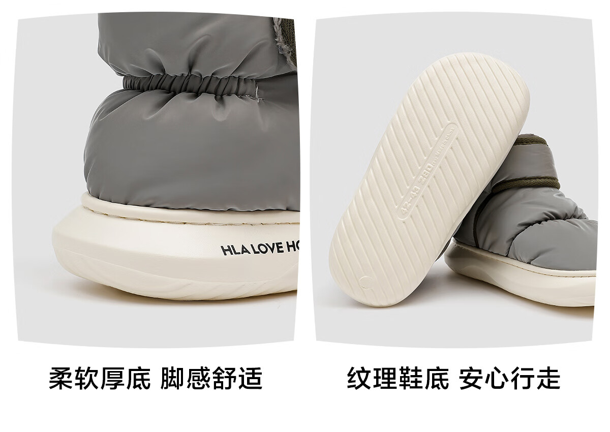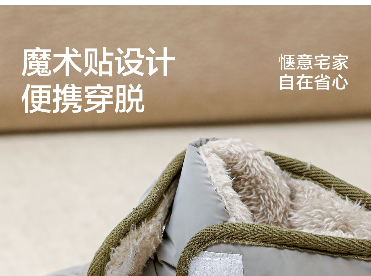 海澜之家(HLA)高帮棉鞋男士冬季居家居防滑厚底保暖情侣魔术贴毛绒包根棉拖鞋女 灰色 44-45 【适合43-44码】