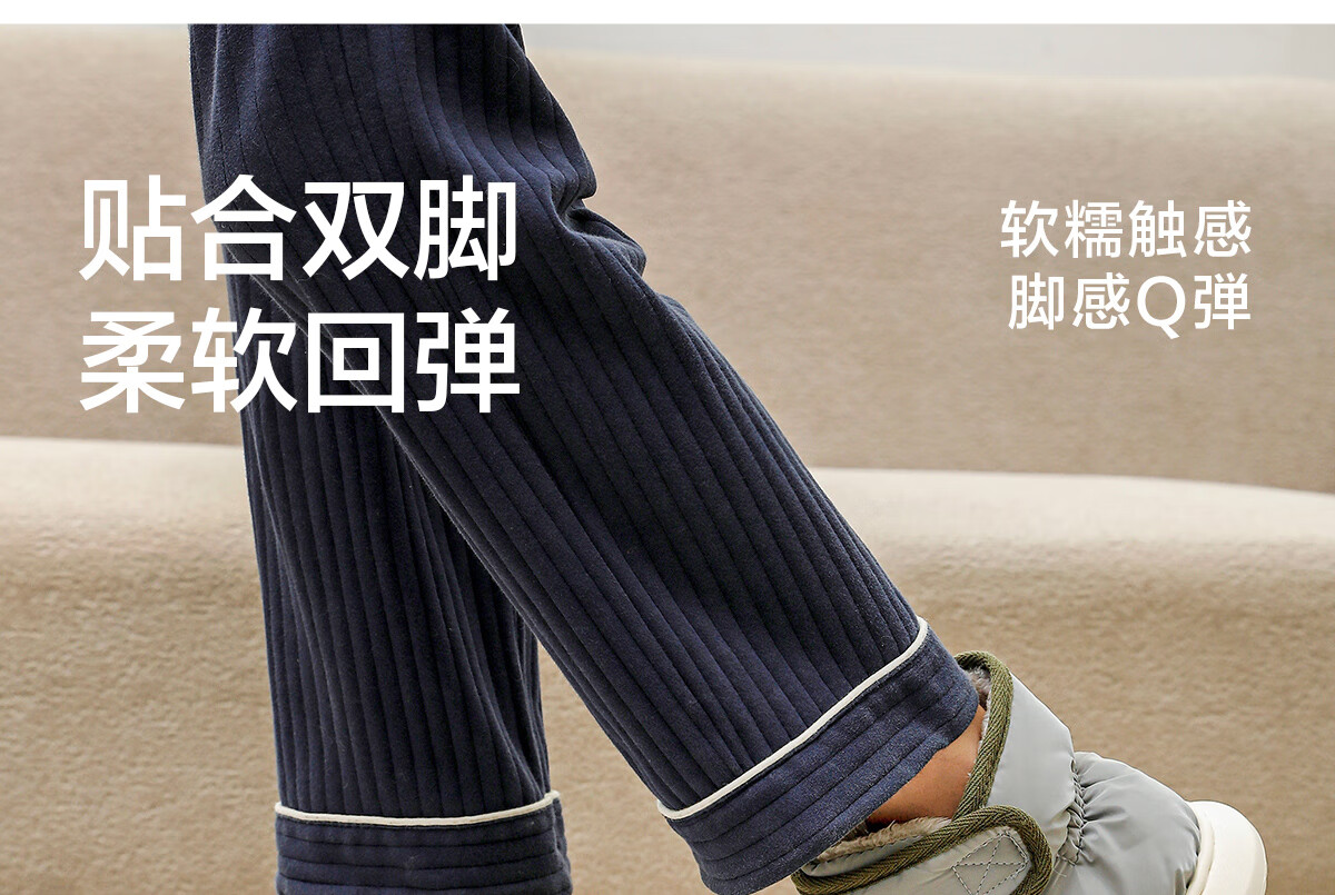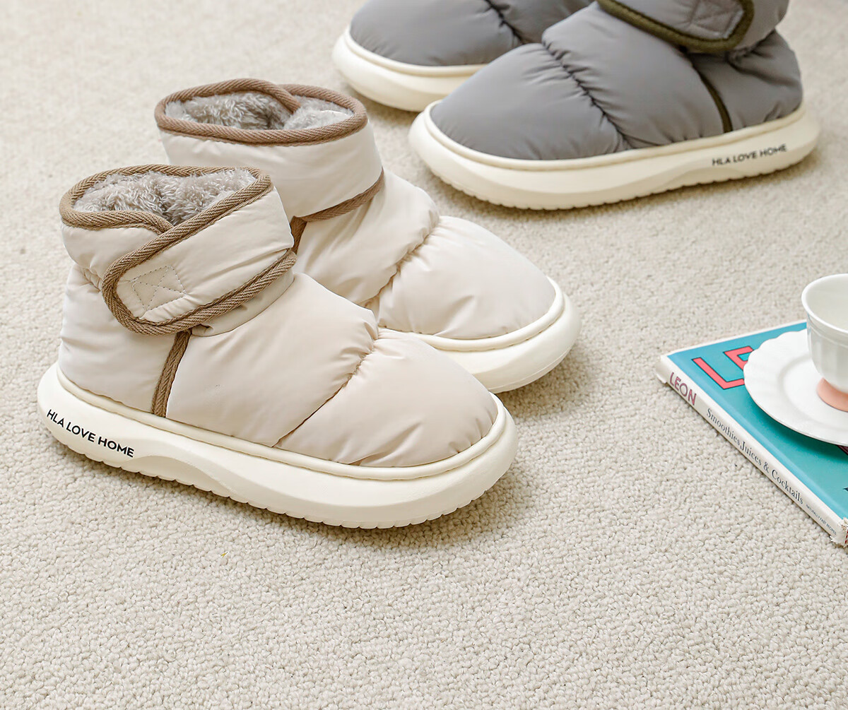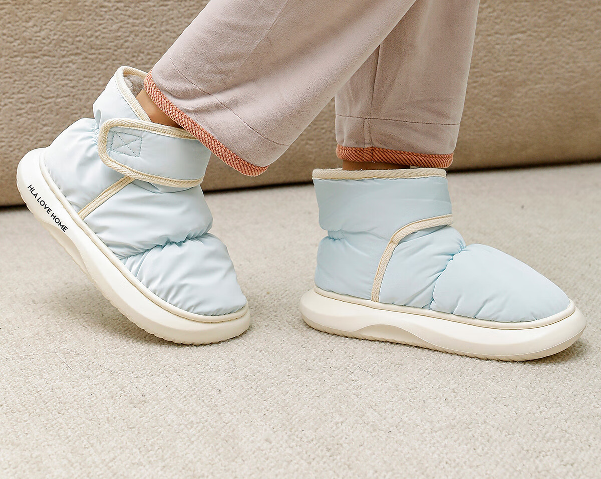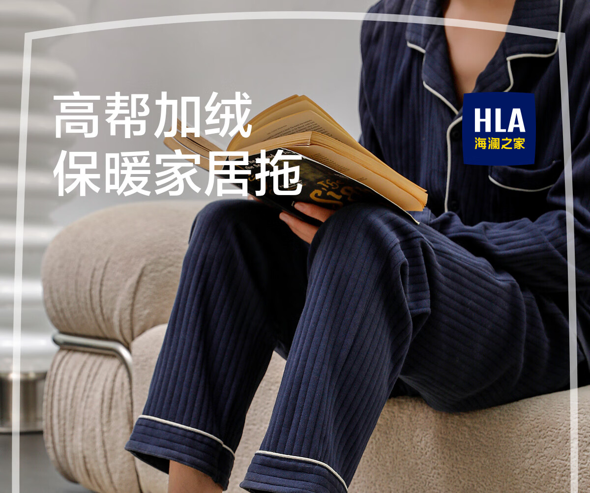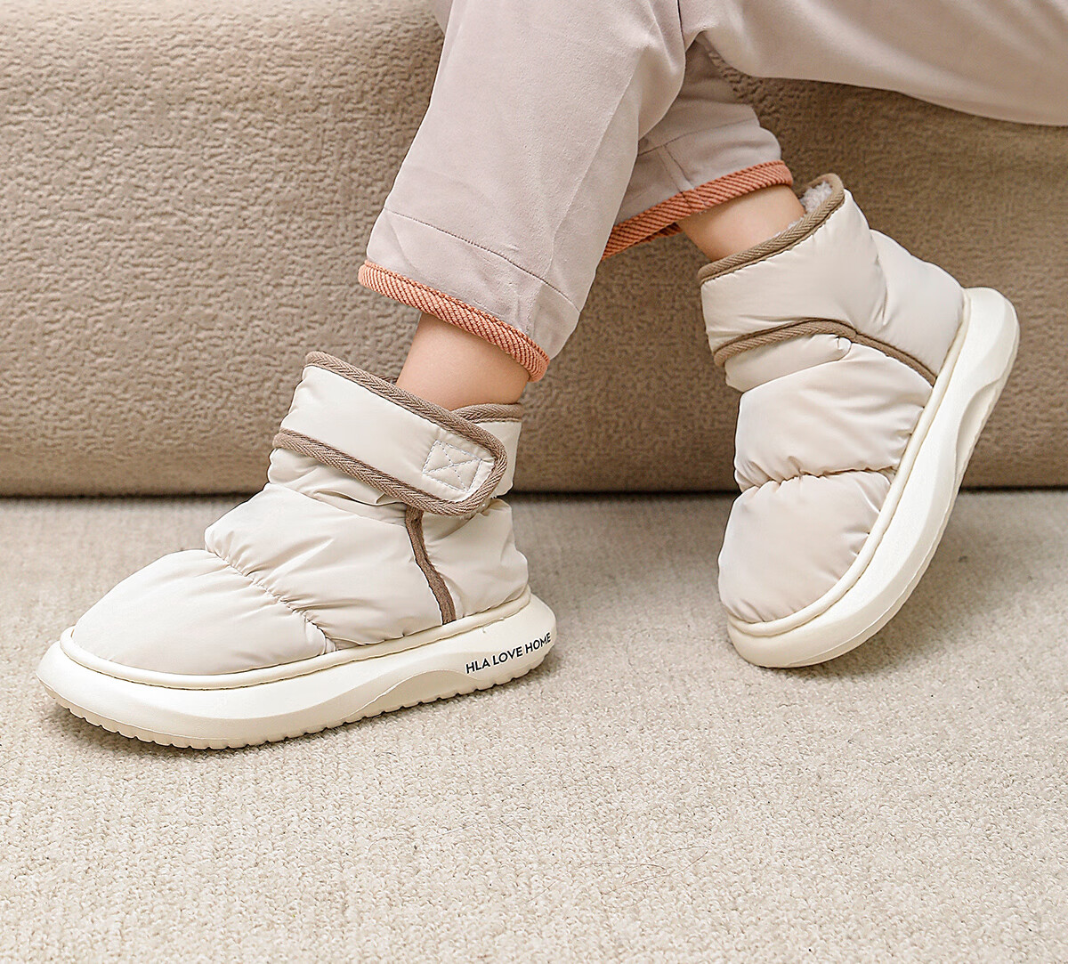 海澜之家(HLA)高帮棉鞋男士冬季居家居防滑厚底保暖情侣魔术贴毛绒包根棉拖鞋女 灰色 44-45 【适合43-44码】