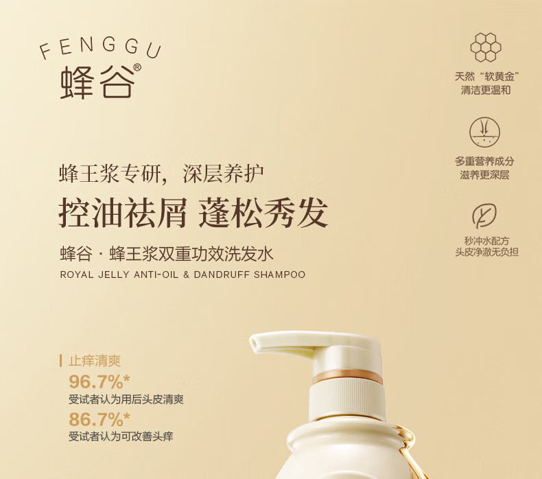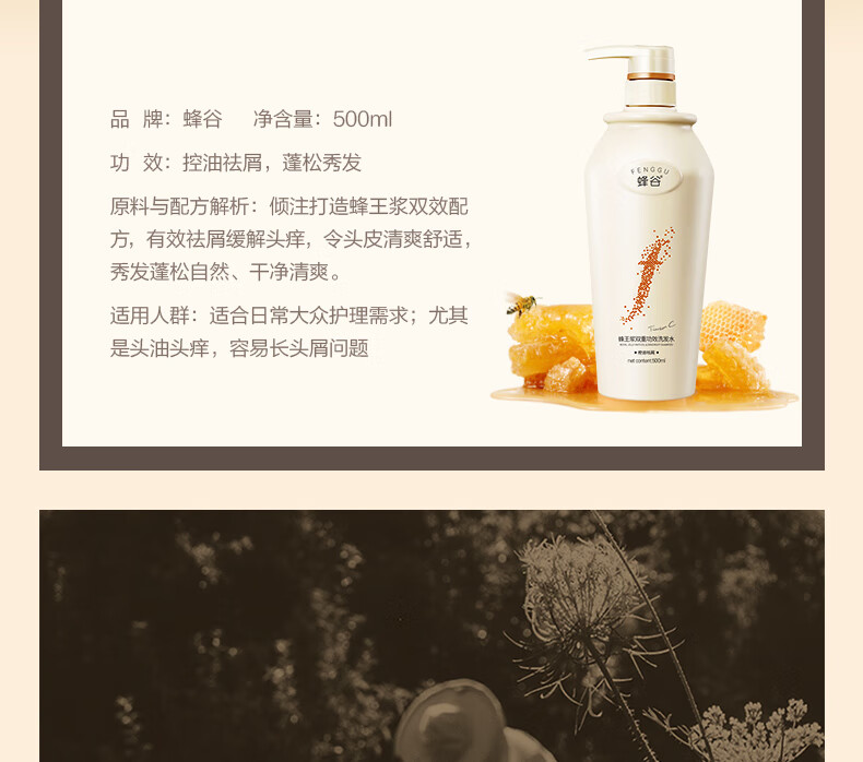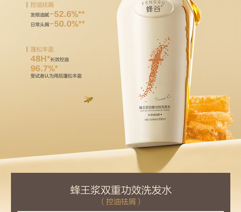 蜂谷阿道夫蜂谷洗发水双重功效洗发水控油祛屑 控油袪屑洗发水500ml*3+发膜260g