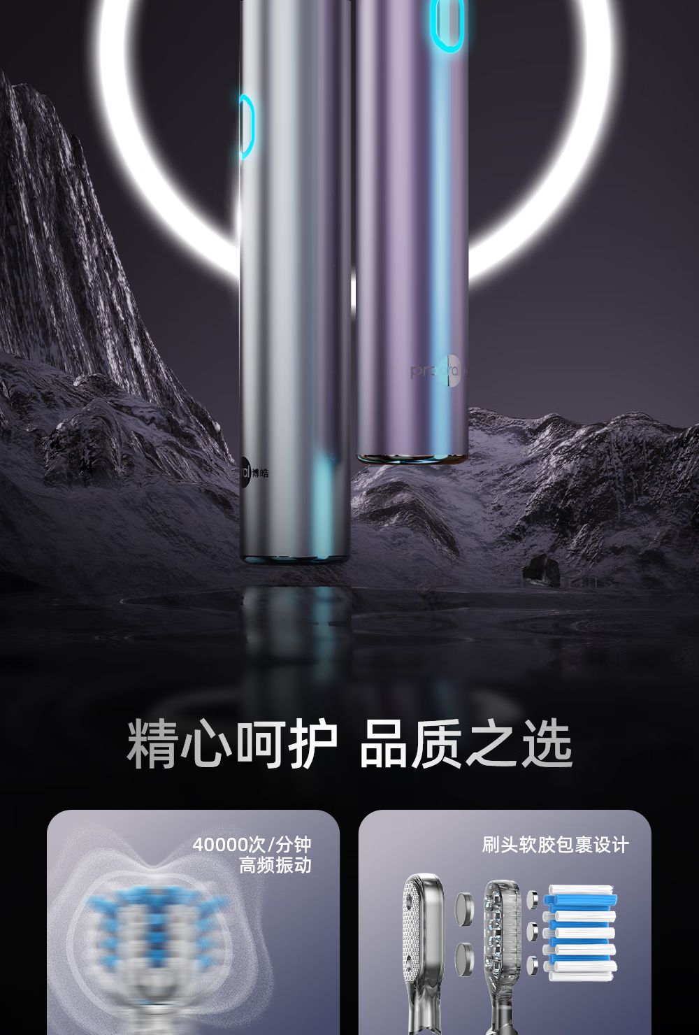 博皓(prooral)电动牙刷牙医推荐扫振智能牙刷情侣款软毛护龈清洁成人自动牙刷送男友女友情人节生日礼物 LS-1 流光银
