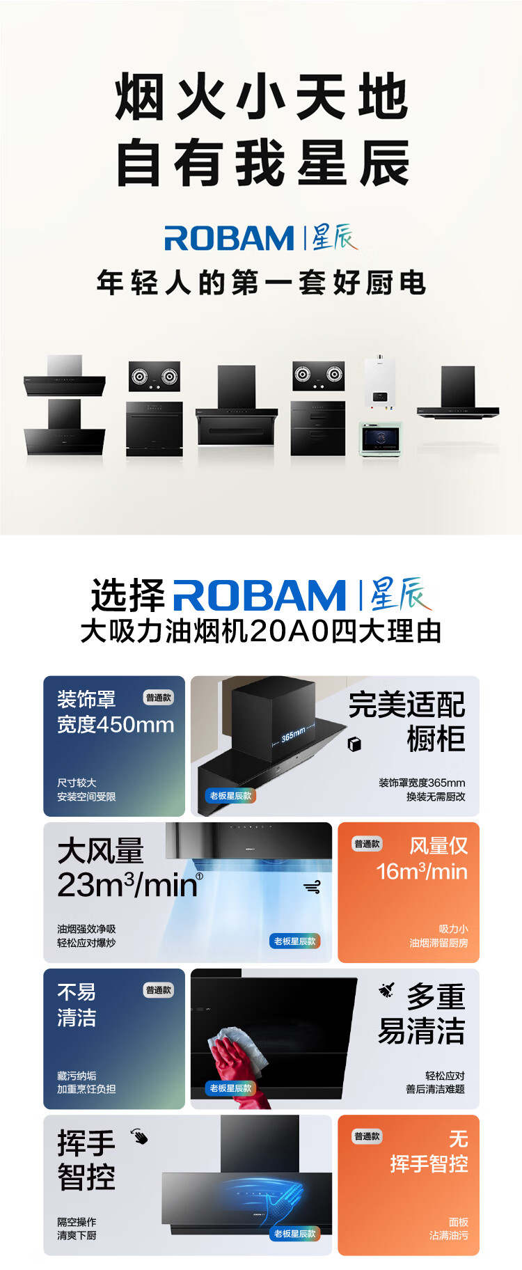 老板(Robam)星辰系列侧吸式抽吸排油烟机23风量家用大吸力家电国家补贴20%一级能效20A0
