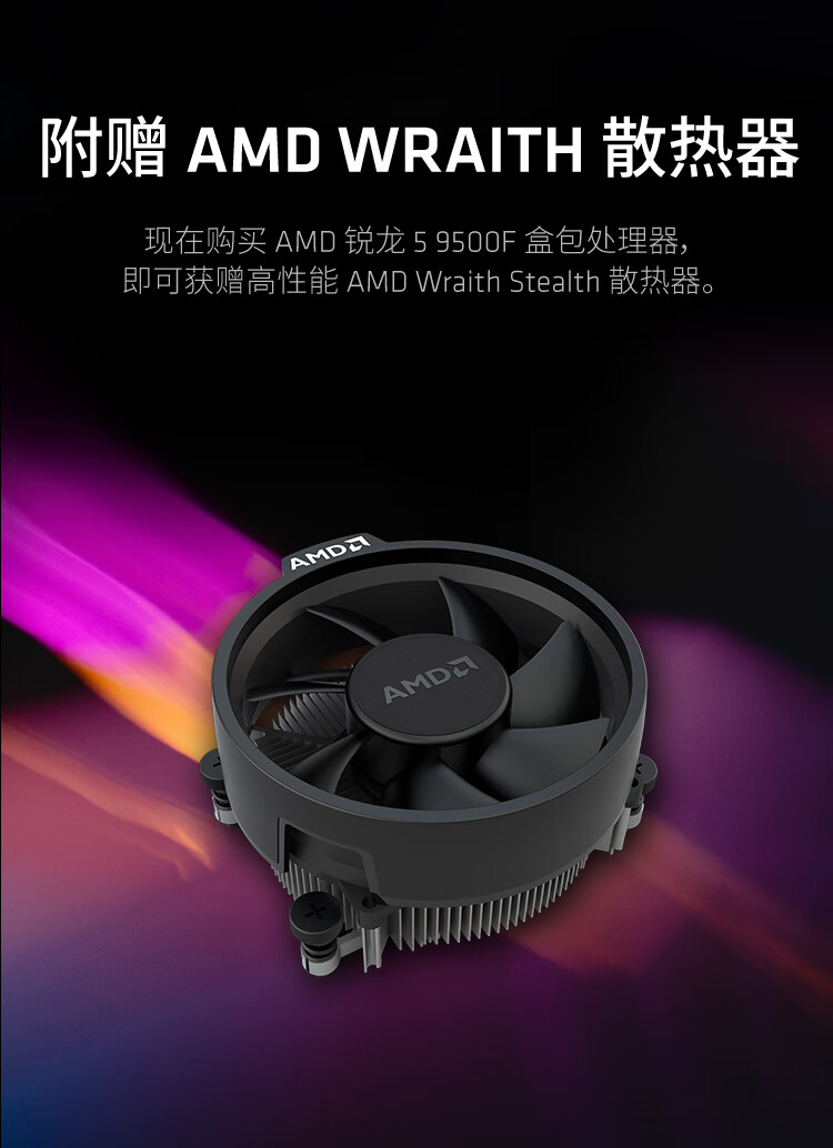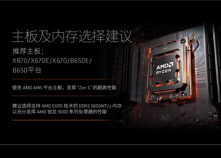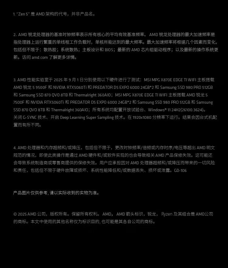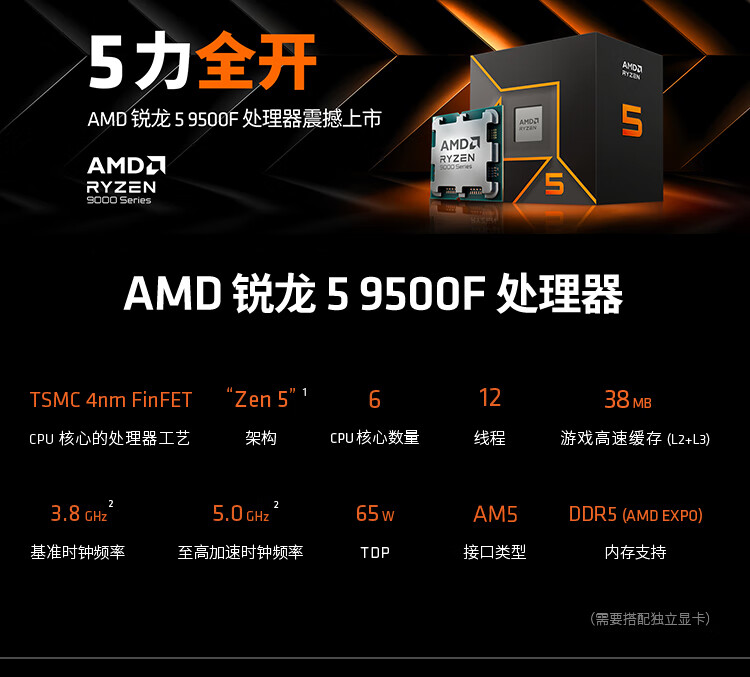 AMD锐龙5 9500F 处理器(R5) 4nm 6核12线程 加速频率至高5GHz盒装CPU 畅玩三角洲/战地/无畏契约/CSGO