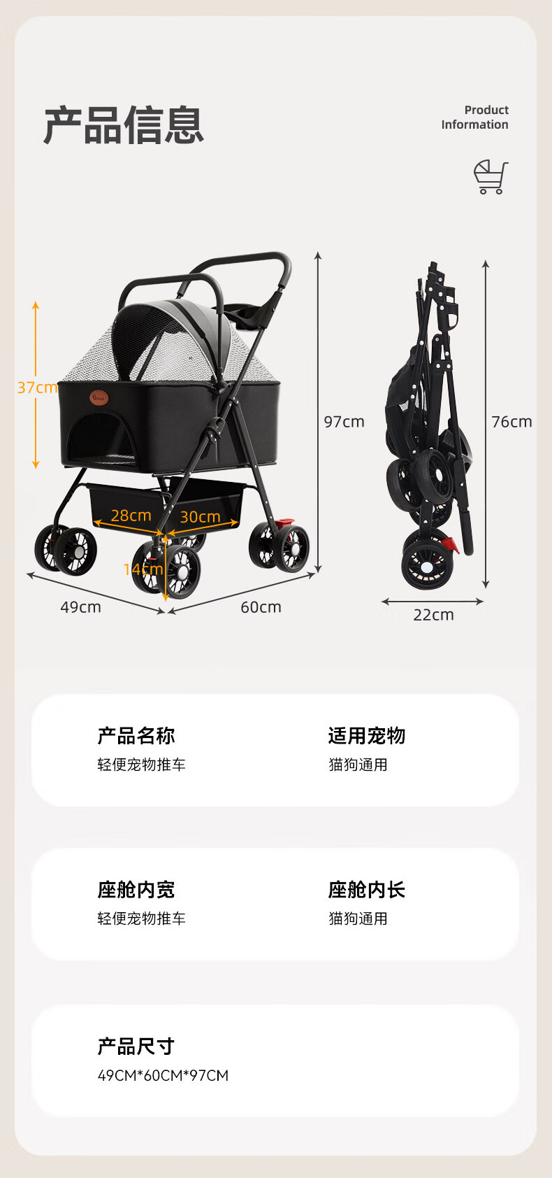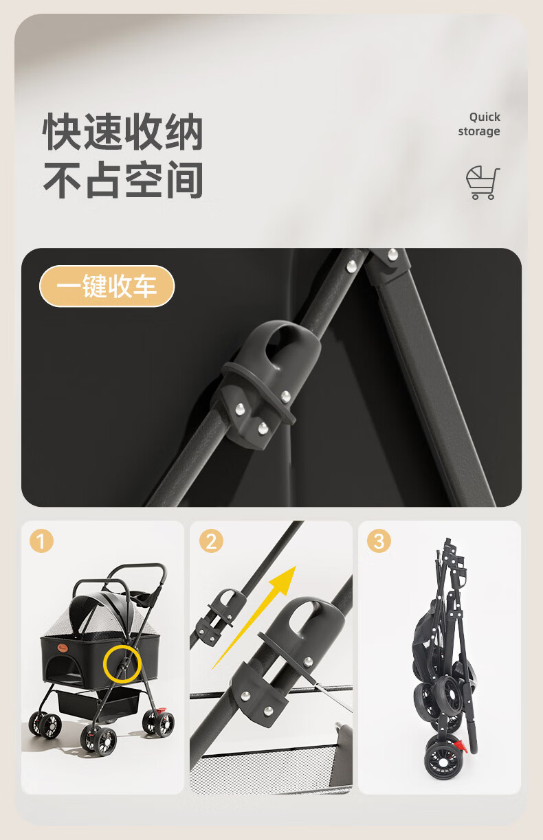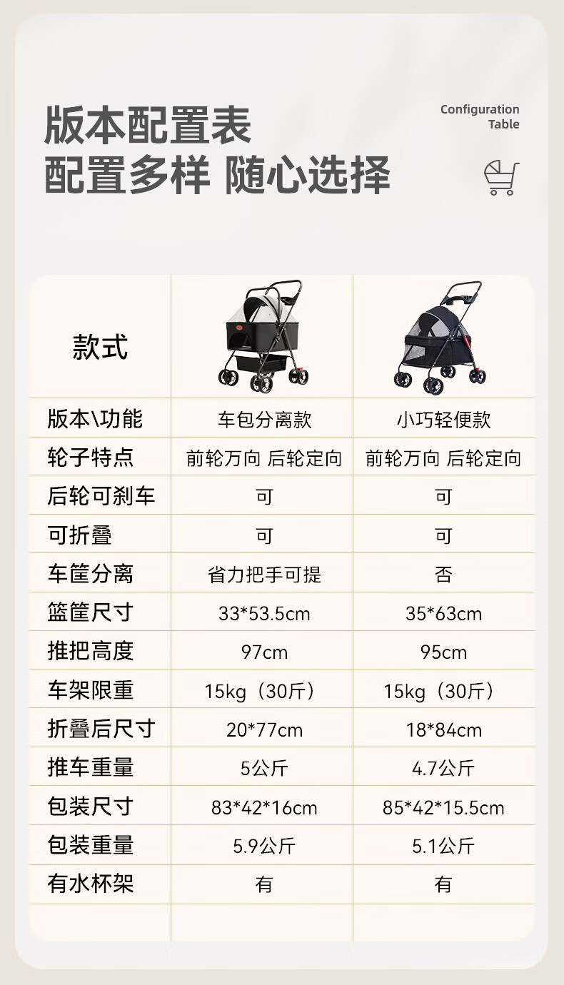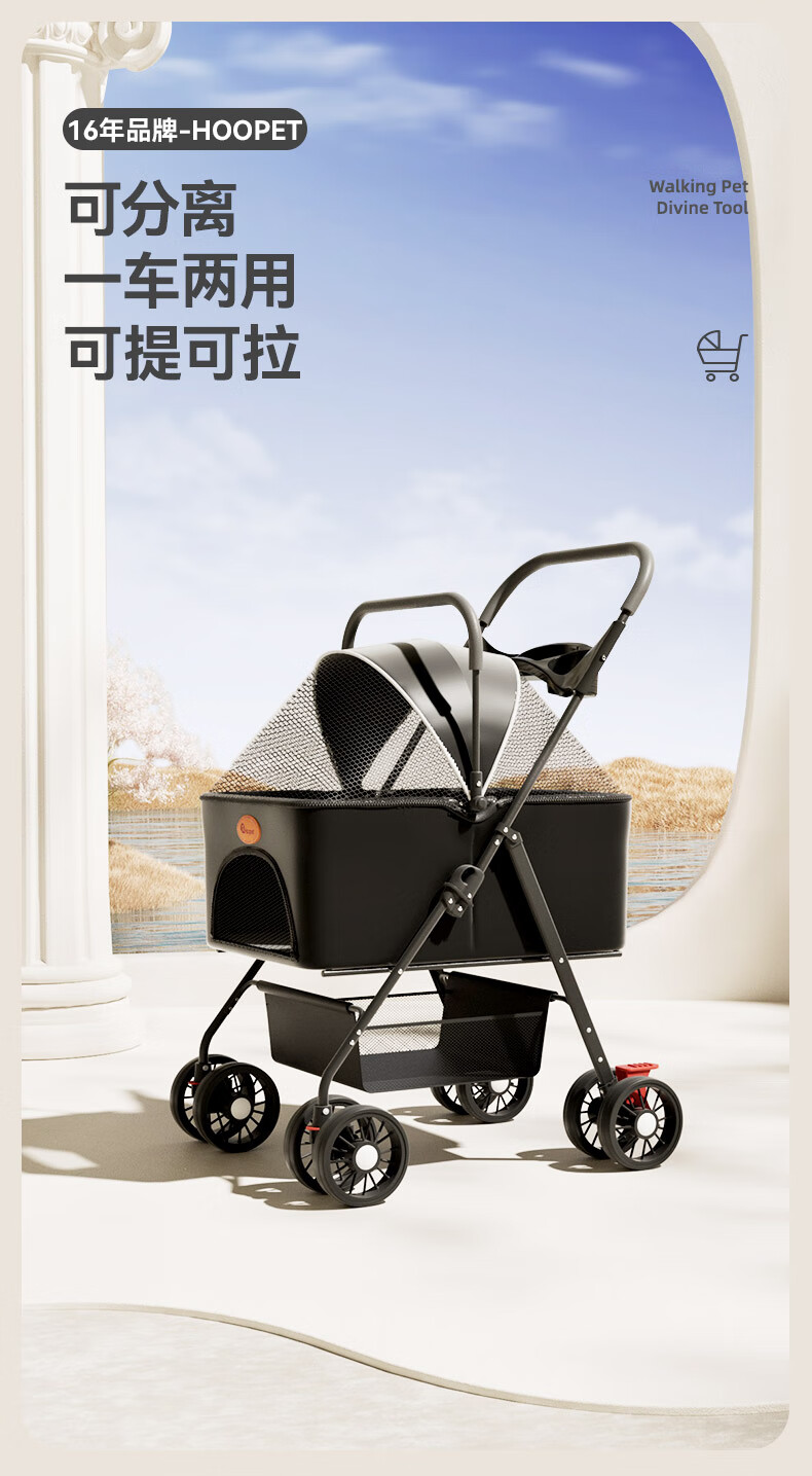 华元宠具(hoopet)宠物推车可拆卸狗狗猫咪外出手推车轻便可折叠小遛狗车溜猫代步车