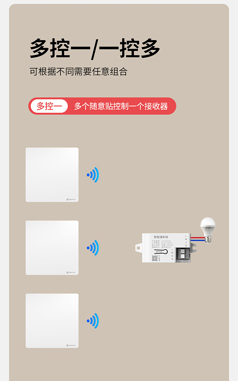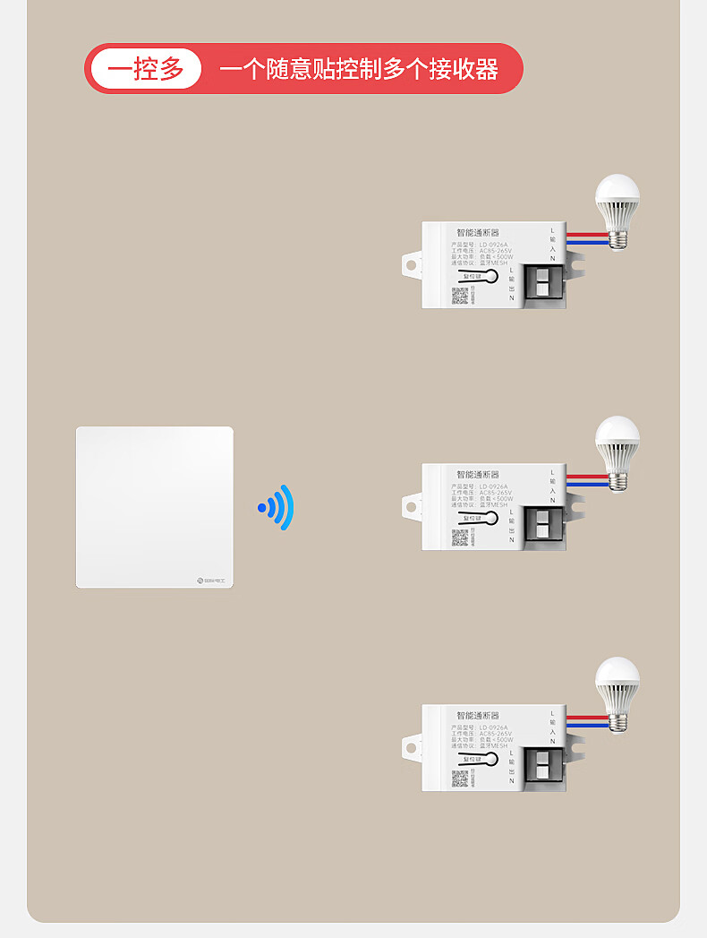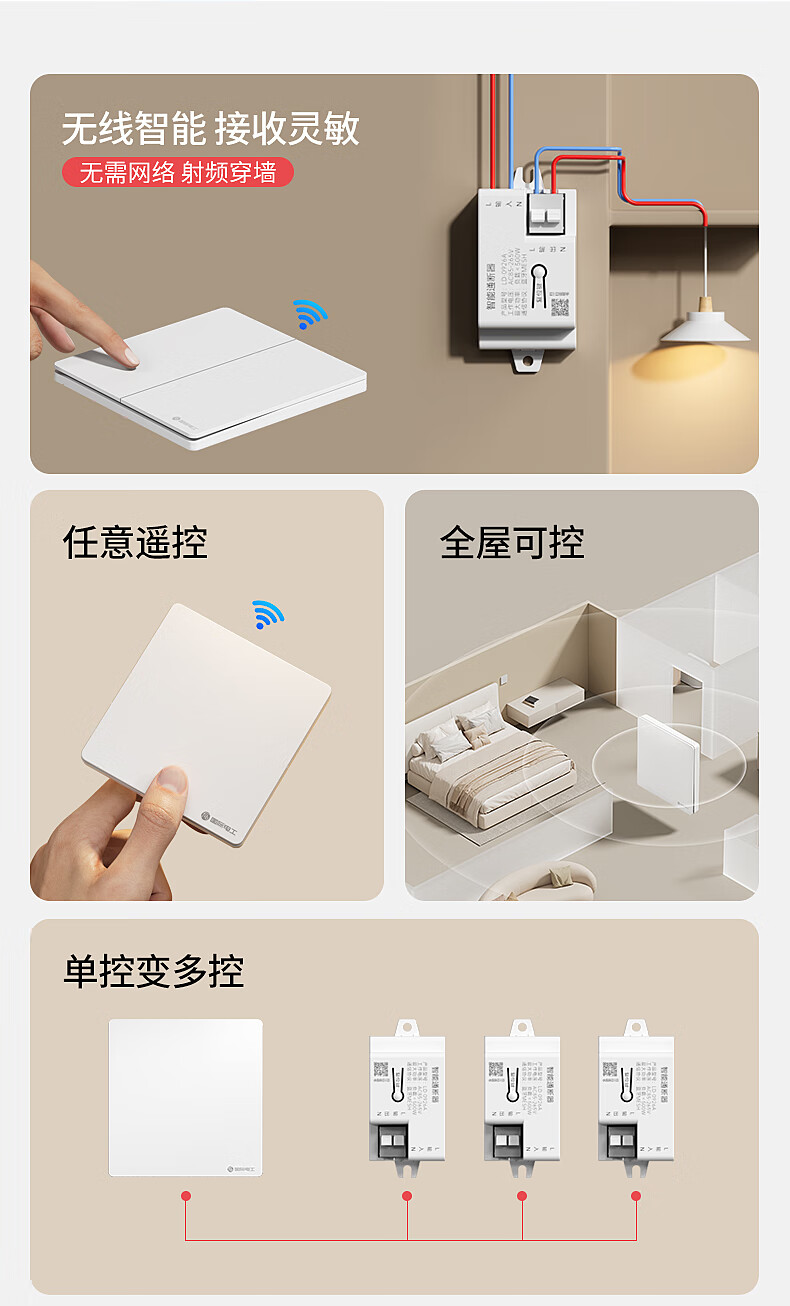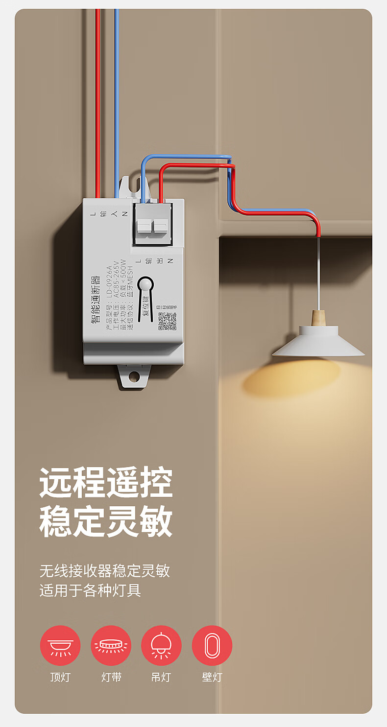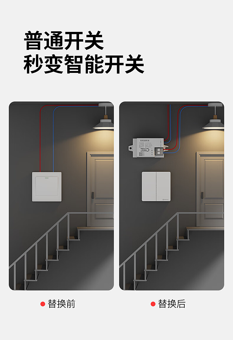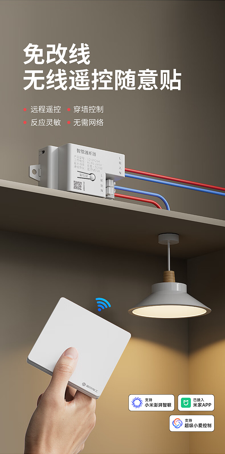 国际电工已接入米家APP智能mesh通断器小爱同学语音控制灯具无线遥控开关 一开/一拖一(智能接收器 *1+无线开关*1)