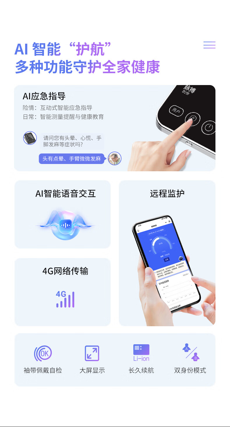 爱奥乐AI血压计医用级血压测量仪器语音播报4G传输AI-100 【智能健康医生】AI血压计AI-100