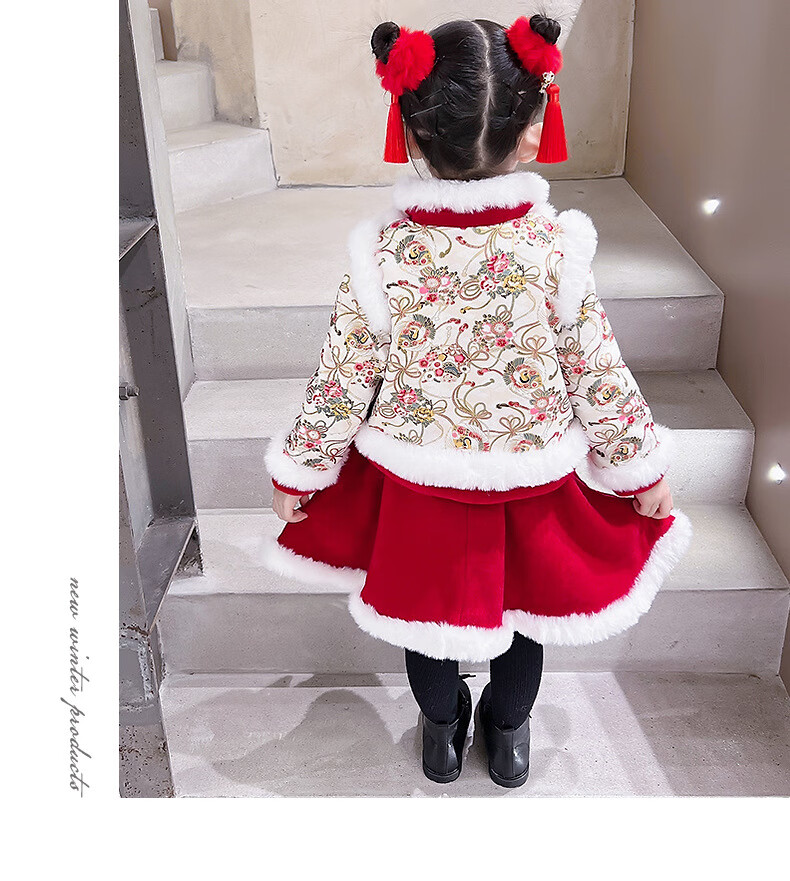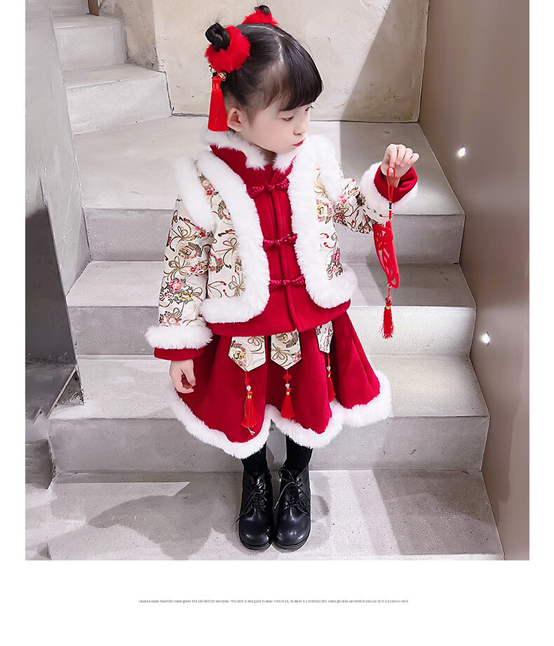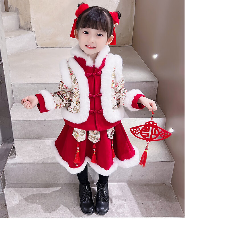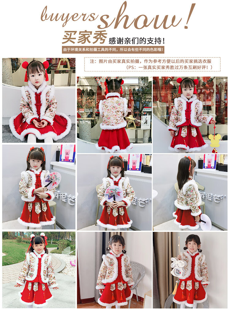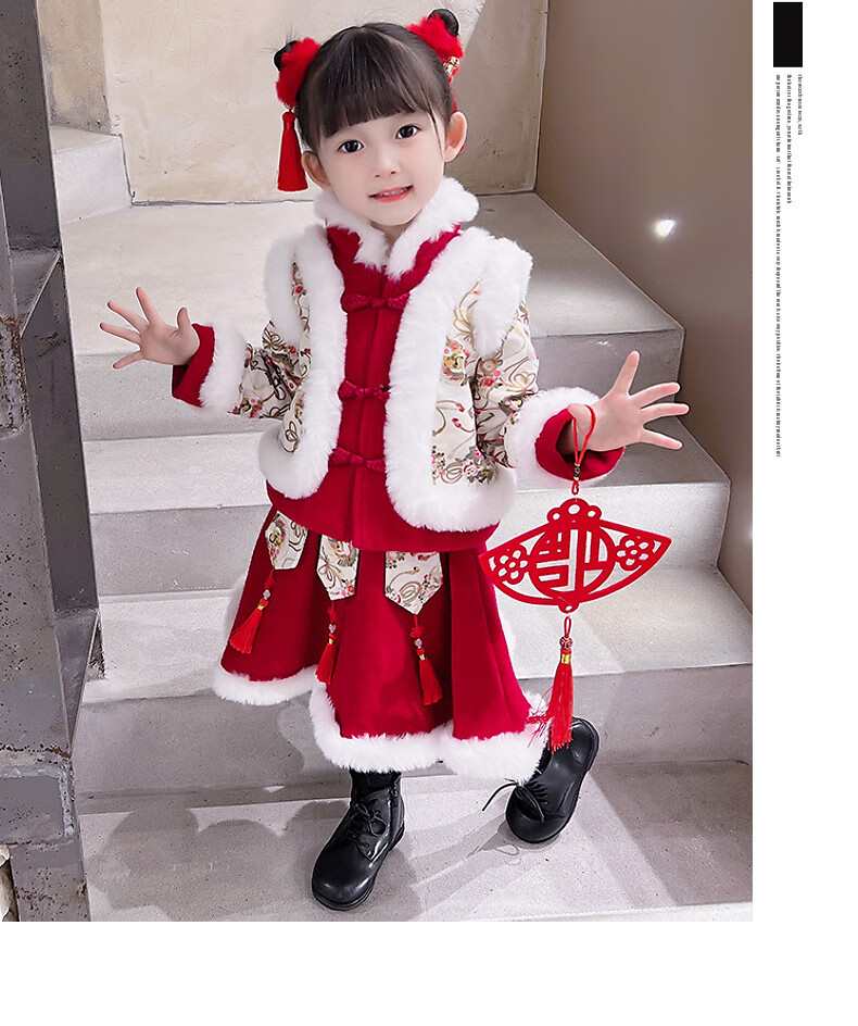 贝婴初(BEIYINGCHU)汉服女童新年衣服儿童中国风马年唐装过年宝宝拜年服2026年新款 上袄+裙子+裤袜+头饰 140 (建议身高125-135)