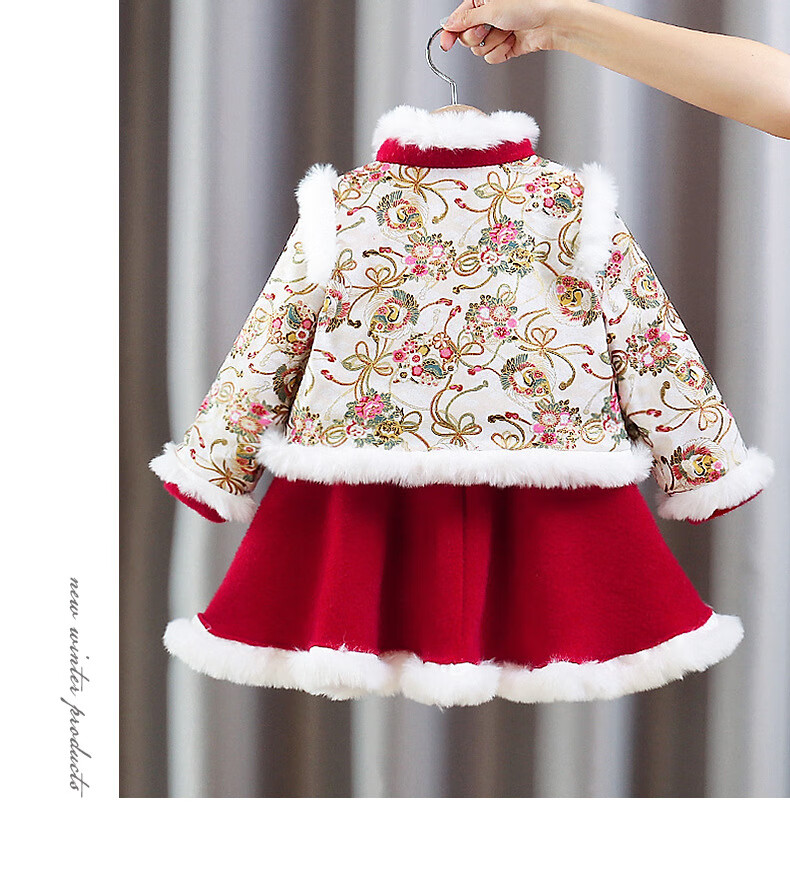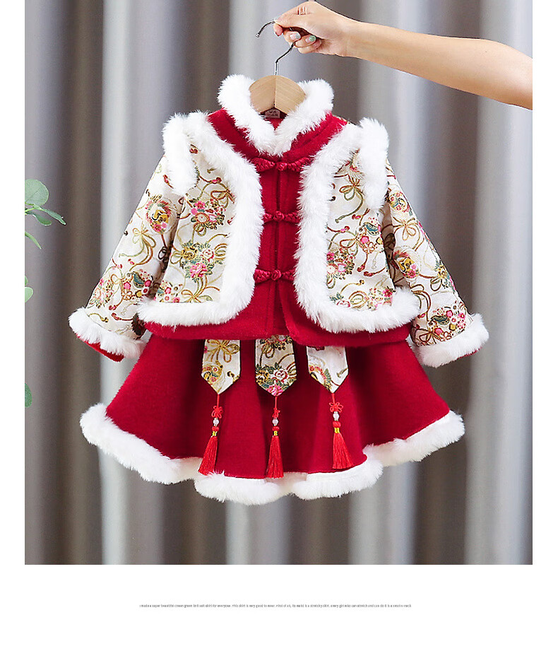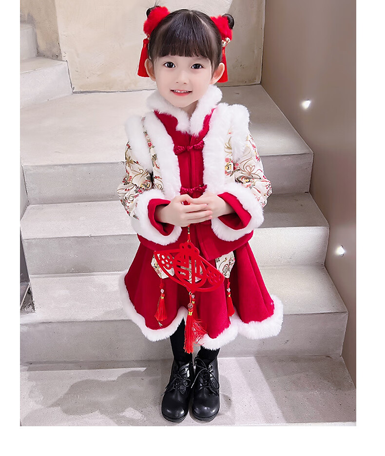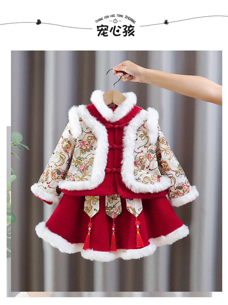 贝婴初(BEIYINGCHU)汉服女童新年衣服儿童中国风马年唐装过年宝宝拜年服2026年新款 上袄+裙子+裤袜+头饰 140 (建议身高125-135)