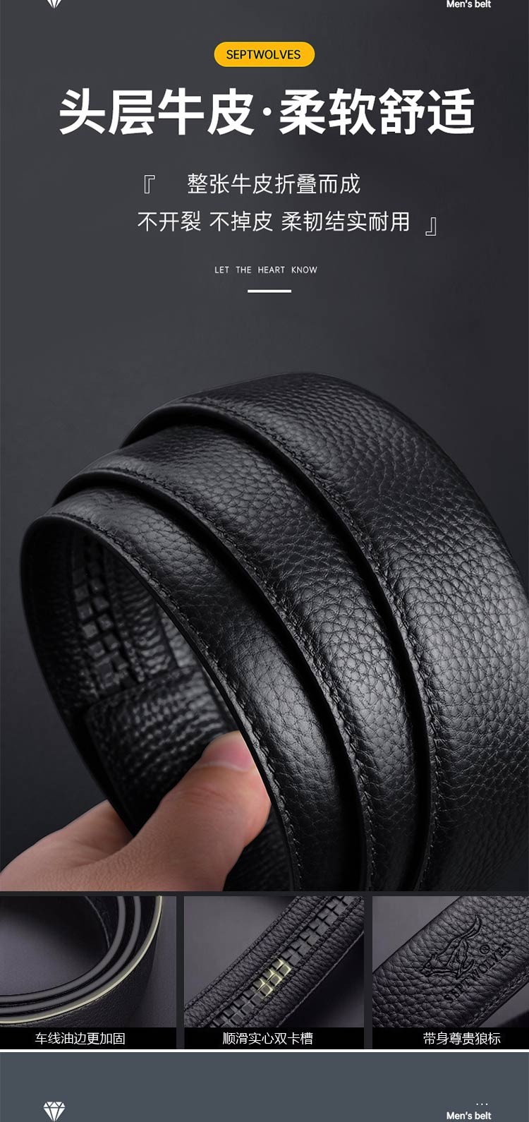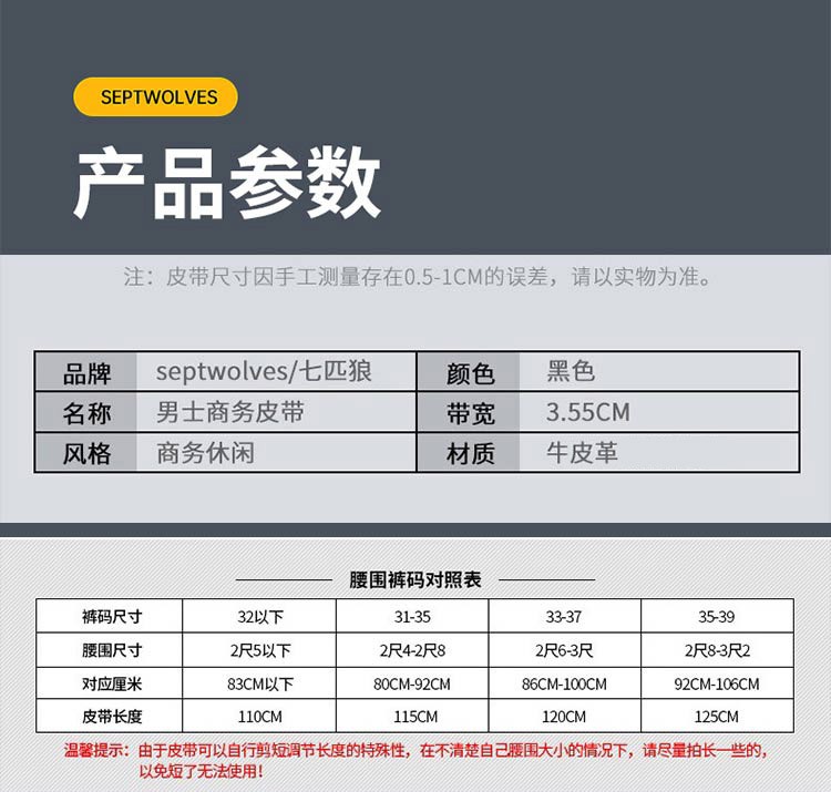 七匹狼男士皮带男潮纯牛皮年轻人真皮情人节鳄鱼2020新款腰带 啡色 125cm