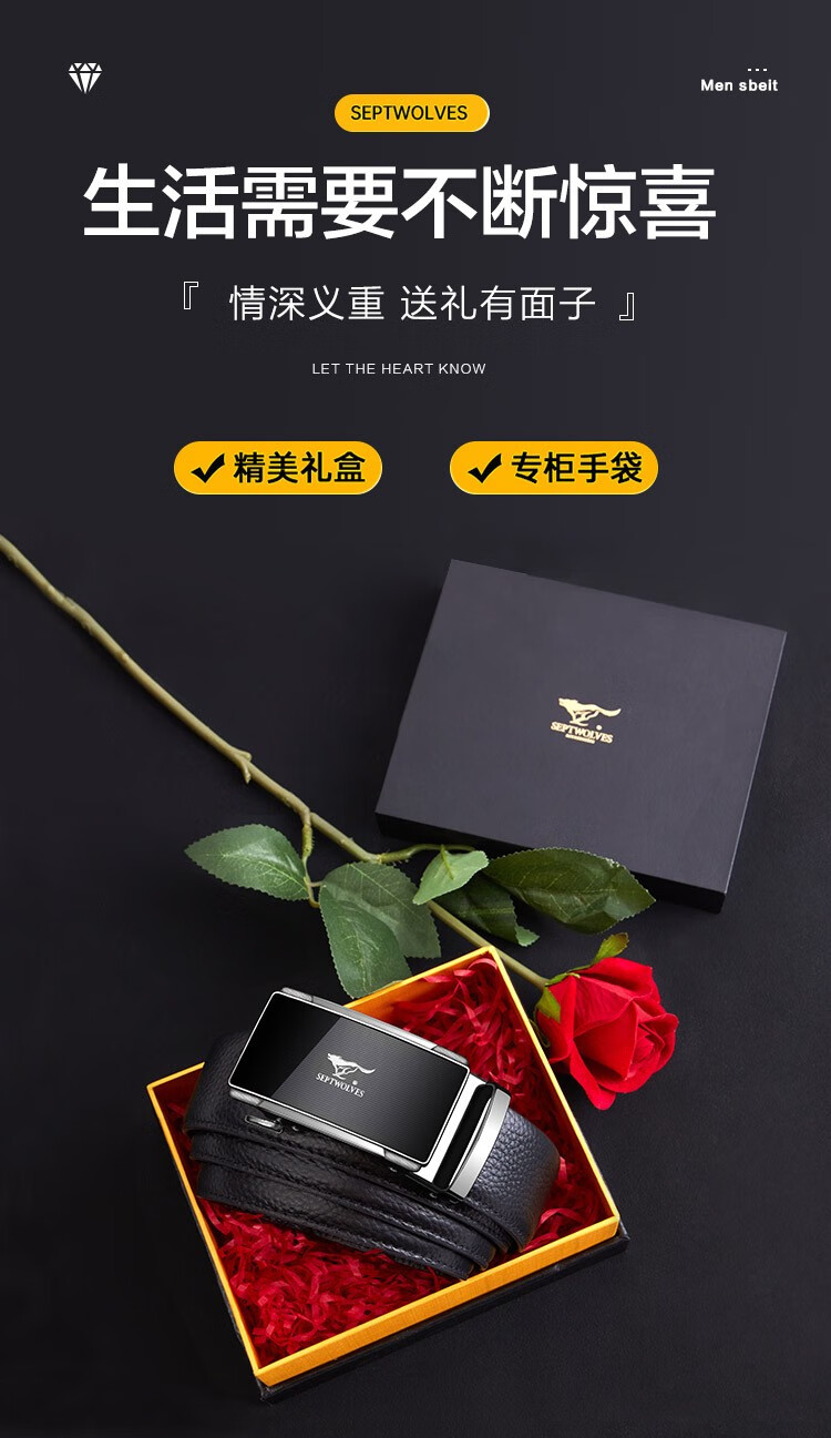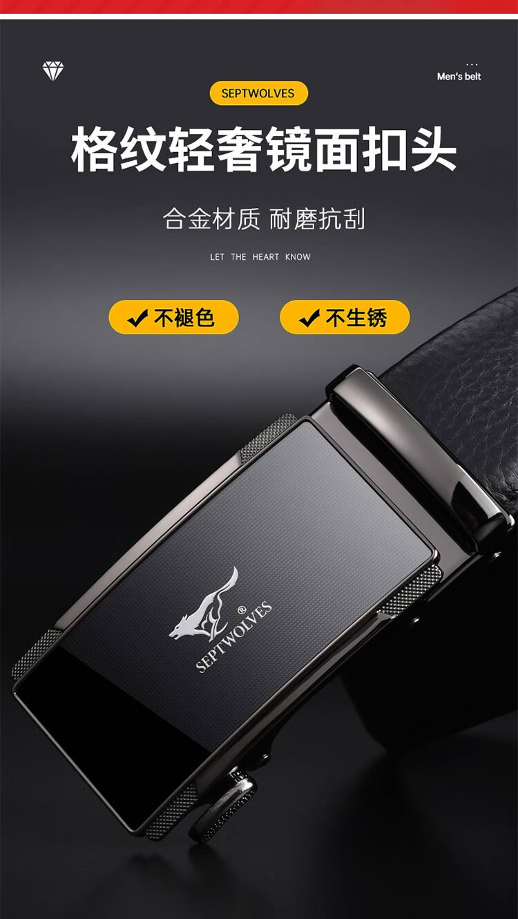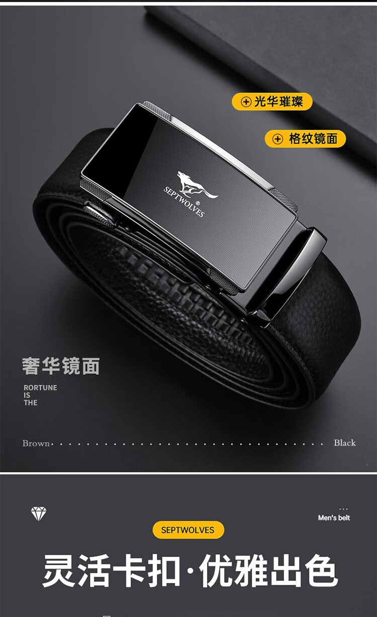 七匹狼皮带男真皮自动扣头层牛皮裤腰带礼盒装男士七夕情人节礼物送男友 格纹镜面款(99%选择)