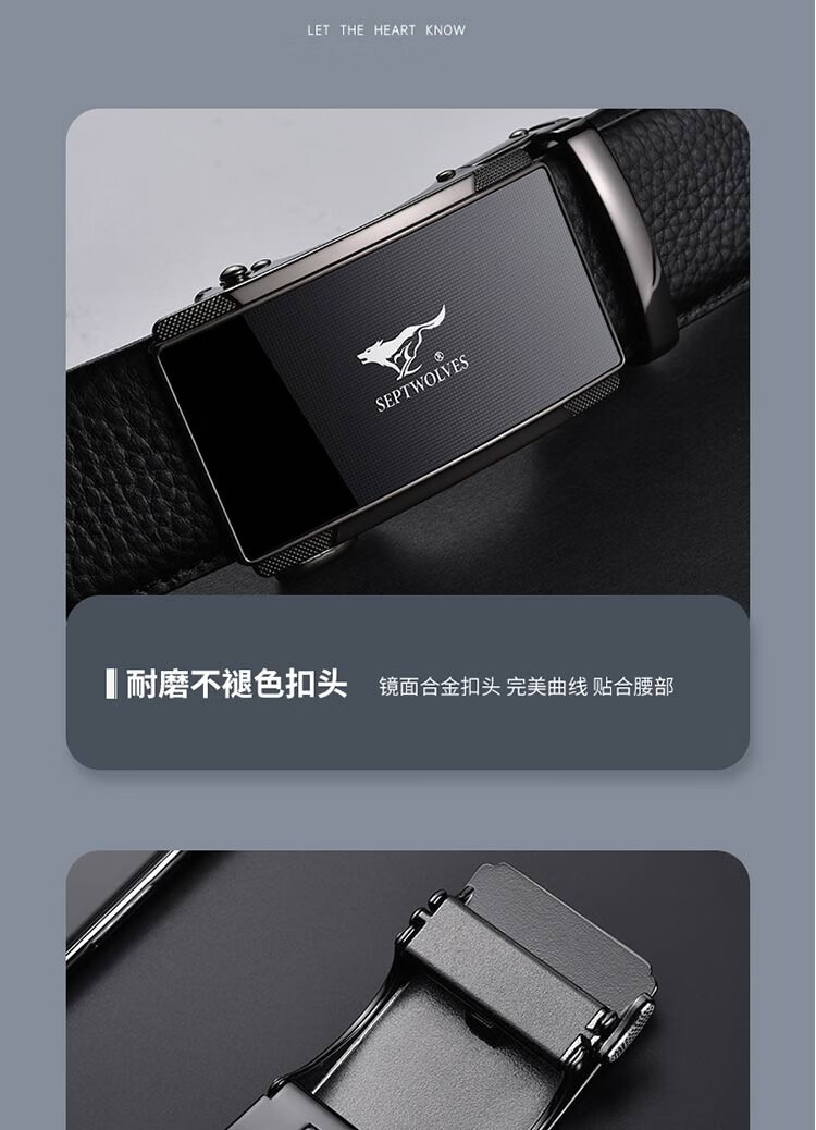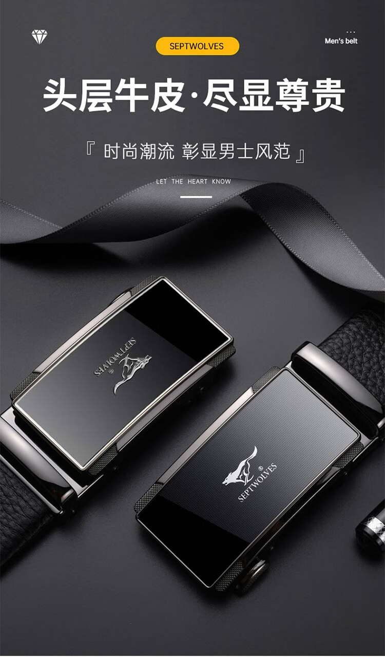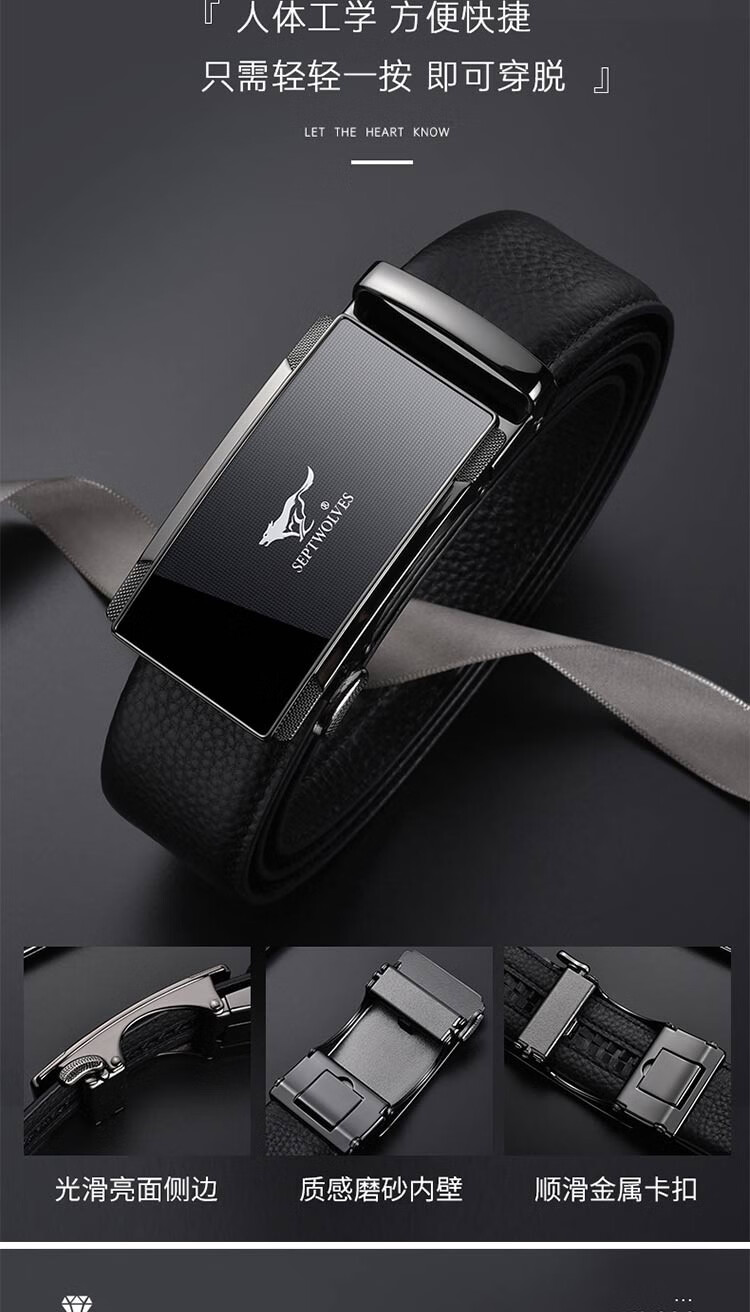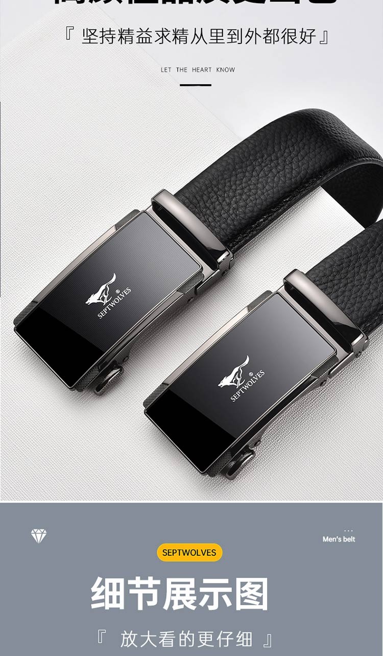 七匹狼皮带男真皮自动扣头层牛皮裤腰带礼盒装男士七夕情人节礼物送男友 格纹镜面款(99%选择)