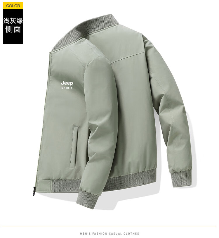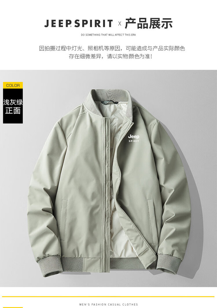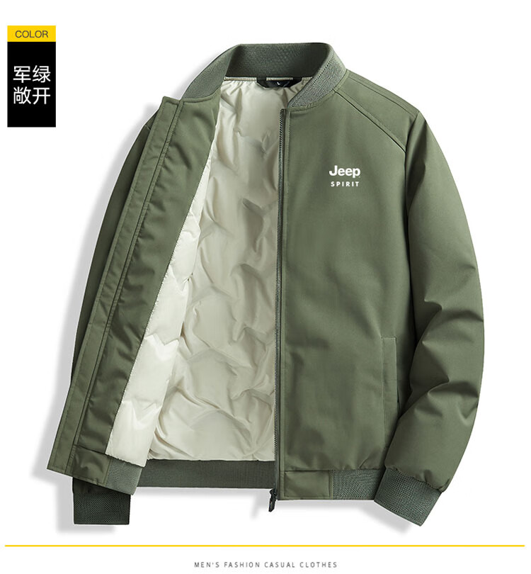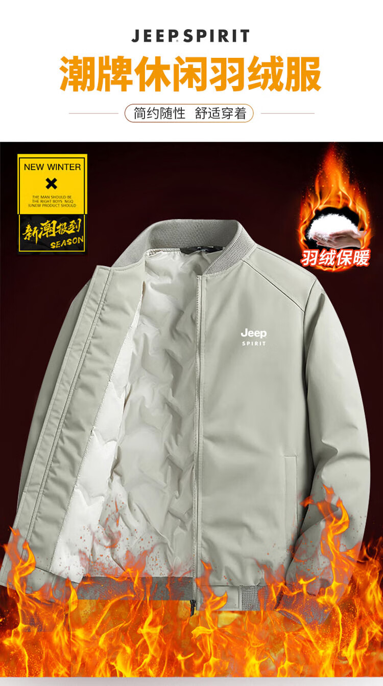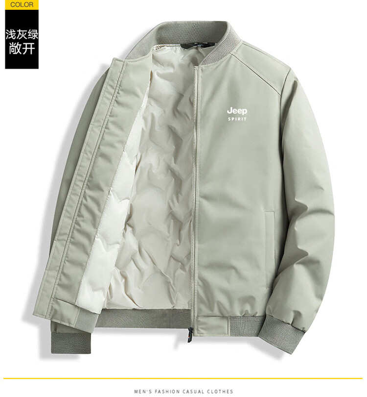 JEEP SPIRIT吉普轻薄羽绒服秋冬季加厚棒球服保暖飞行夹克外套男 浅灰绿 XL