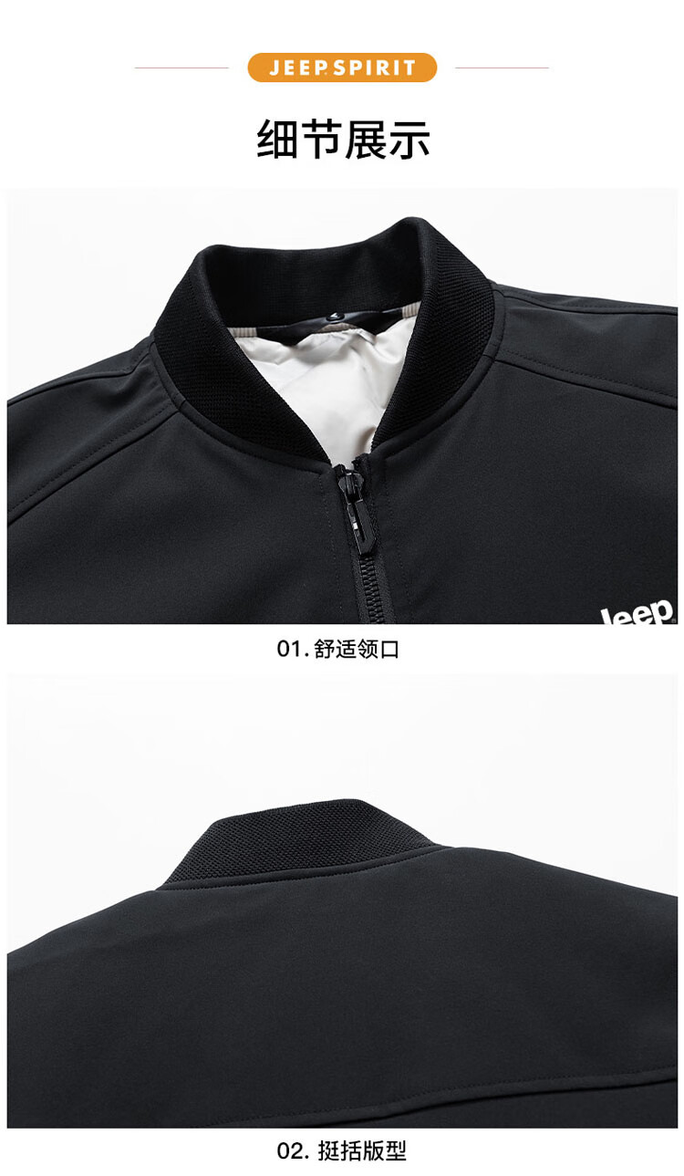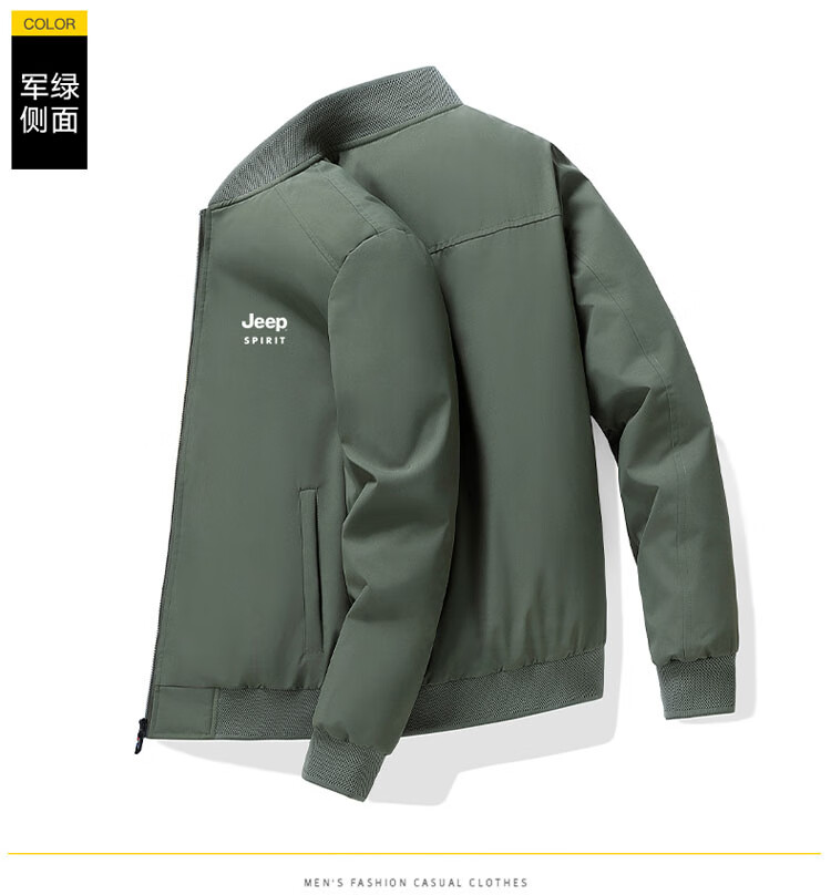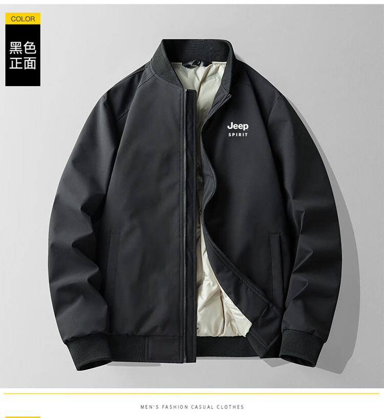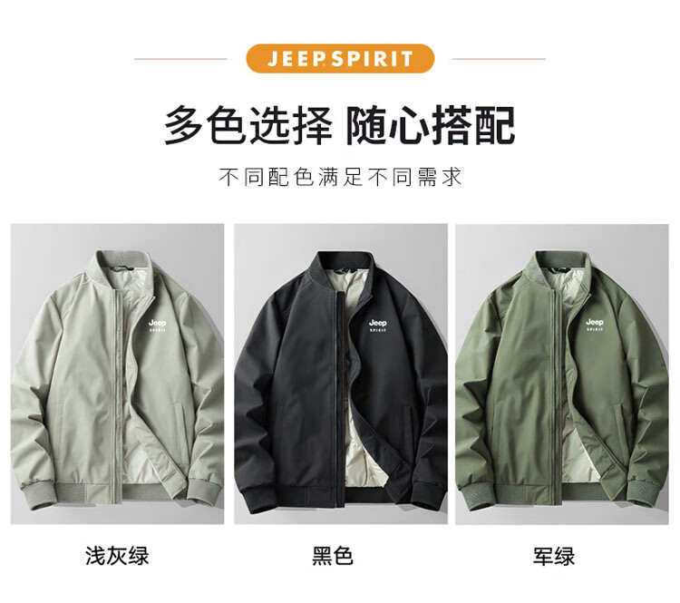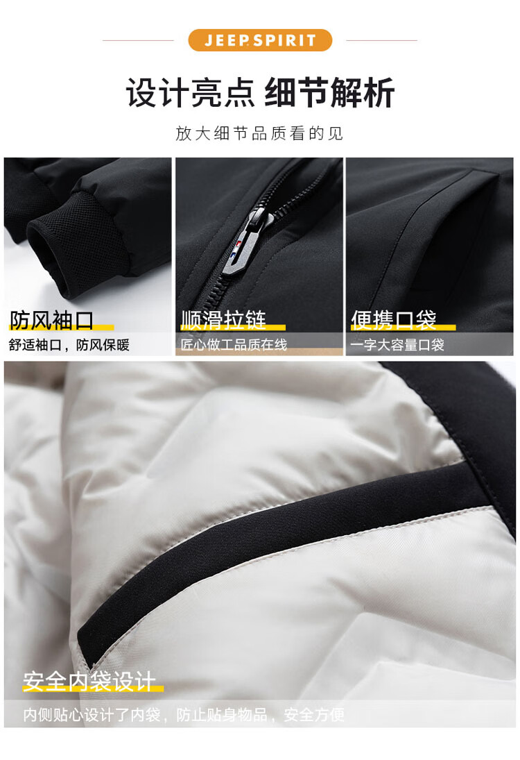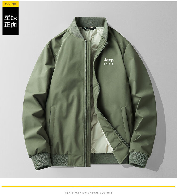 JEEP SPIRIT吉普轻薄羽绒服秋冬季加厚棒球服保暖飞行夹克外套男 浅灰绿 XL