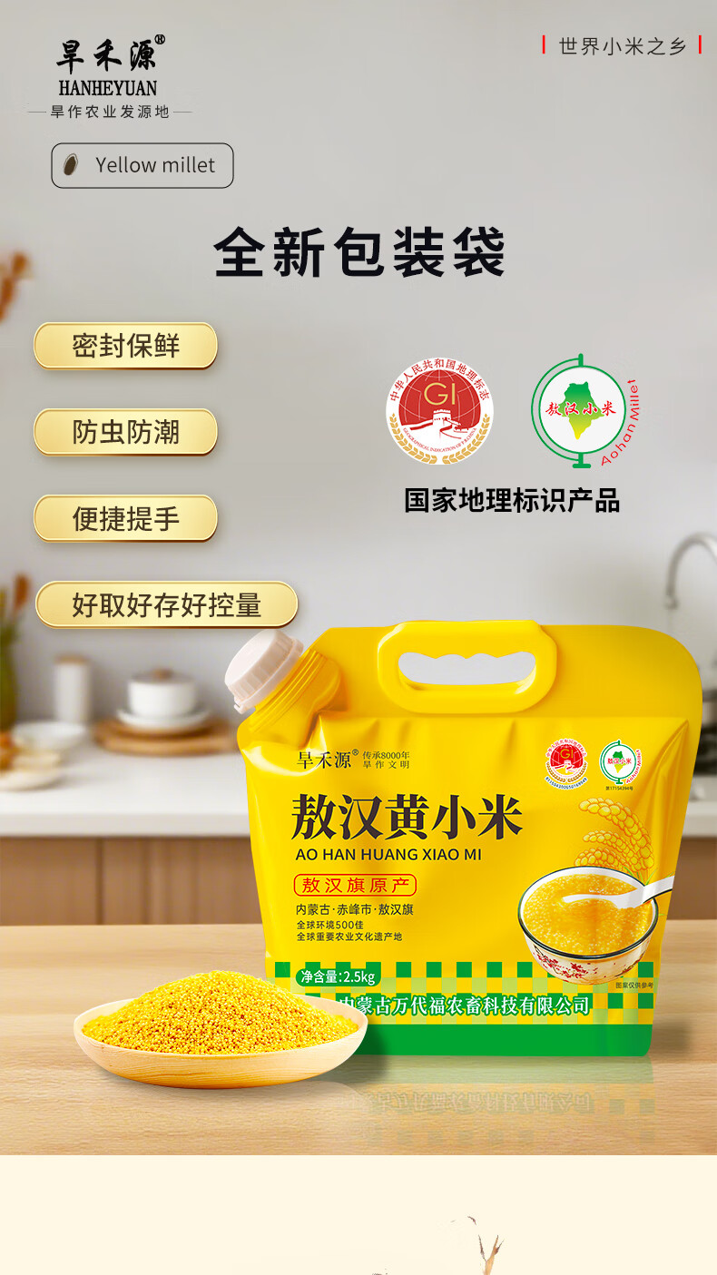 旱禾源HANHEYUAN内蒙赤峰敖汉原产地坡地黄小米粒粒饱满金苗K1新米醇香软糯 敖汉黄小米(5斤)