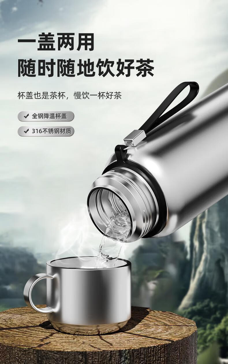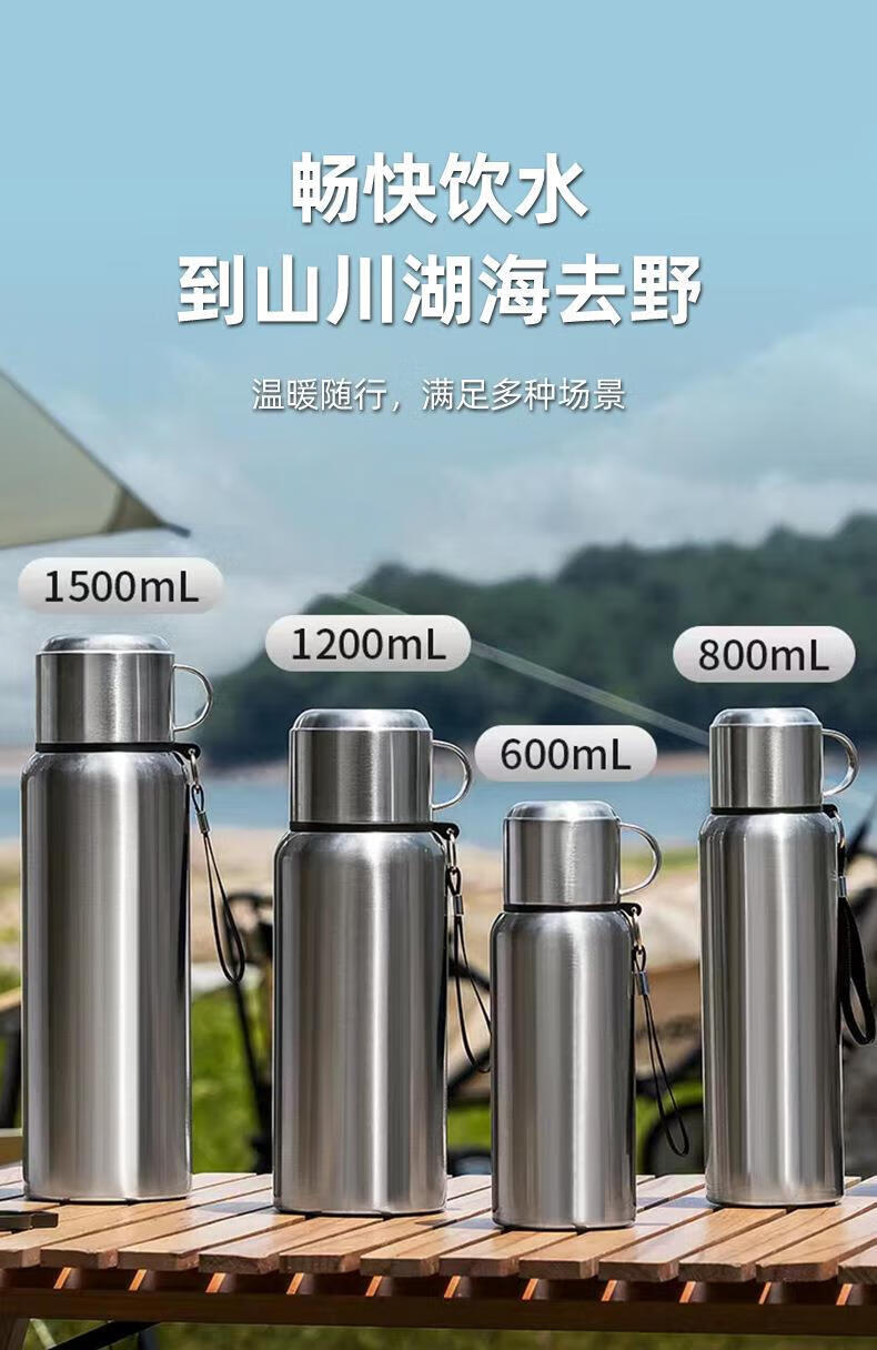 苏泊尔(SUPOR)72小时长效保温杯全钢316不锈钢智能大容量便携户外运动水壶 本色-普通款 600ml