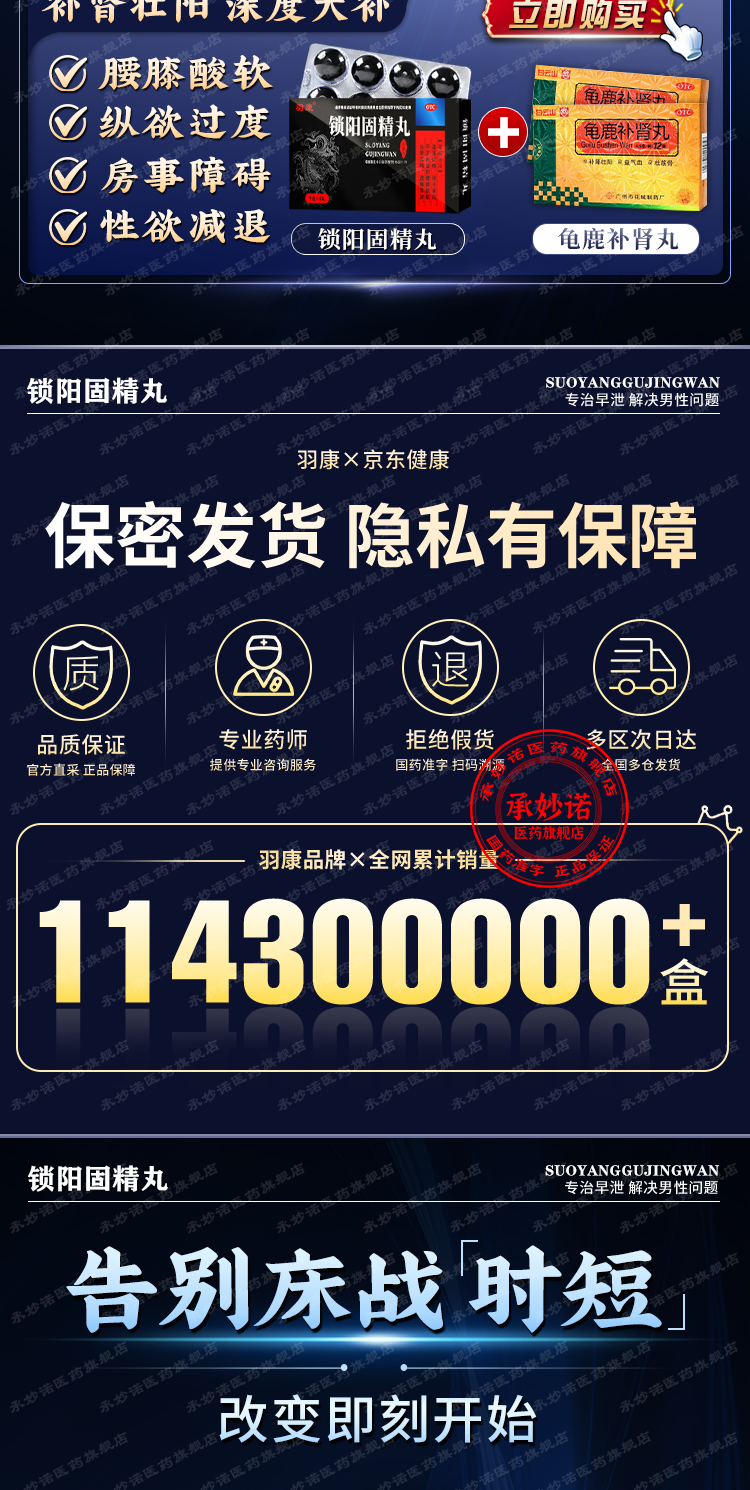 锁阳固精丸浓缩丸补肾壮阳早泄龟头敏感射精快专用持久不射早泄延时中药根据治疗阳痿早泄的正品男科用药 3盒【龟头敏感早泄修复】5分钟以下直接拍 金锁固精*不加激素