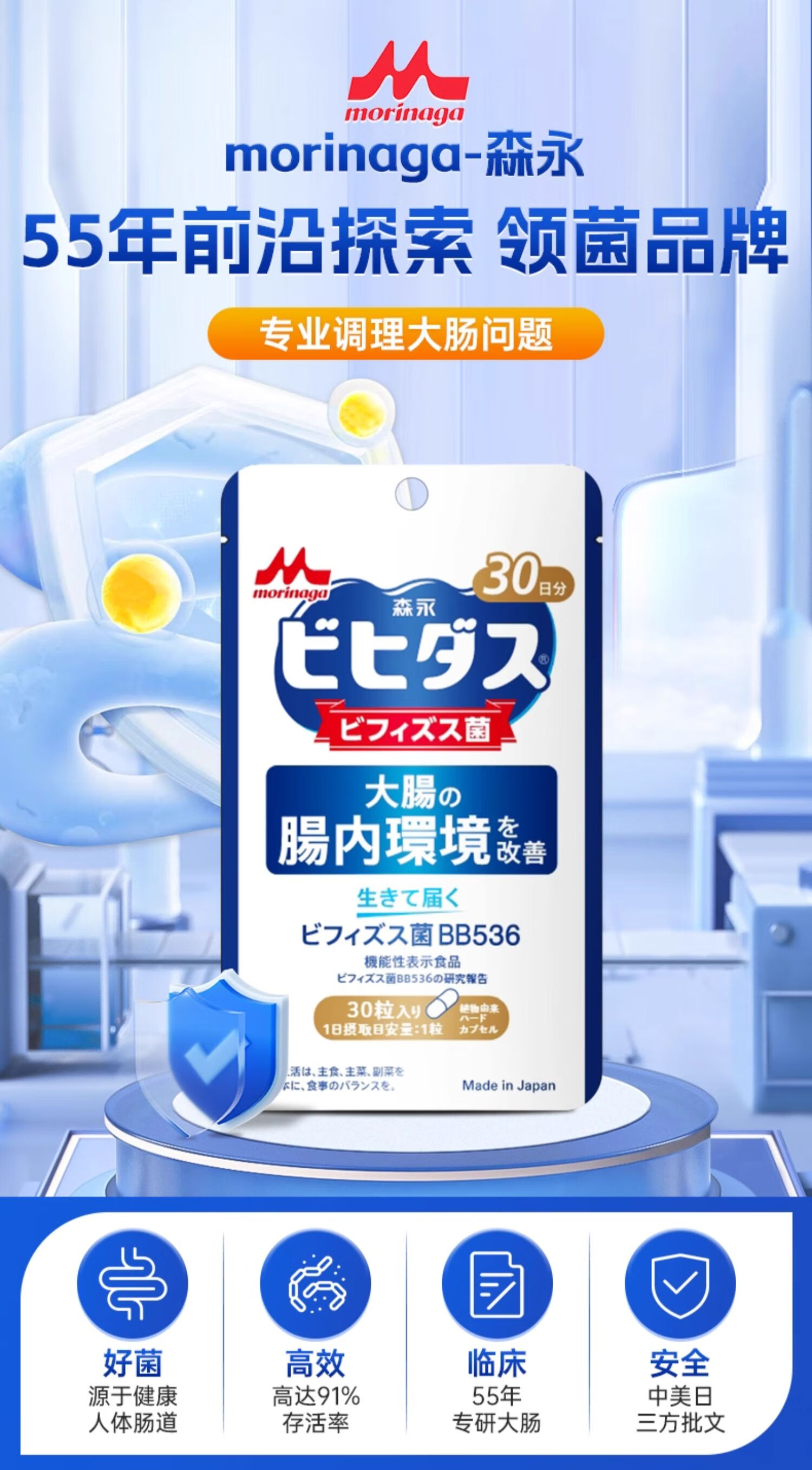 森永益生菌便秘成人调理肠道中老年儿童活菌双歧杆菌日本进口 30粒/袋 【肠道定植 健康肠胃】3袋周期装 30粒*3袋