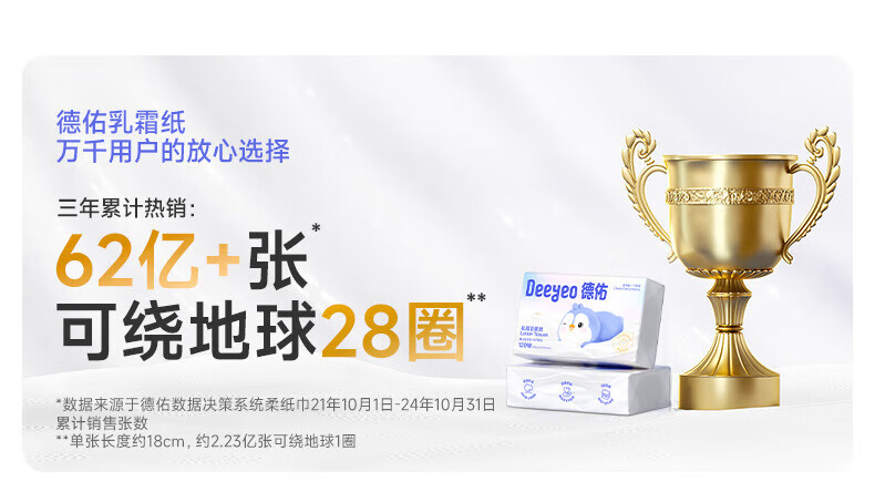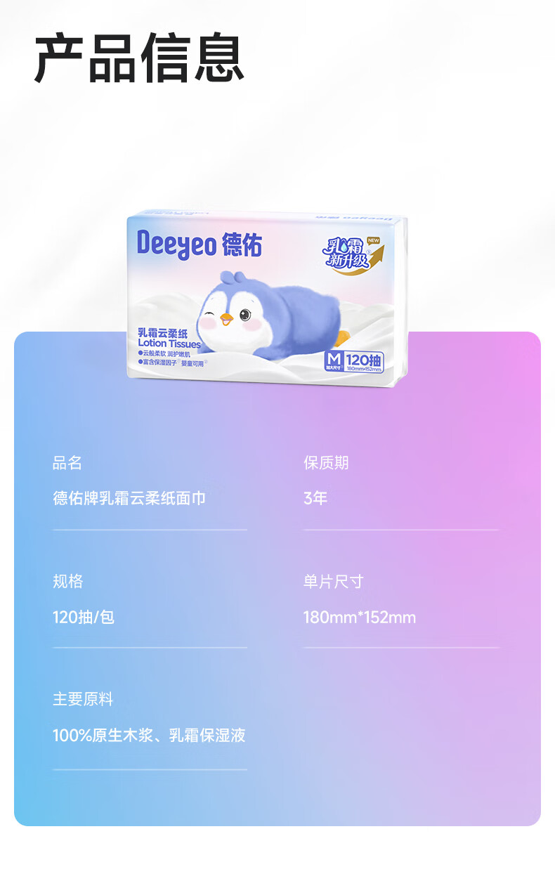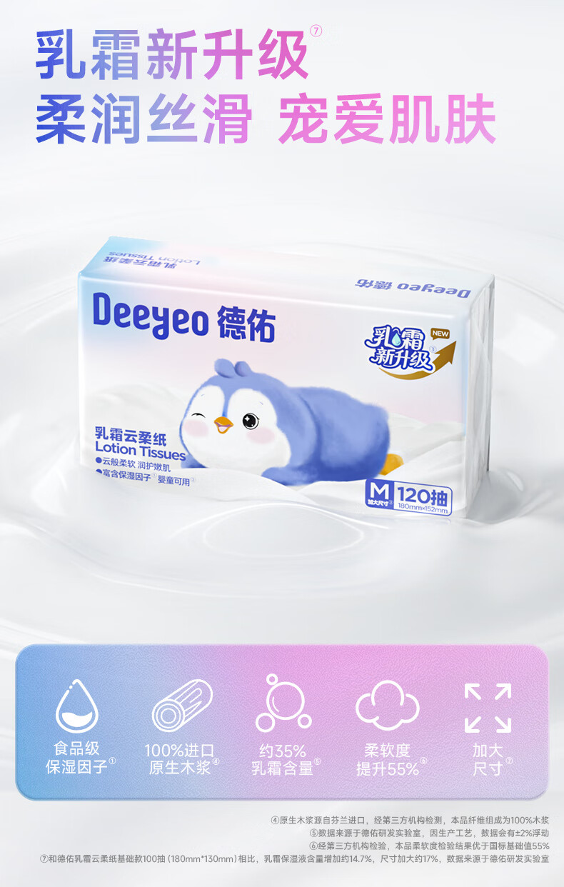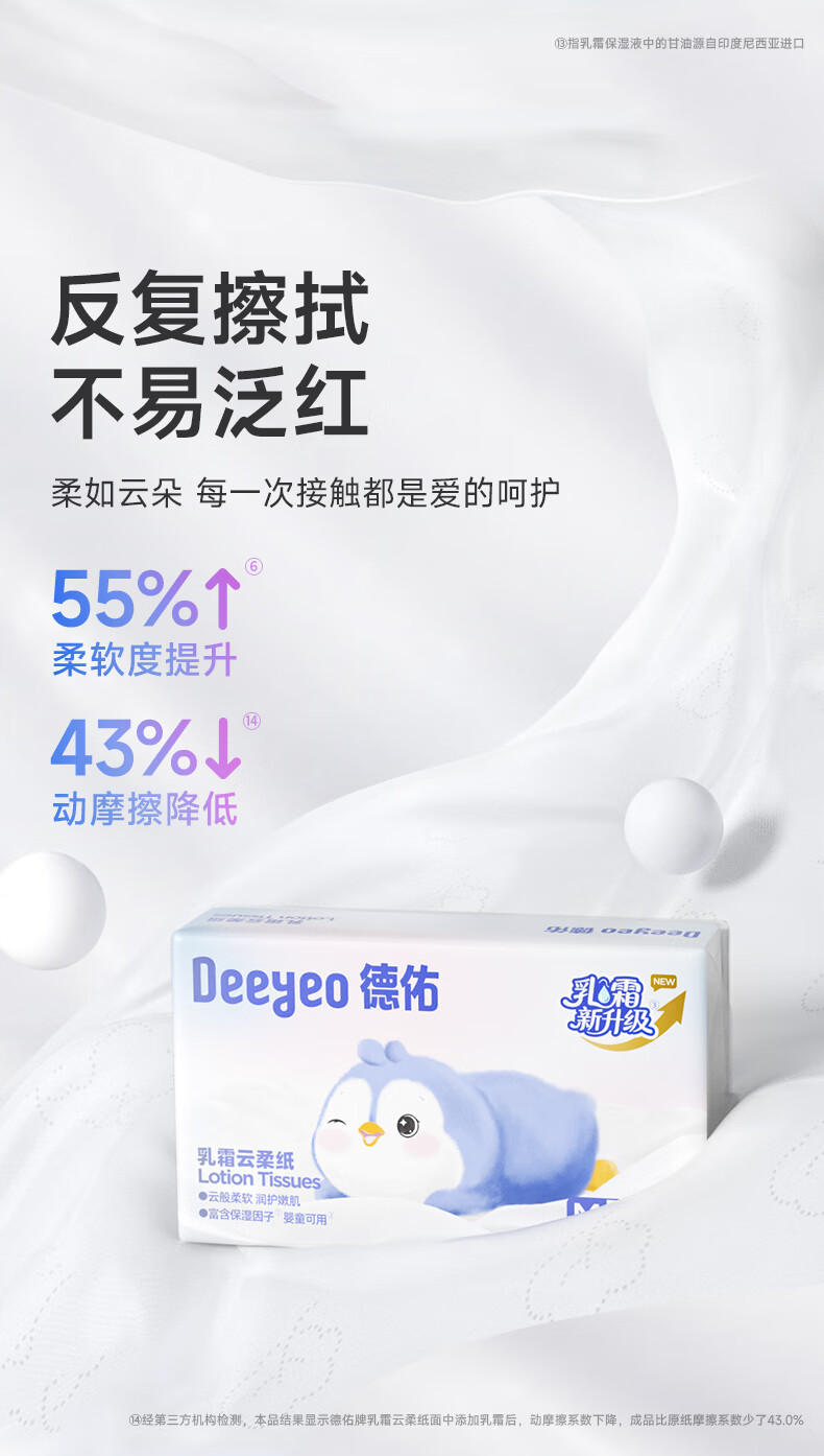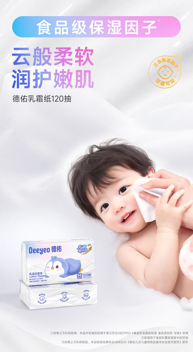 德佑乳霜纸120抽*10包 云柔巾柔纸巾婴儿保湿抽纸巾宝宝柔润面巾抽纸