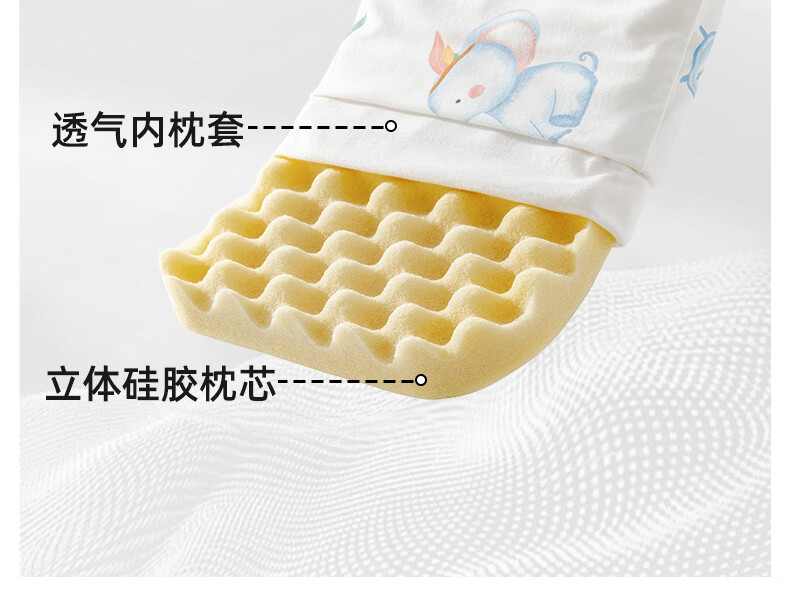 贝肽斯儿童硅胶枕头3个月-6岁新款透气定型宝宝枕头幼儿园婴儿四季通用 森林奇遇凉感款-【1-3岁】抗菌防螨