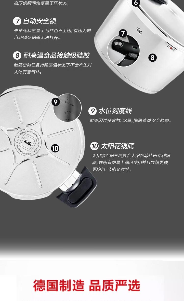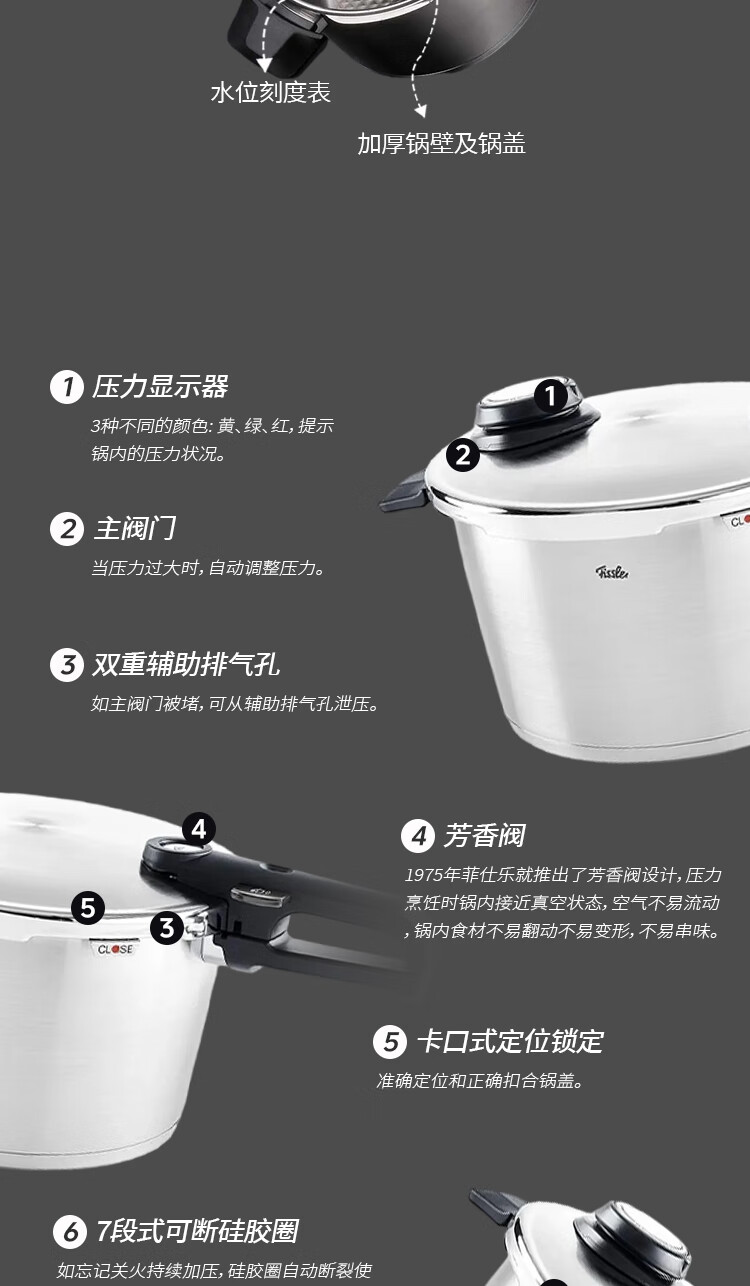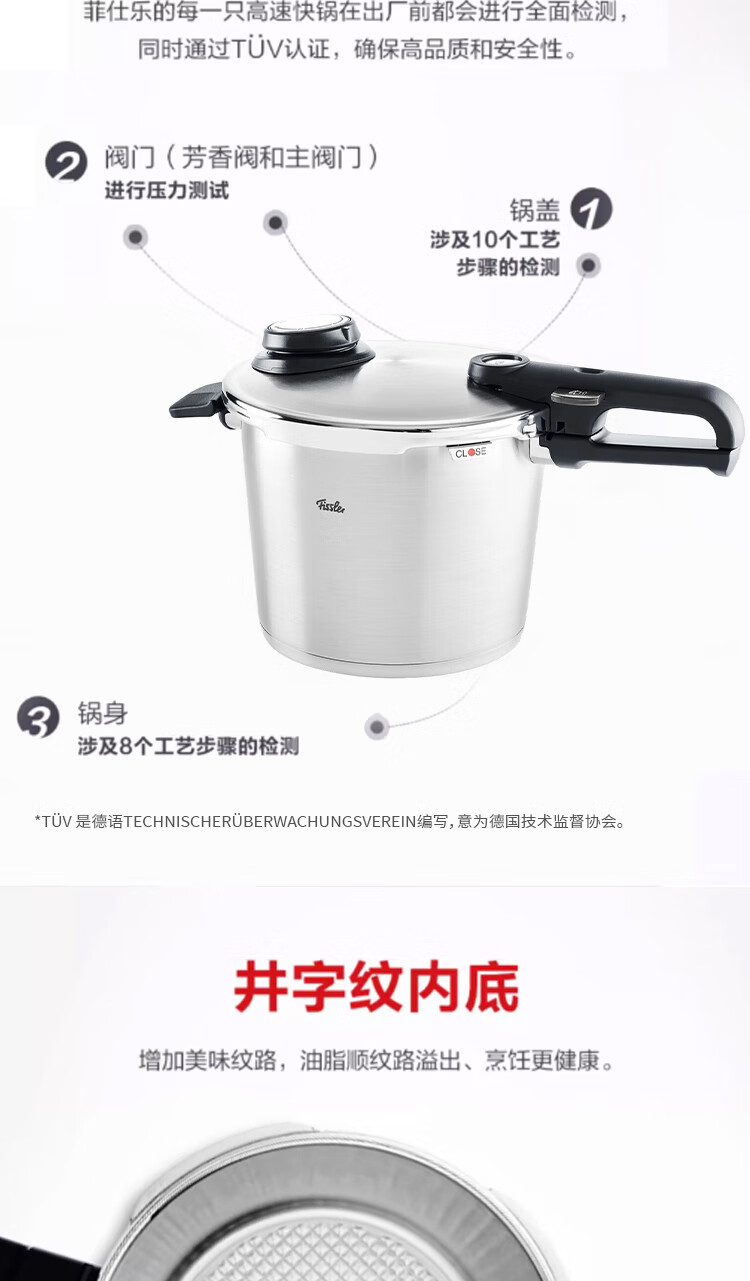 菲仕乐 Fissler德国制造味达维皇家璀璨高速快锅不锈钢高压锅6L通用炉灶