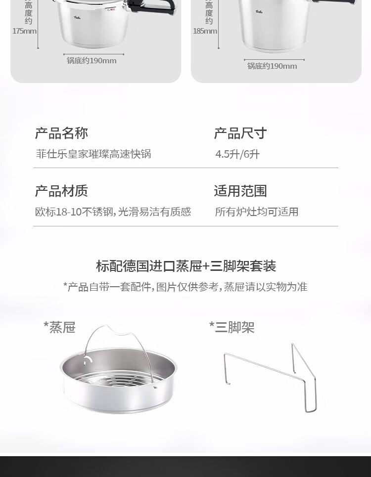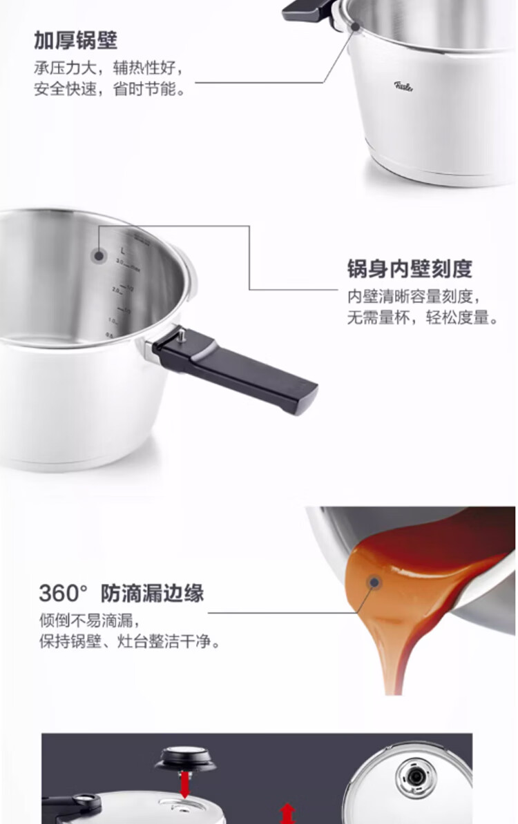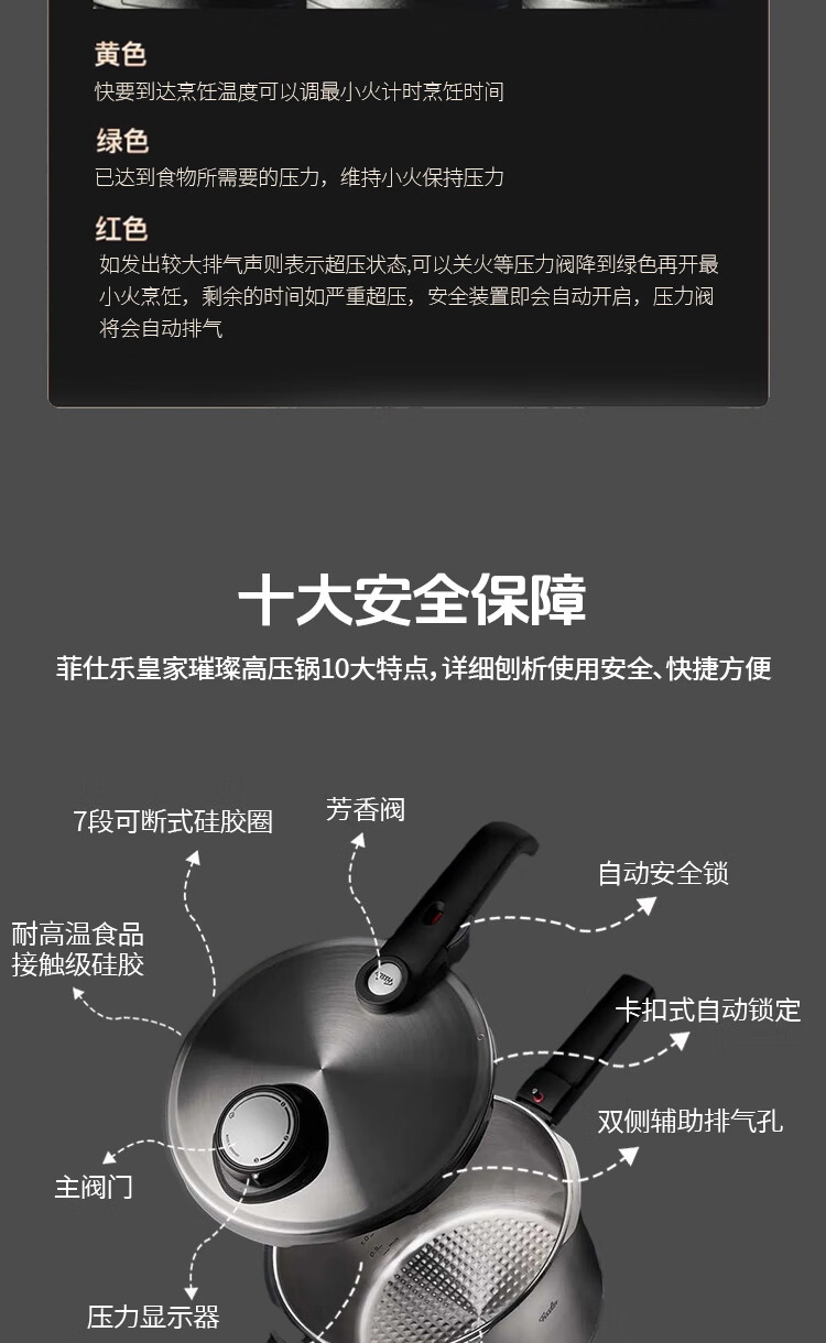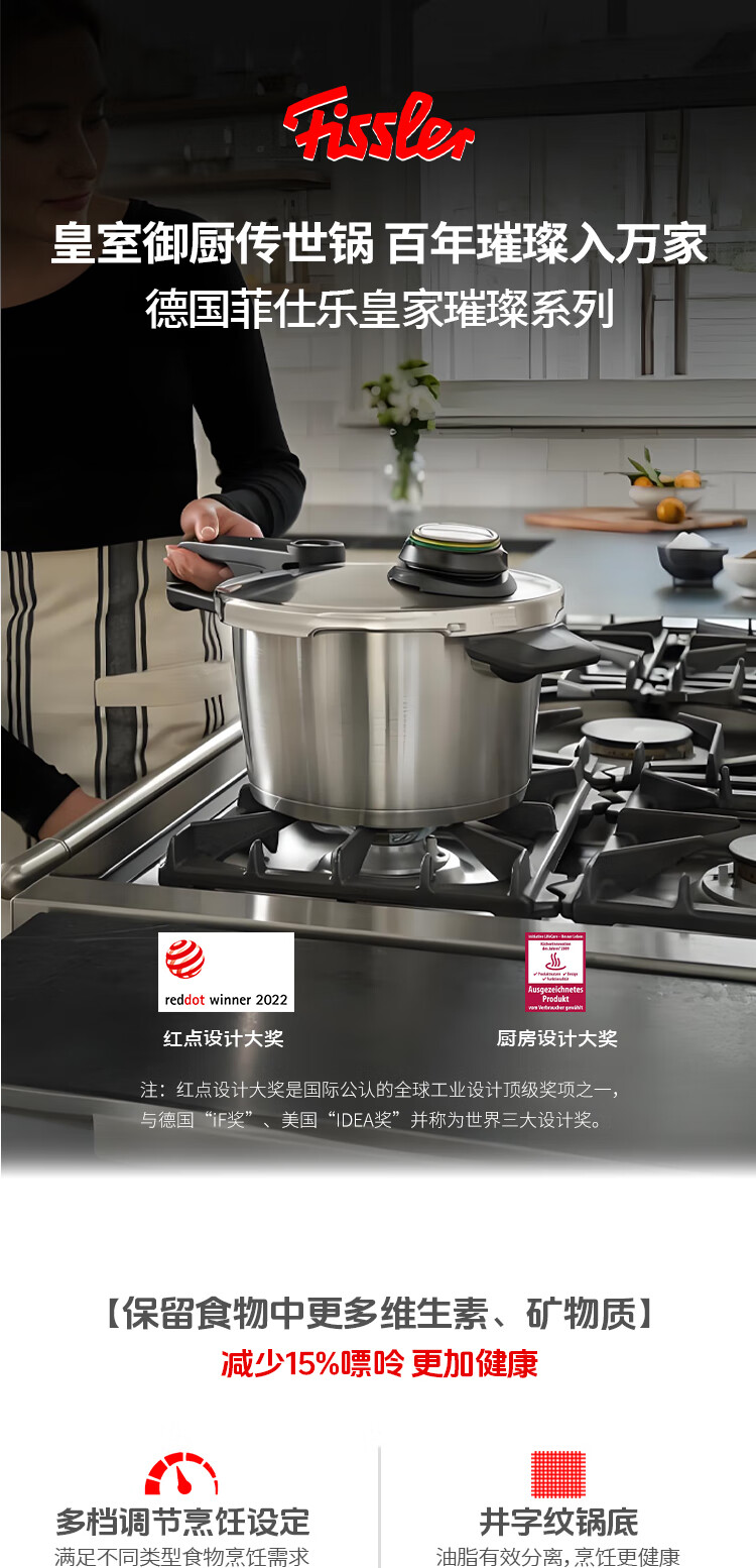 菲仕乐 Fissler德国制造味达维皇家璀璨高速快锅不锈钢高压锅6L通用炉灶