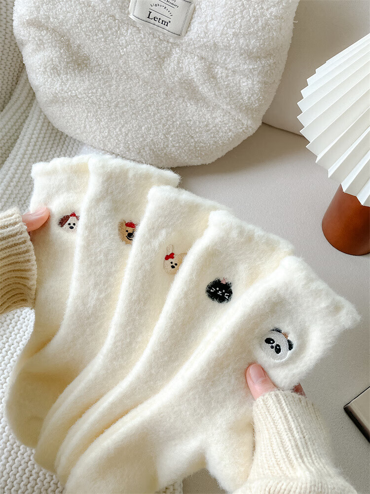 雅鹿女士袜子冬季加绒加厚保暖长筒袜白色睡眠月子袜秋冬款高腰中筒袜 颜色混搭 2双 均码