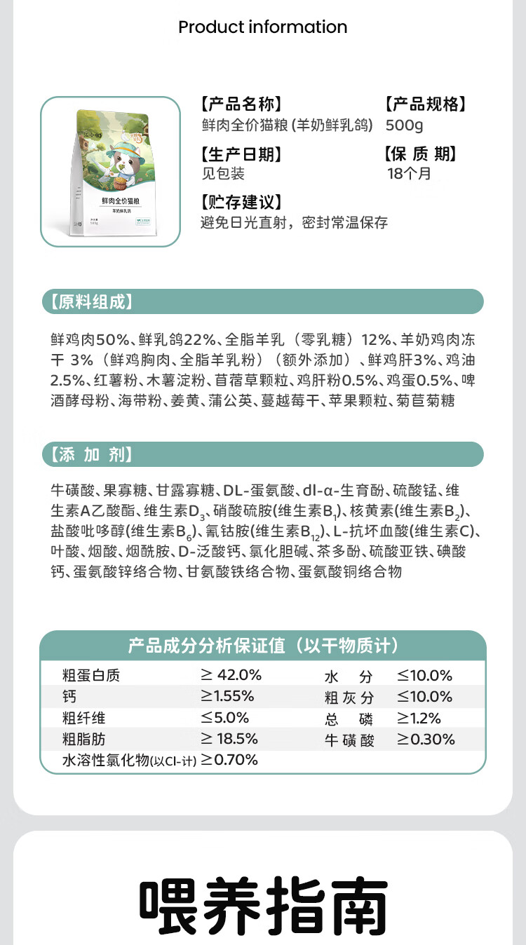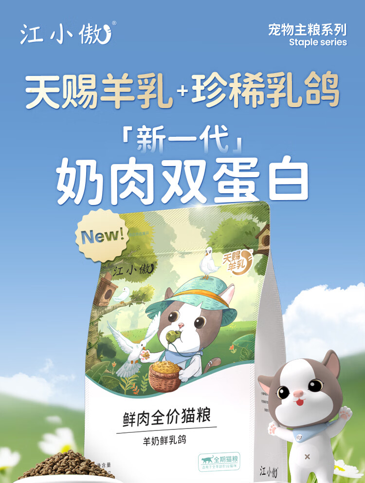 江小傲全价鲜肉羊奶乳鸽猫粮幼猫成猫专用全鲜肉营养主粮官方正品 羊奶鲜乳鸽猫粮7.5kg