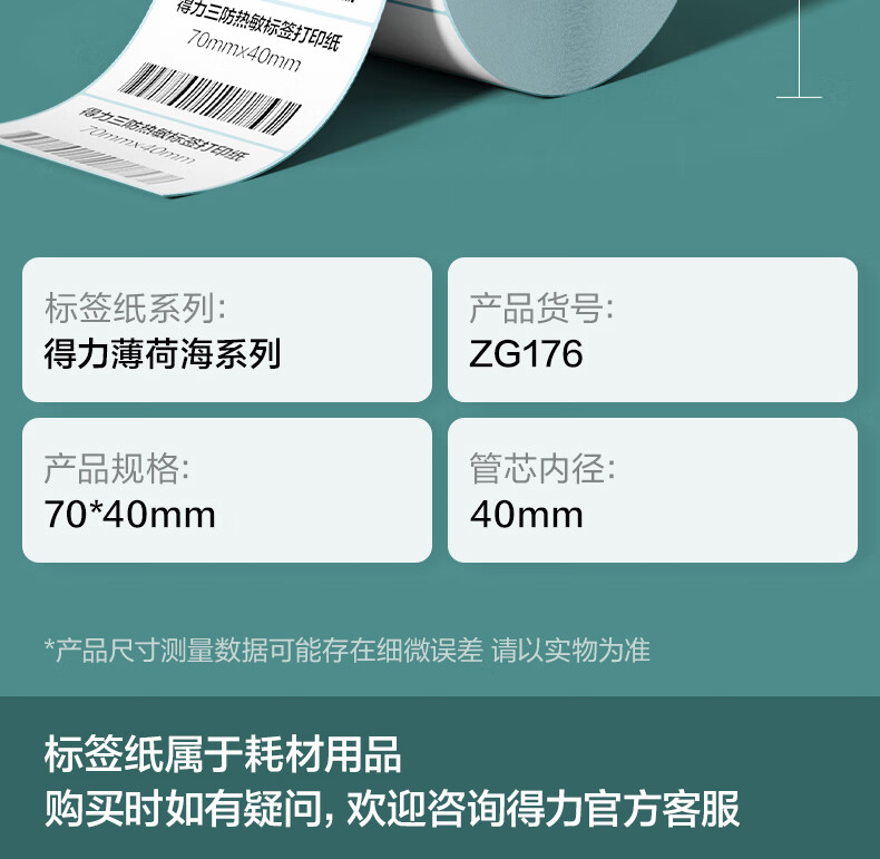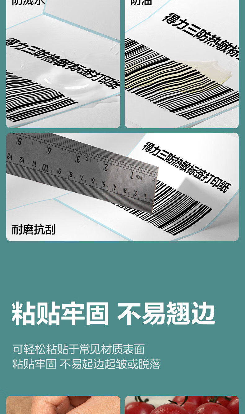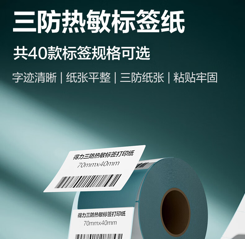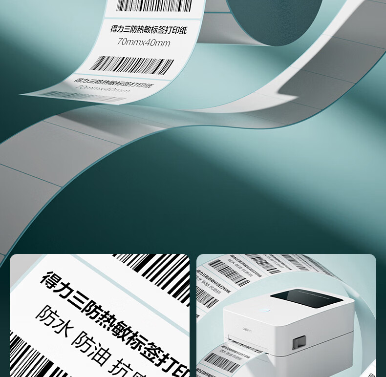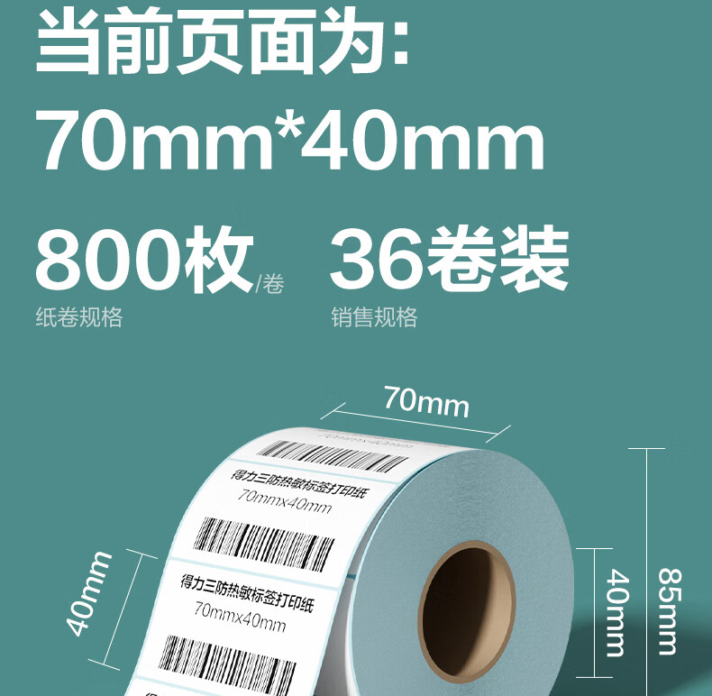 得力(deli)70*40mm 800张*36卷 薄荷海三防热敏标签纸 食品服饰不干胶打印纸 ZG176【适配3寸标签机720C等】