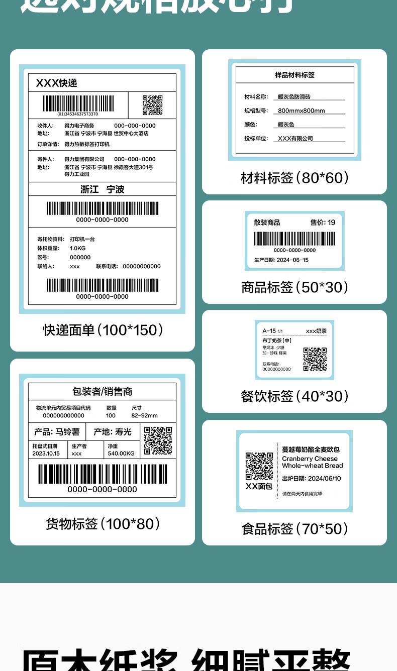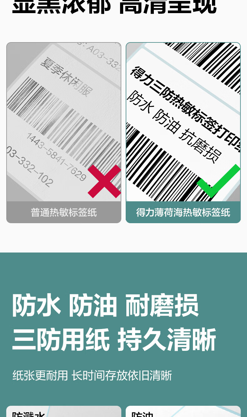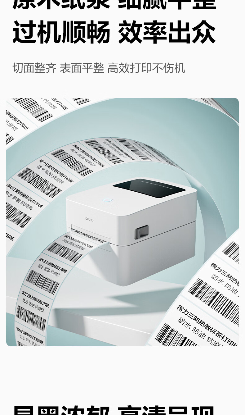 得力(deli)70*40mm 800张*36卷 薄荷海三防热敏标签纸 食品服饰不干胶打印纸 ZG176【适配3寸标签机720C等】