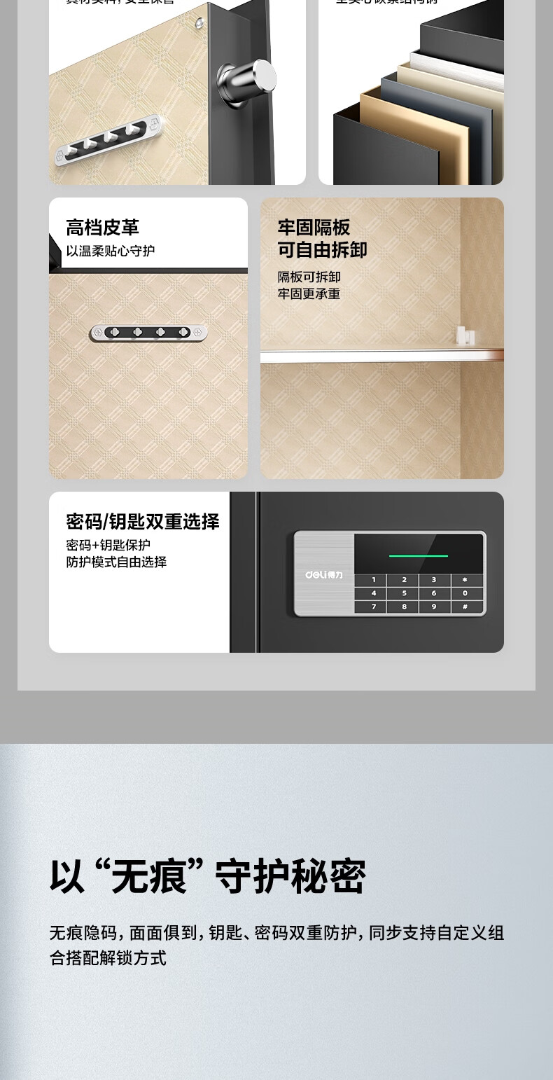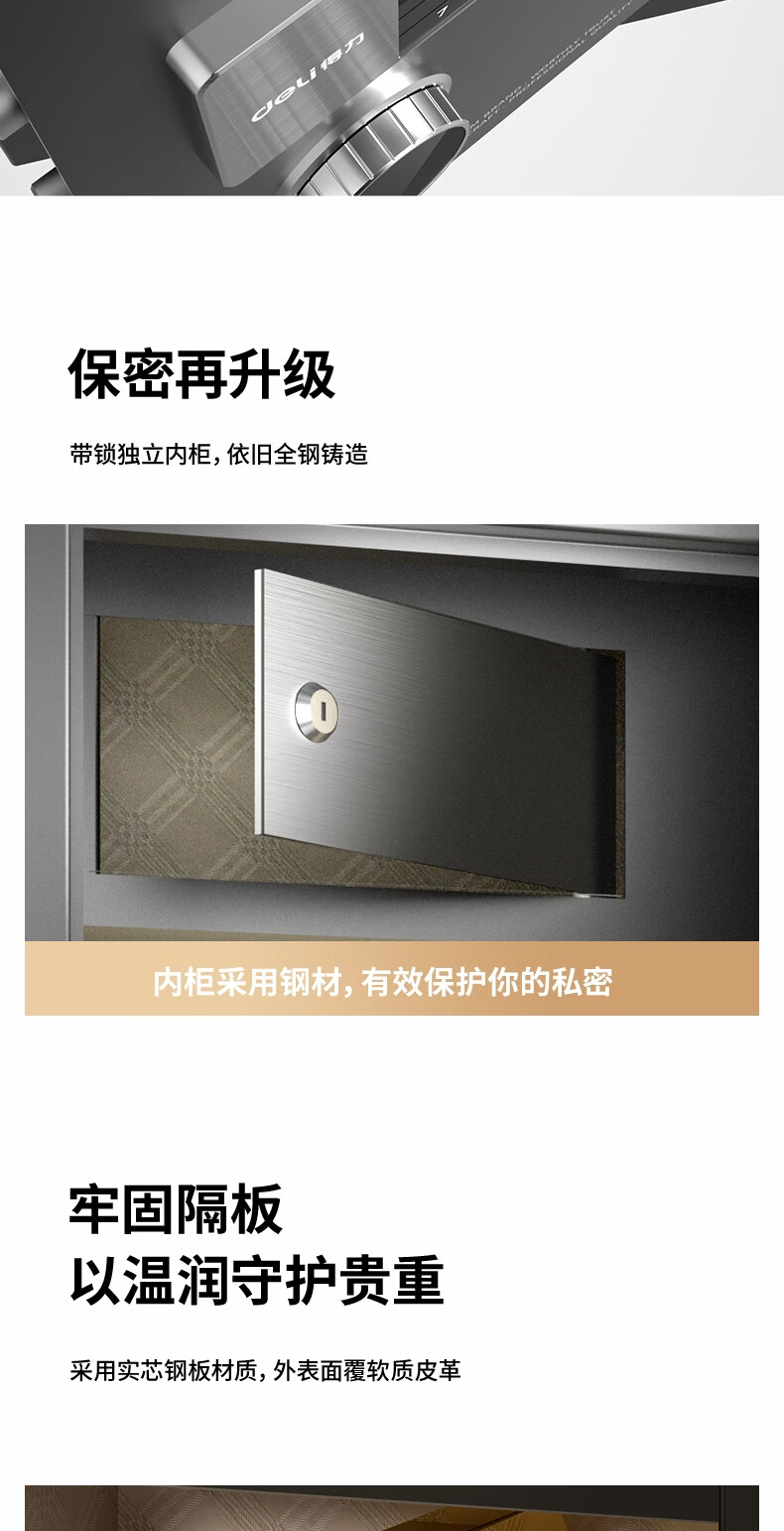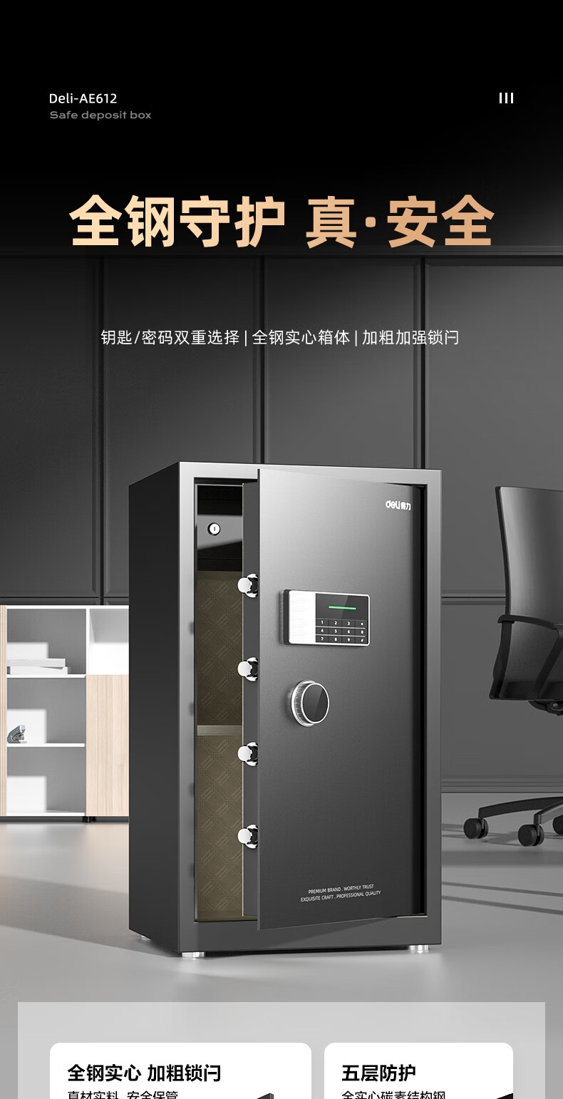 得力保险柜 家用办公电子密码保险箱大型全钢防盗保管柜 精美皮革内饰 80cm黑色AE612 曜臻系列