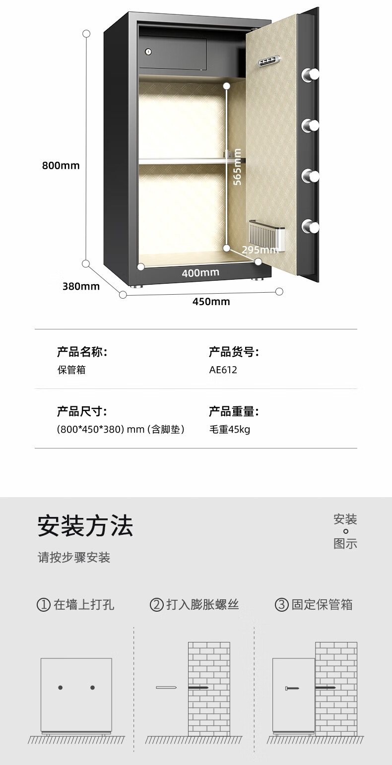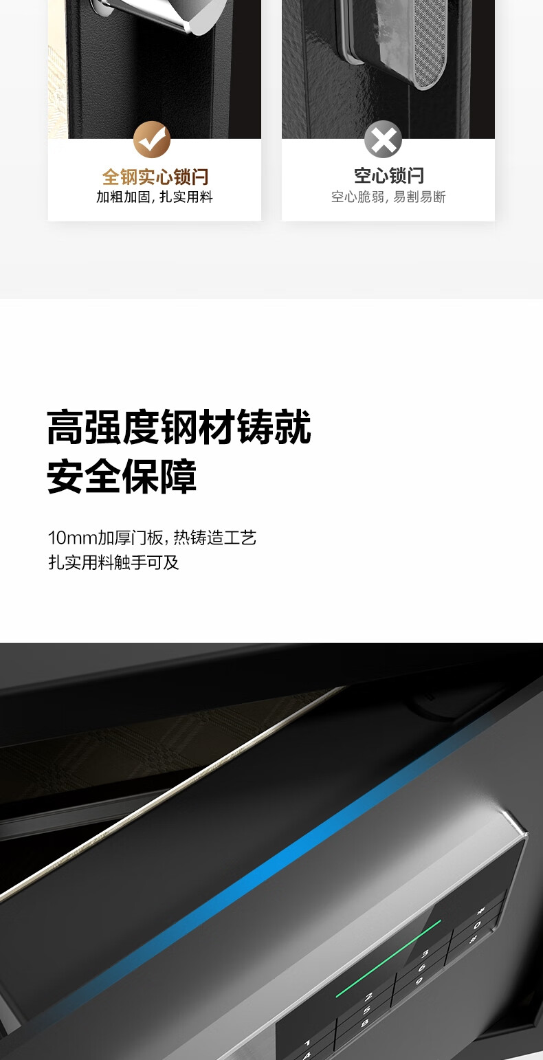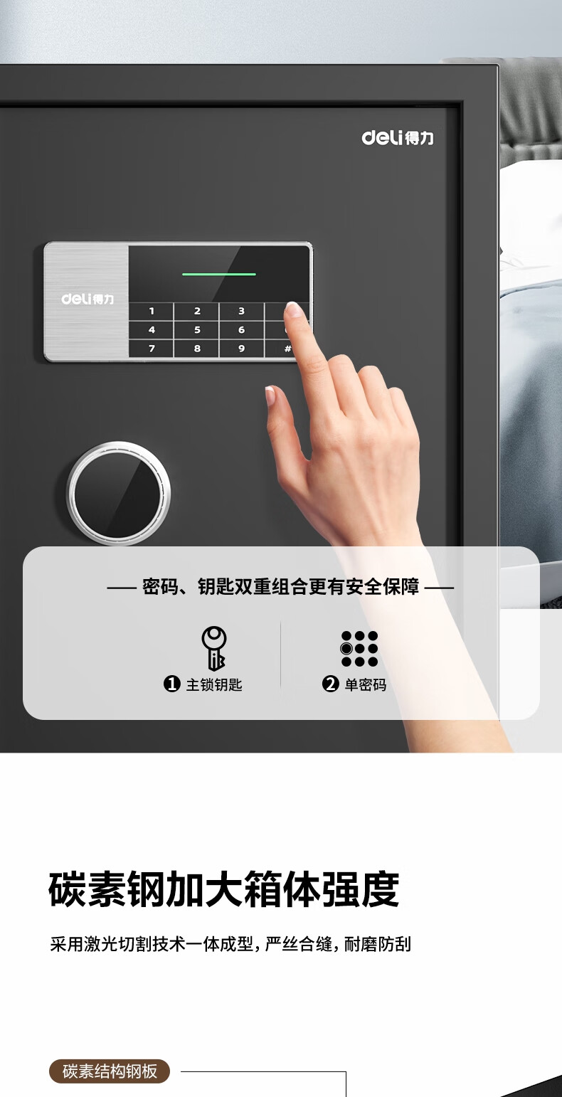 得力保险柜 家用办公电子密码保险箱大型全钢防盗保管柜 精美皮革内饰 80cm黑色AE612 曜臻系列