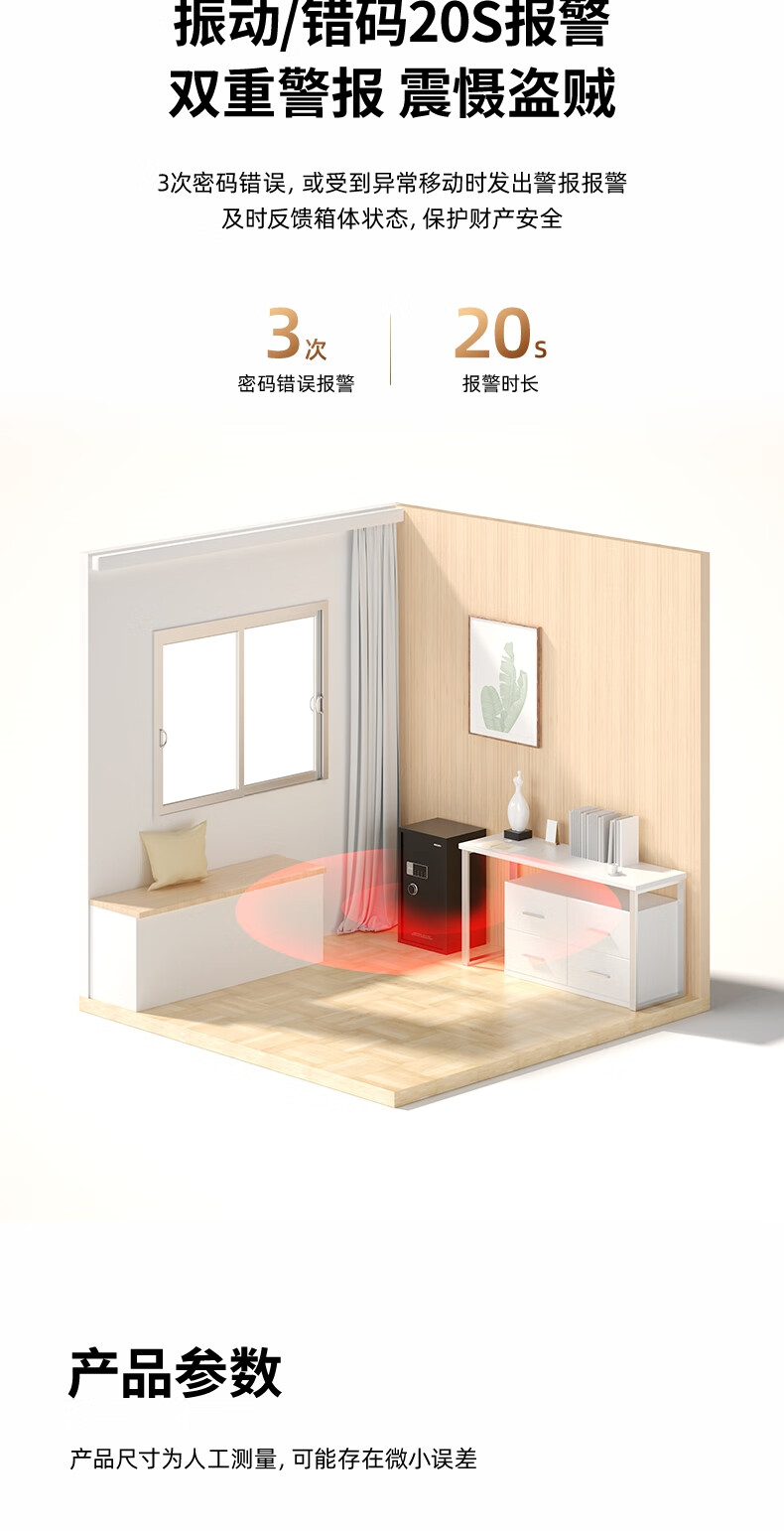 得力保险柜家用型 密码保险箱办公财务专用小型文件柜全钢防盗入墙入柜床头保管柜 曜臻AE610高45cm