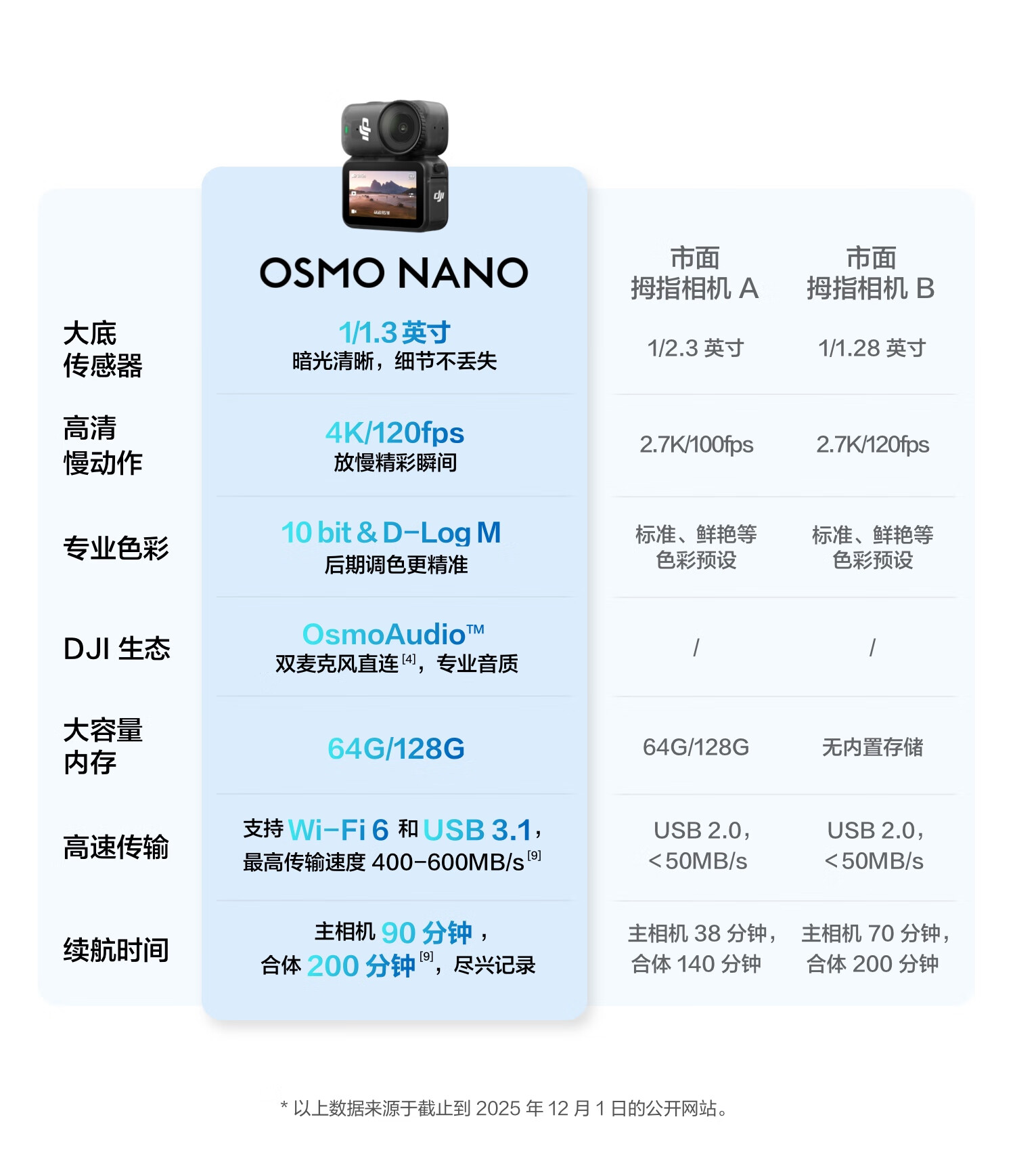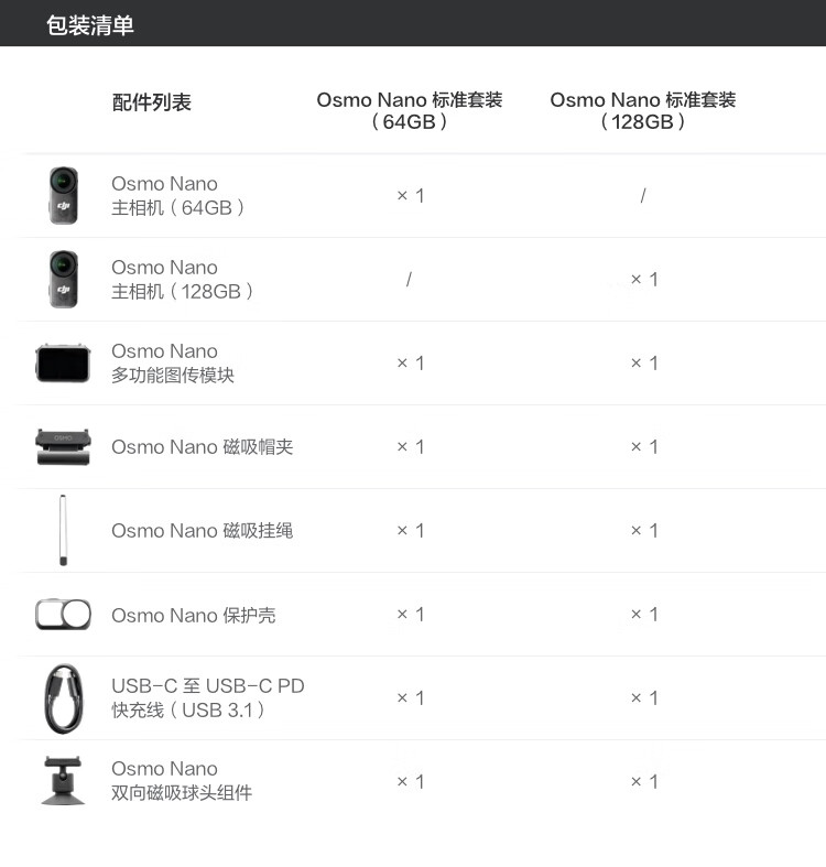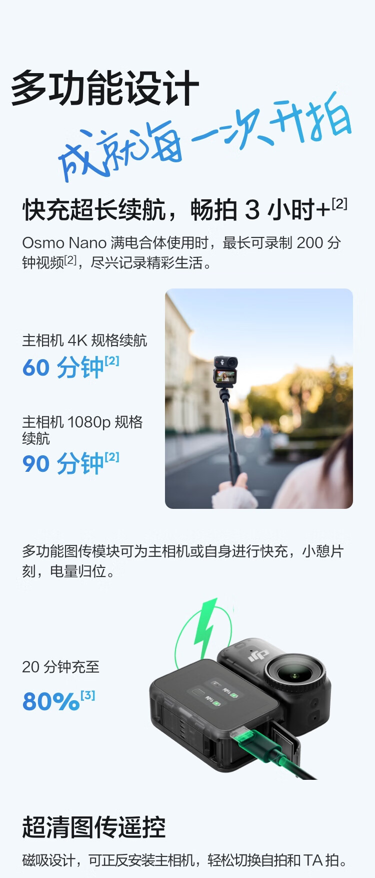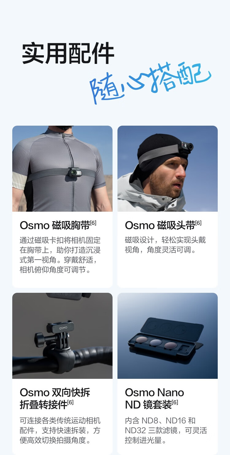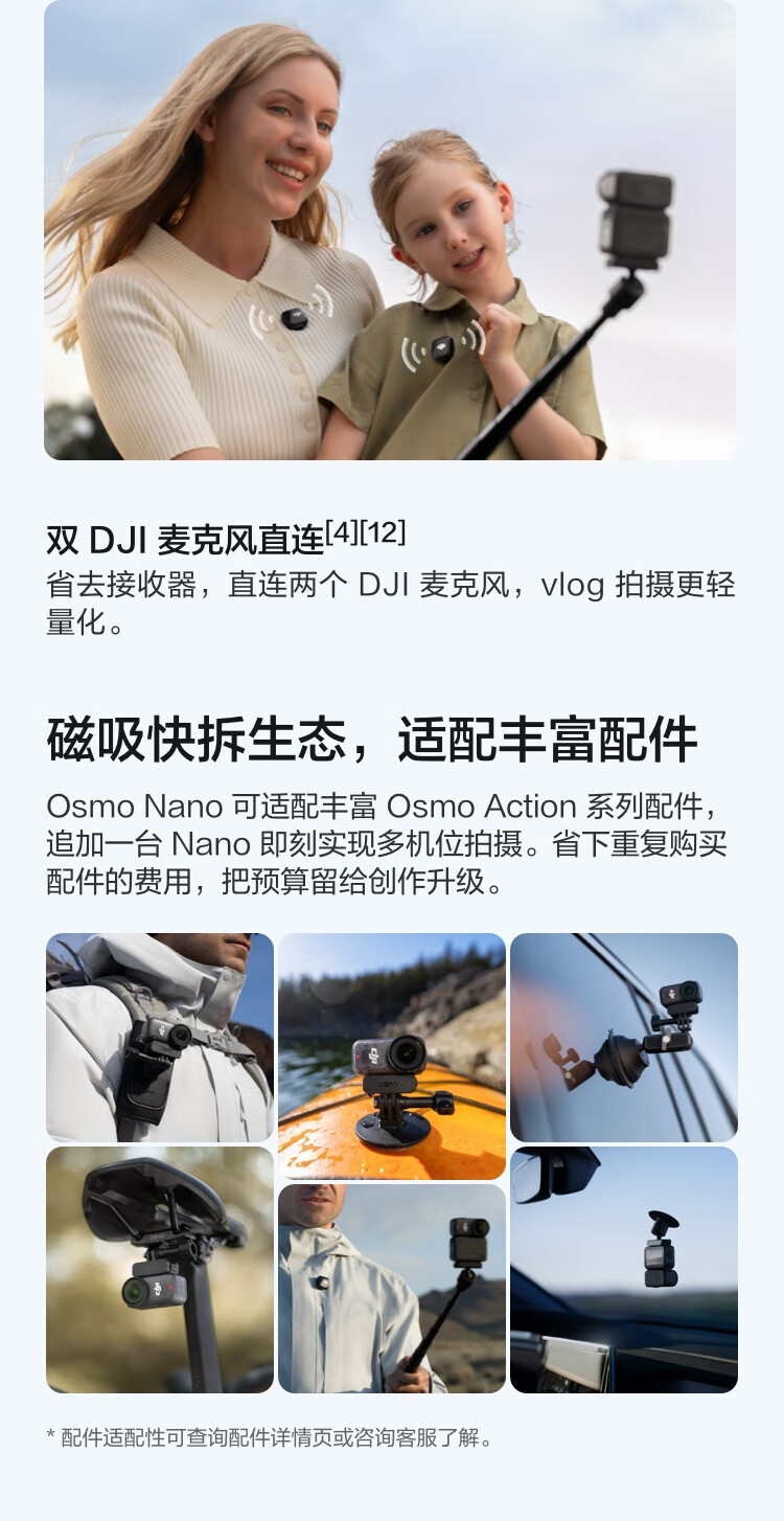大疆【新品】DJI Osmo Nano 标准套装(64GB)自由视角穿戴相机Vlog骑行亲子宠物运动相机4K拇指相机