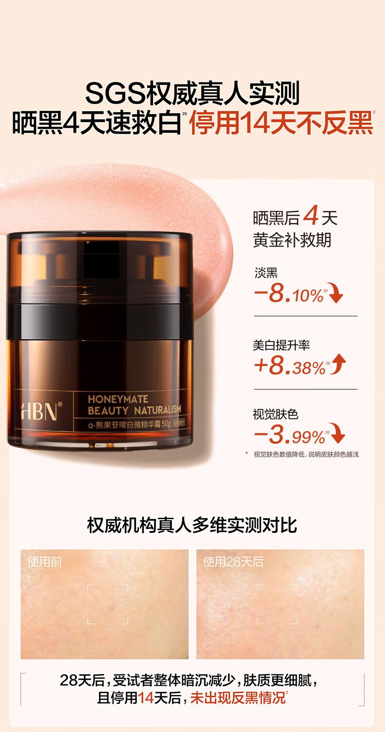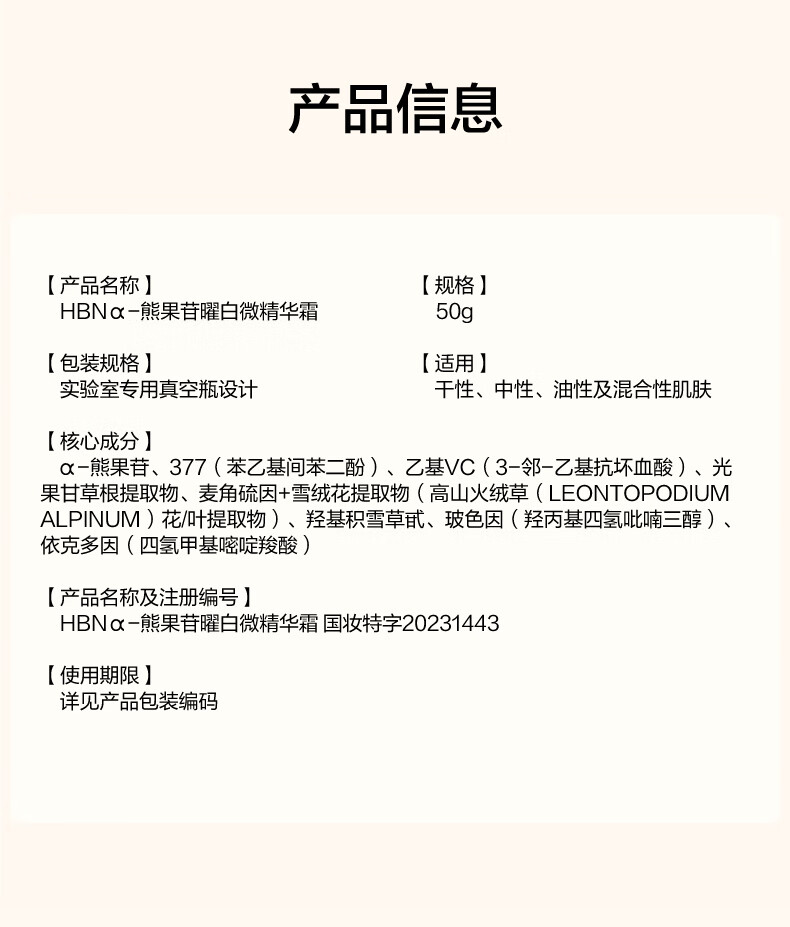 HBN原白霜熊果苷曜白微精华霜减黄淡斑提亮改善暗沉美白面霜生日礼物 【4周美白淡斑】原白霜