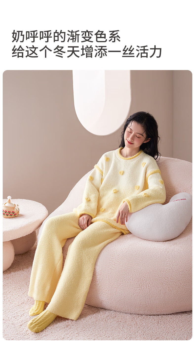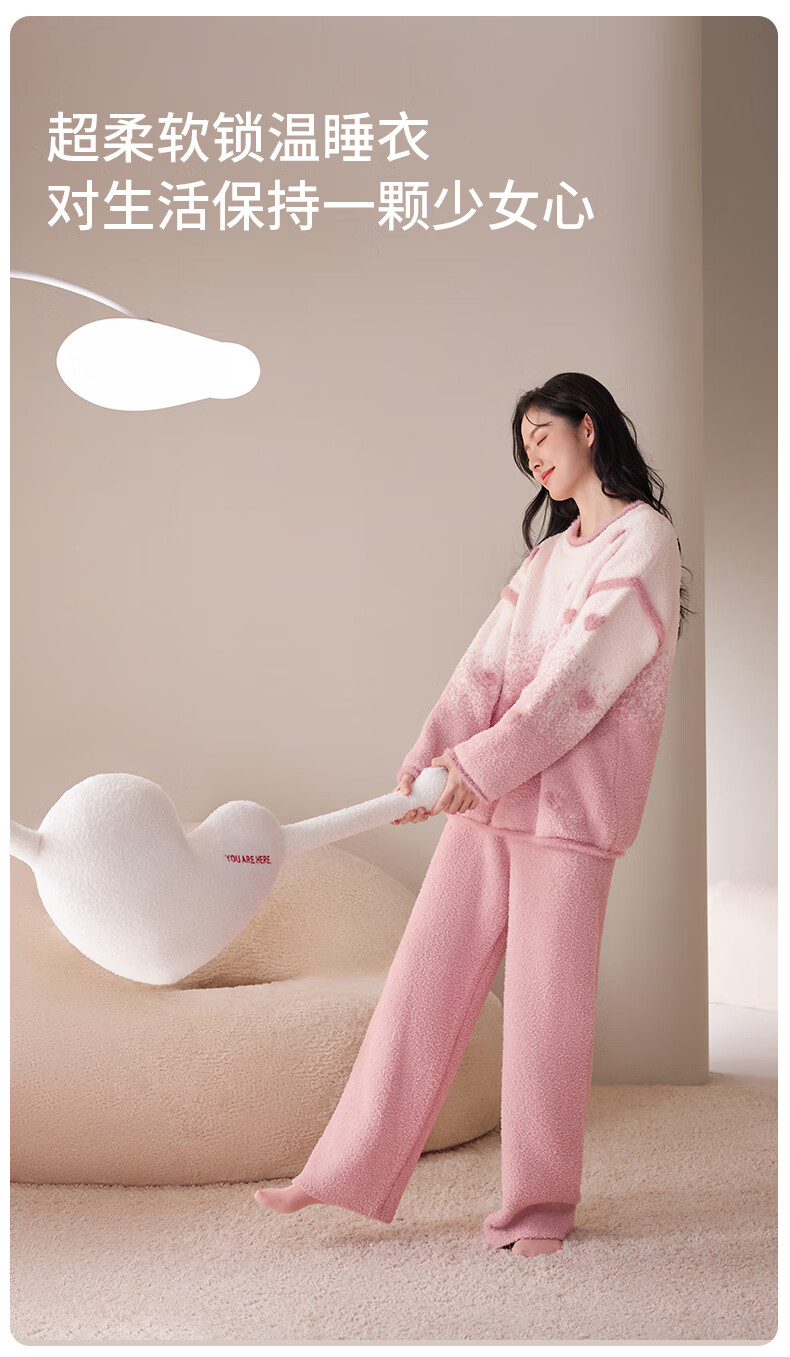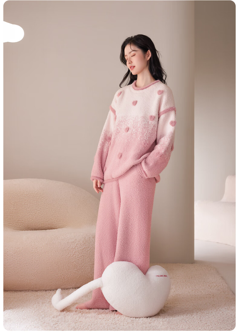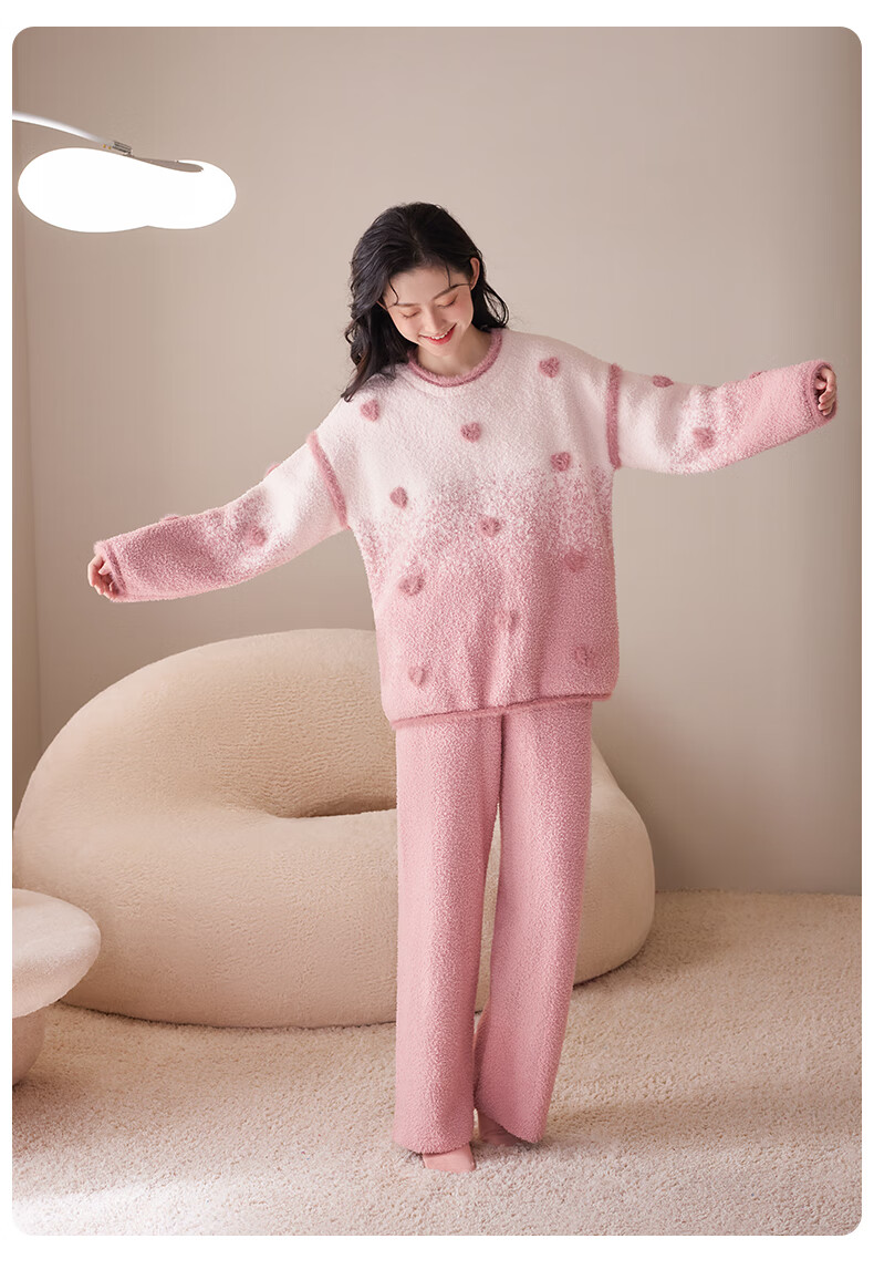 静韵【超柔软】半边绒睡衣女冬加厚保暖套装爱心甜美软棉棉家居服