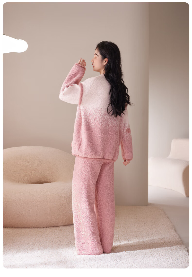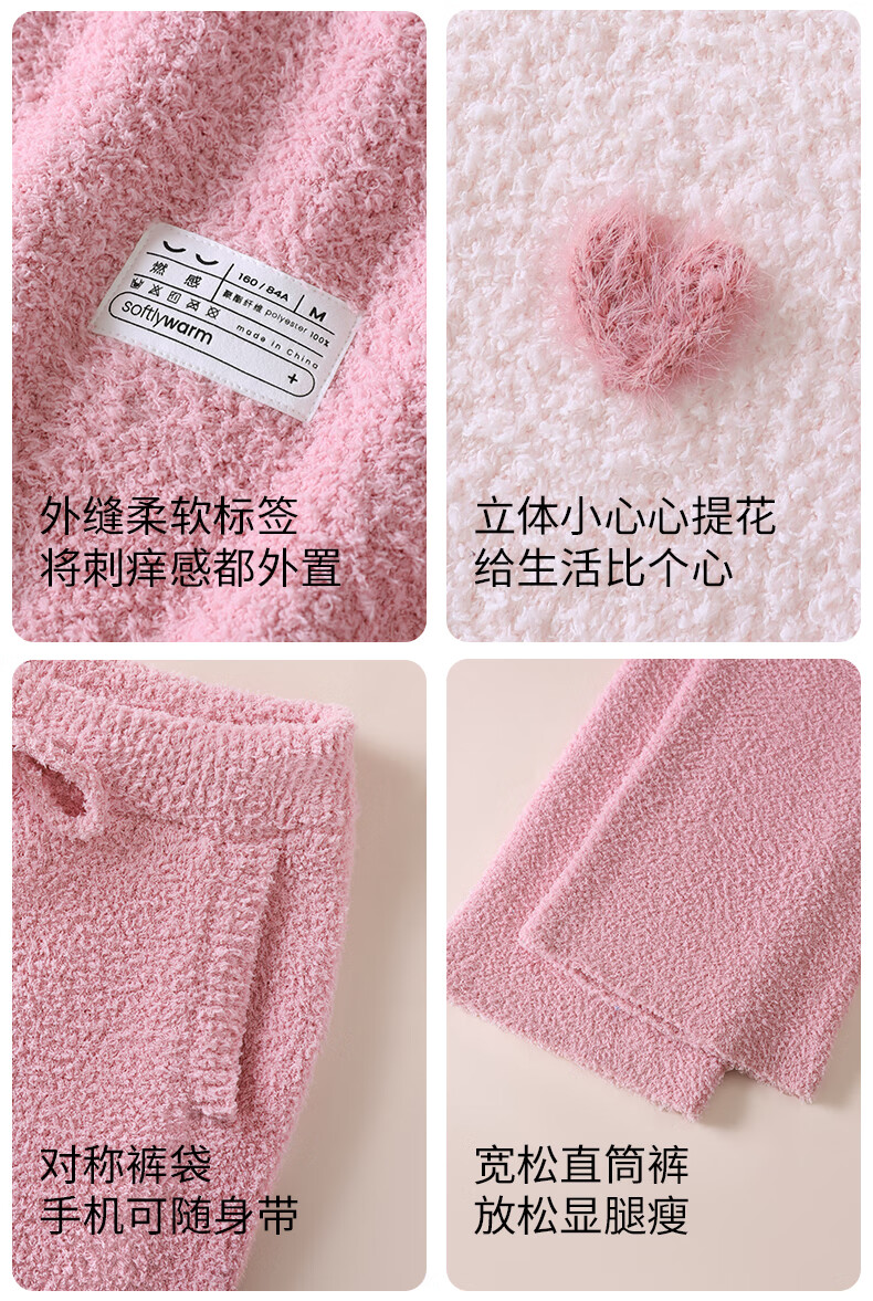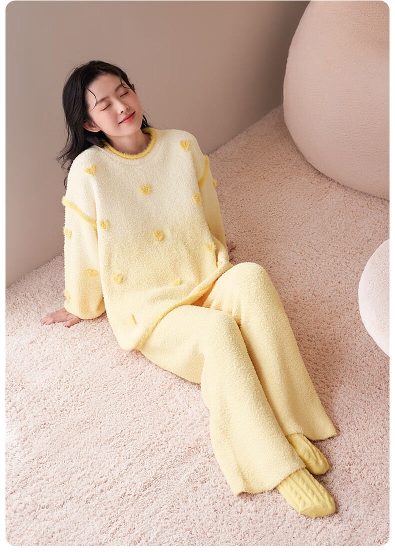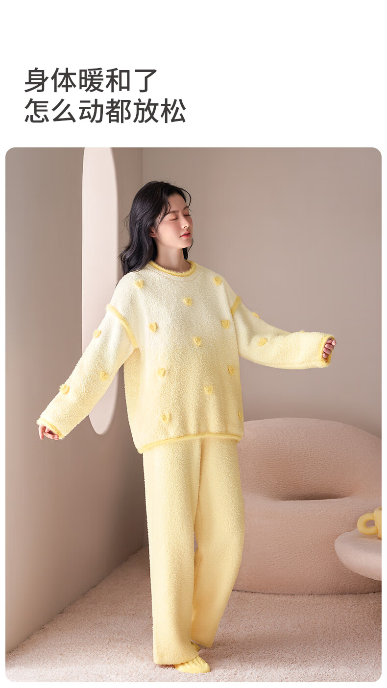 静韵【超柔软】半边绒睡衣女冬加厚保暖套装爱心甜美软棉棉家居服