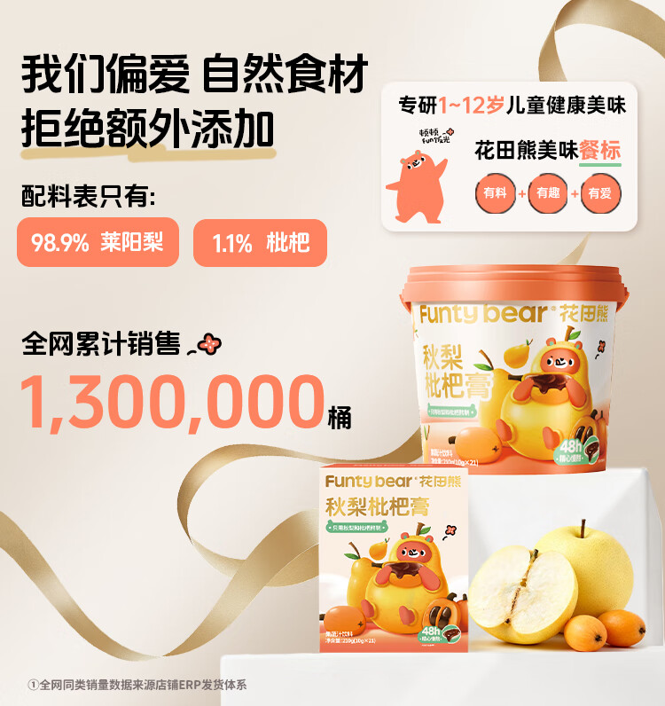 花田熊儿童枇杷秋梨膏官方旗舰店正品枇杷梨膏秋梨糖无添加防腐剂零食 【48小时慢熬】秋梨枇杷膏 210g*2罐 【普通快递】