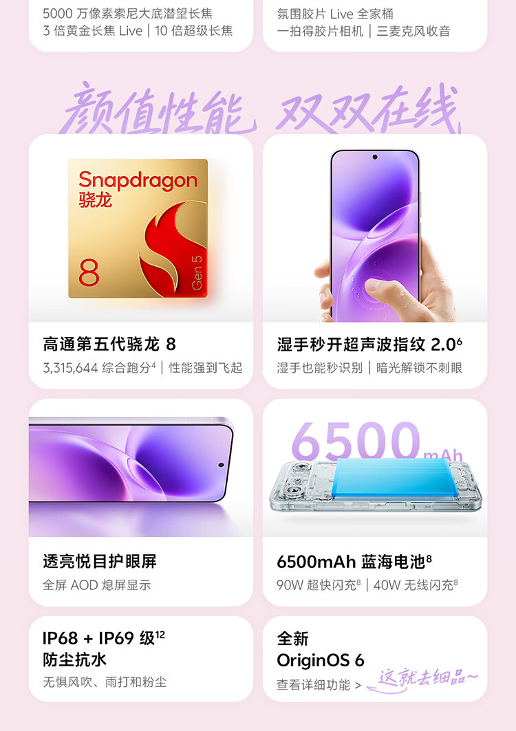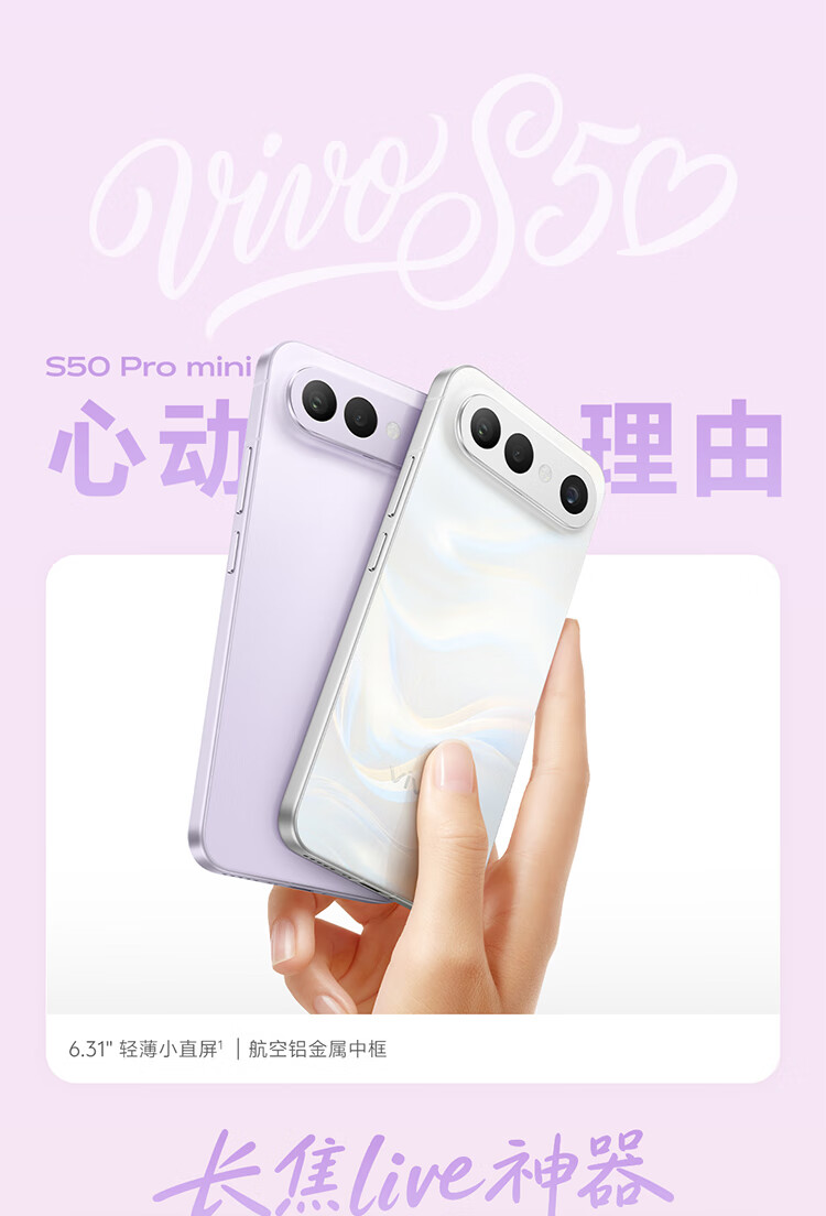 vivo S50 Pro mini 16GB+512GB 灵感紫 主摄级长焦Live 超声波指纹2.0 AI拍照手机【京东快递】