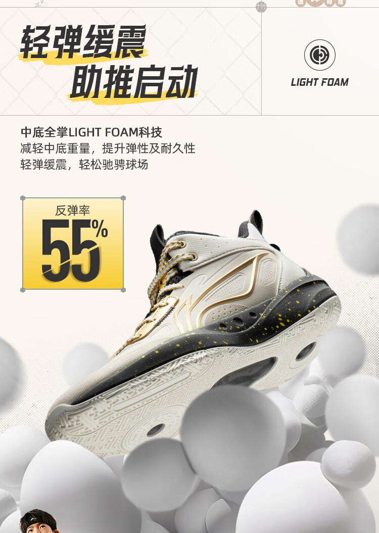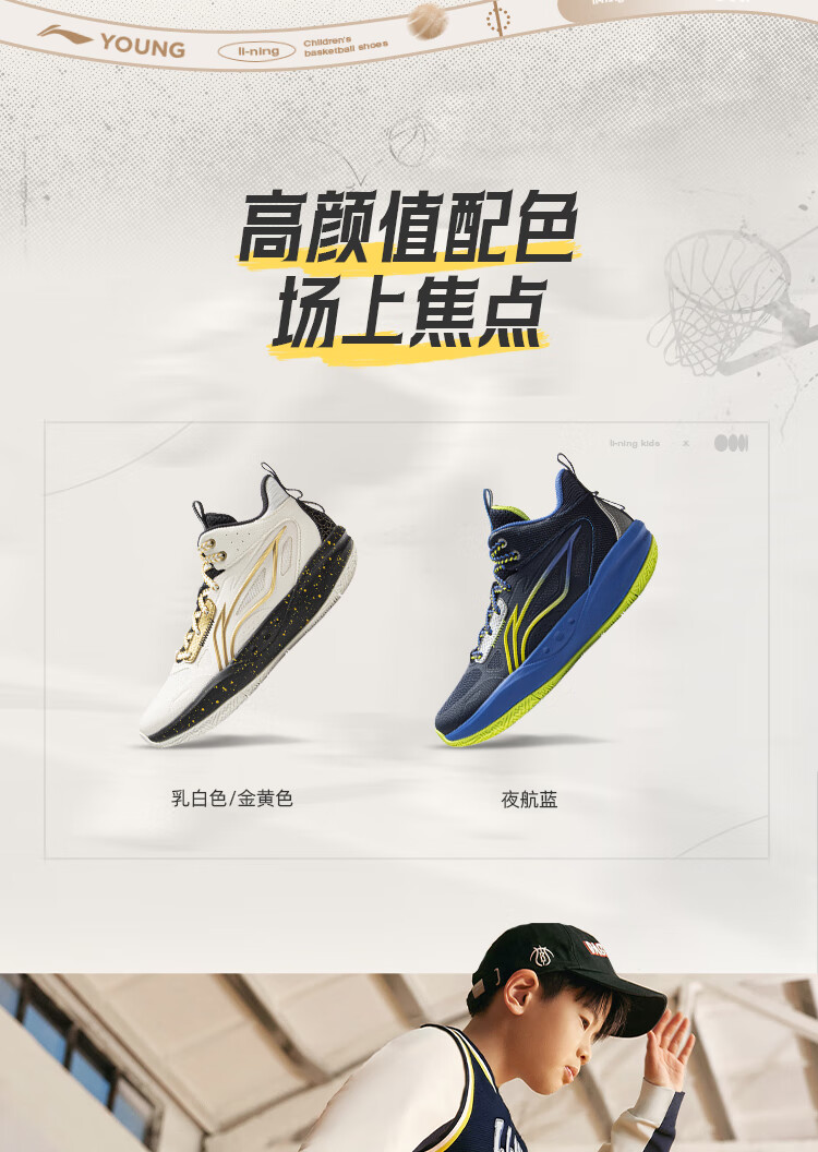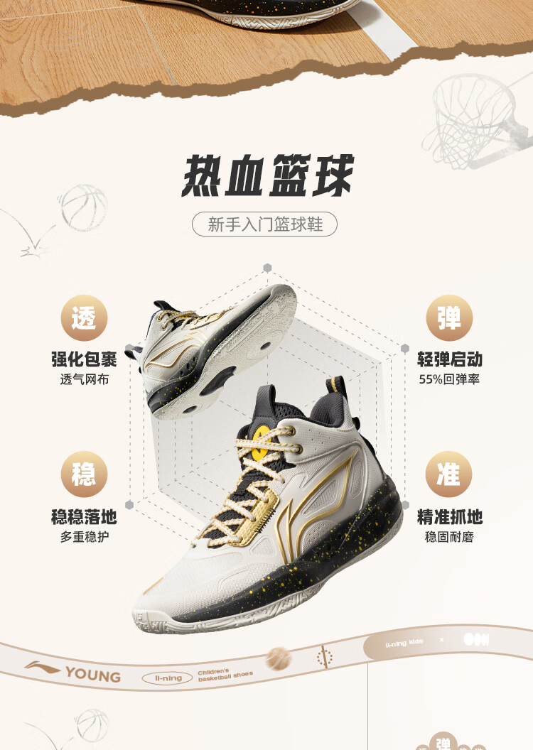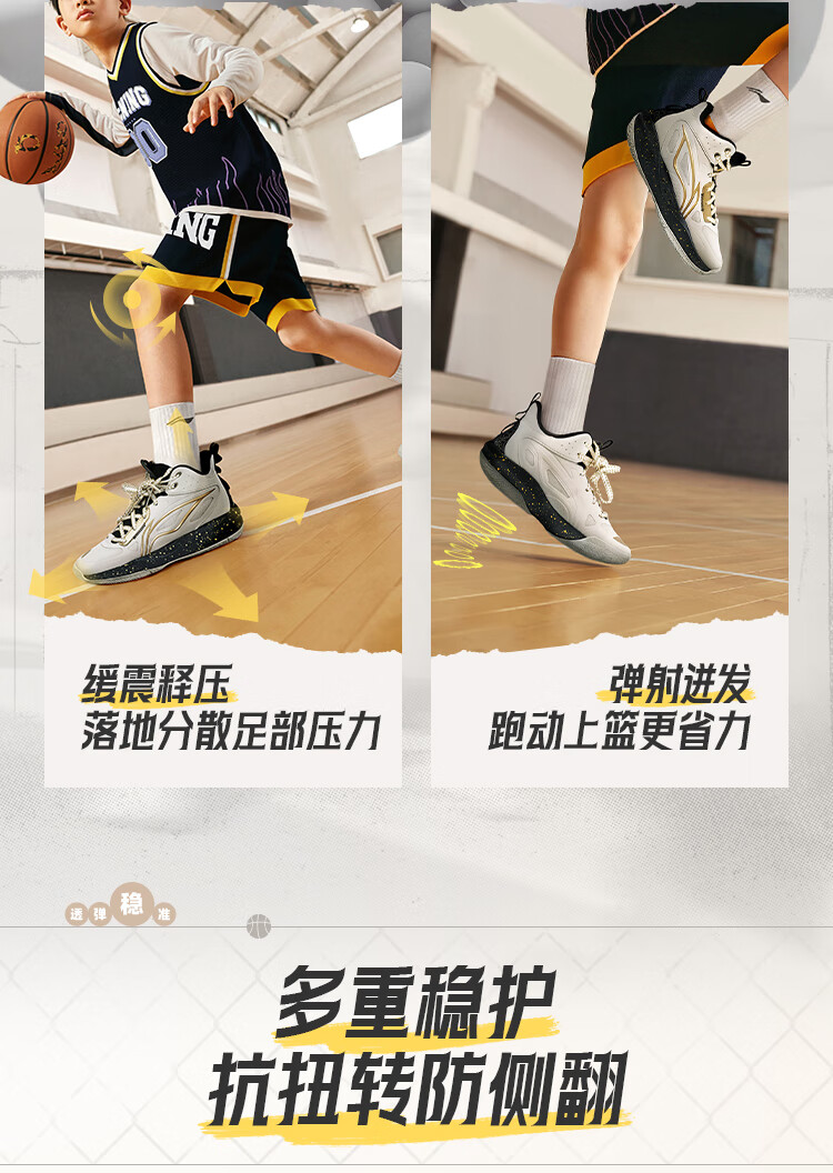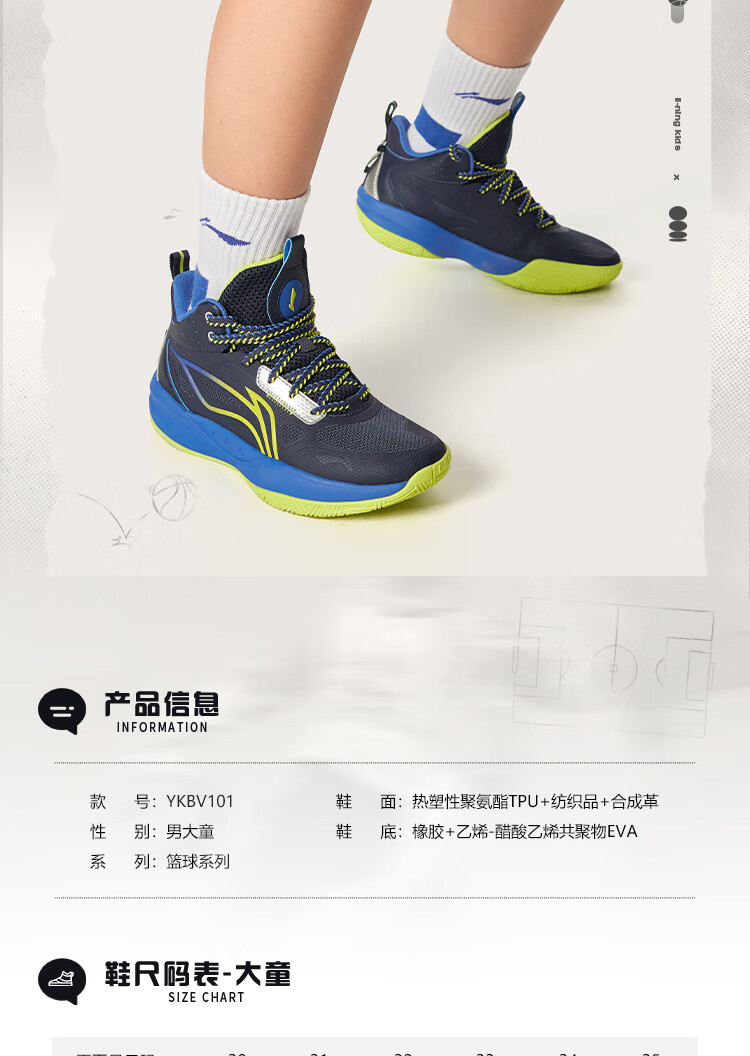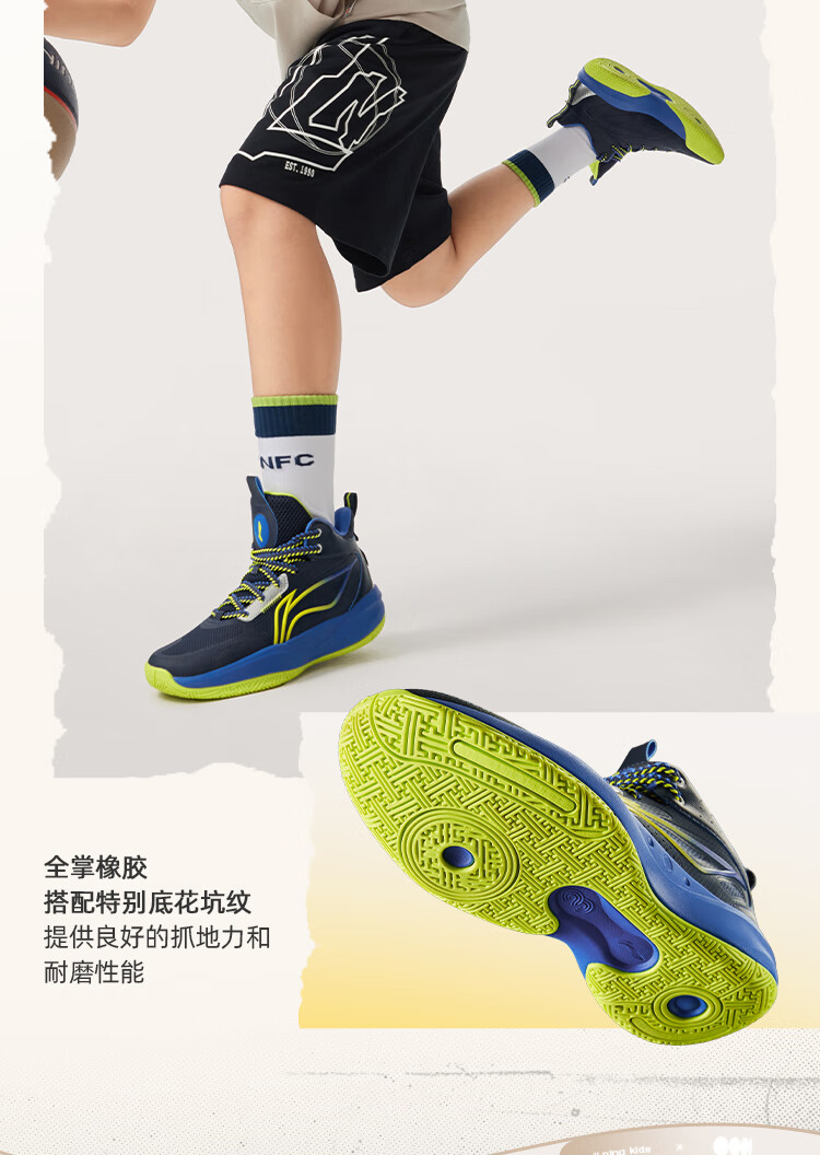 李宁童鞋儿童篮球鞋男大童光能1 V2反光减震回弹运动鞋35YKBV101-3