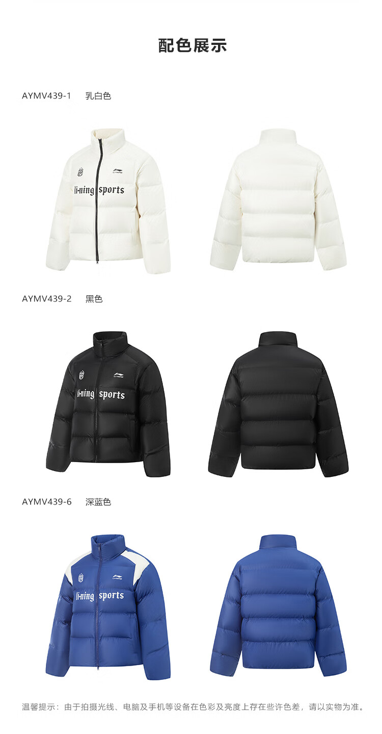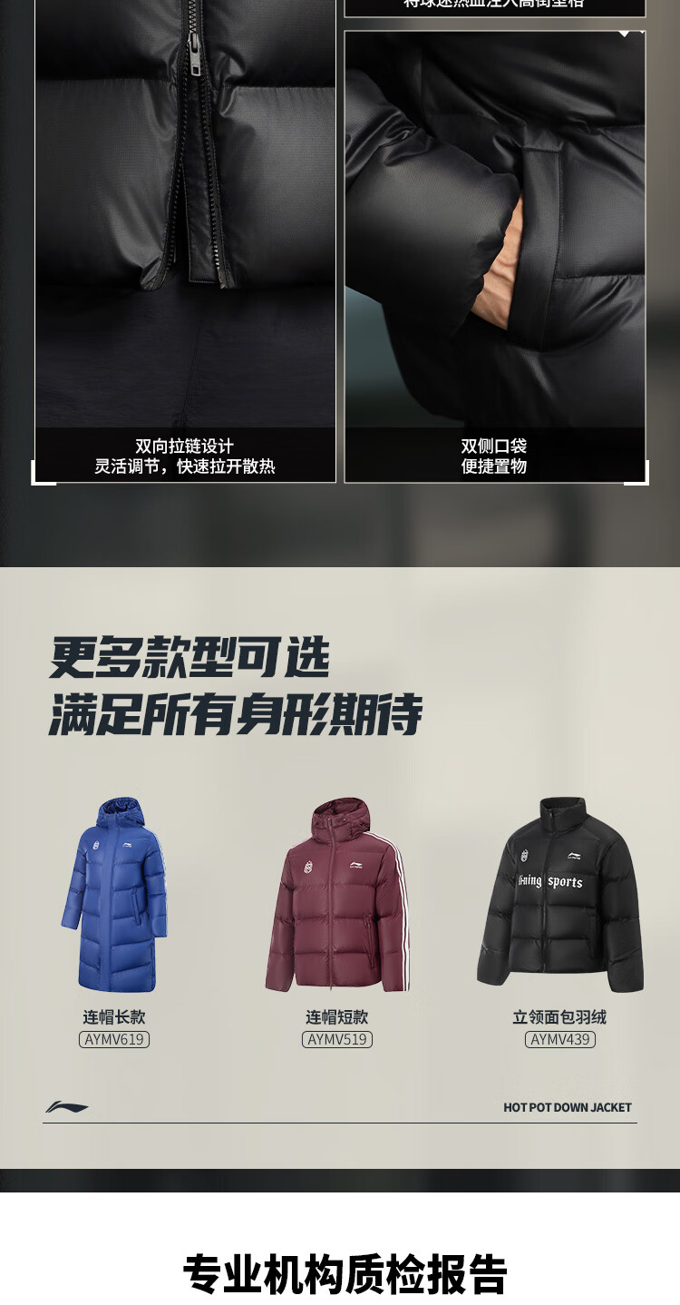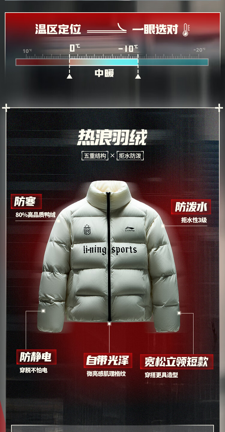 李宁热浪羽绒|保暖短羽绒服男女同款2025新款运动外套AYMV439