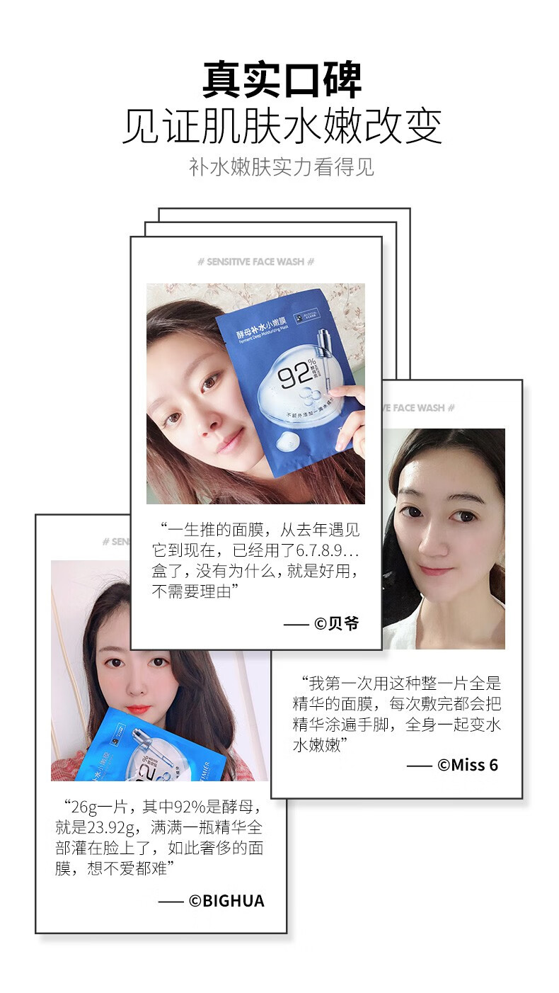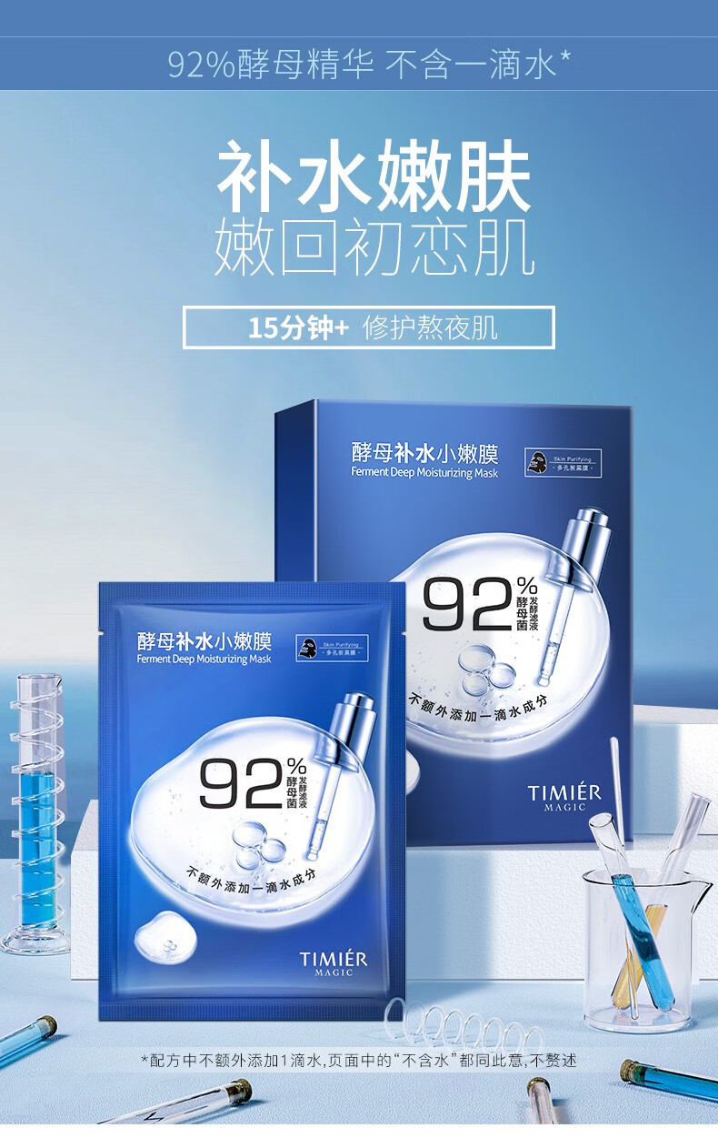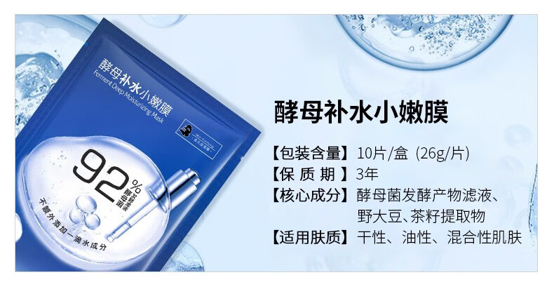 婷美 | 美肌 婷美美肌酵母补水小嫩膜26g*10片精华滋润护肤保养92%酵母精华液深层补水渗透修护