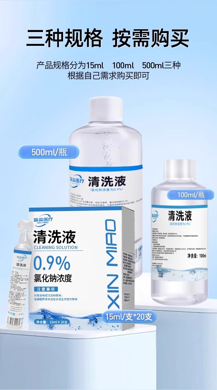 馨淼医疗0.9%生理盐水医用清洗液海盐水小支装瓶装敷脸生理盐水洗鼻清洗 【0.9%盐水浓度清洗液】100ml x3瓶