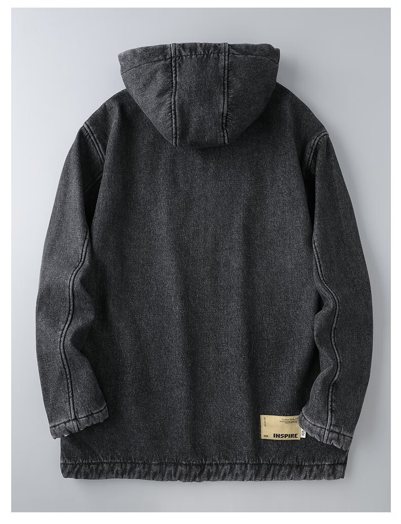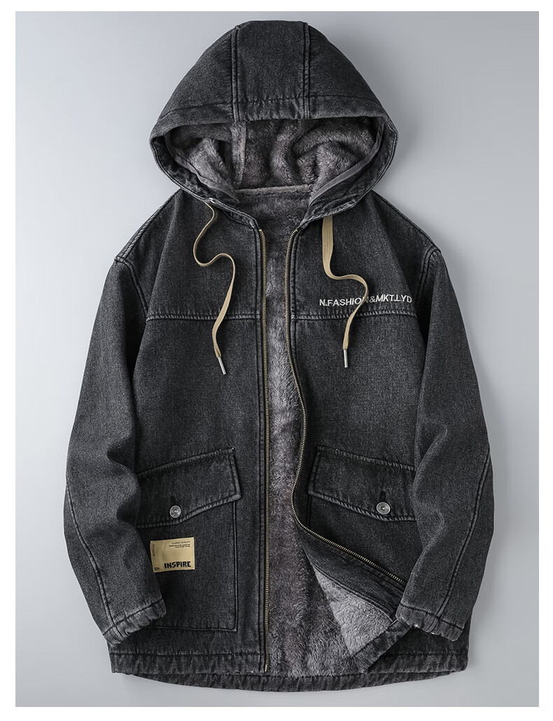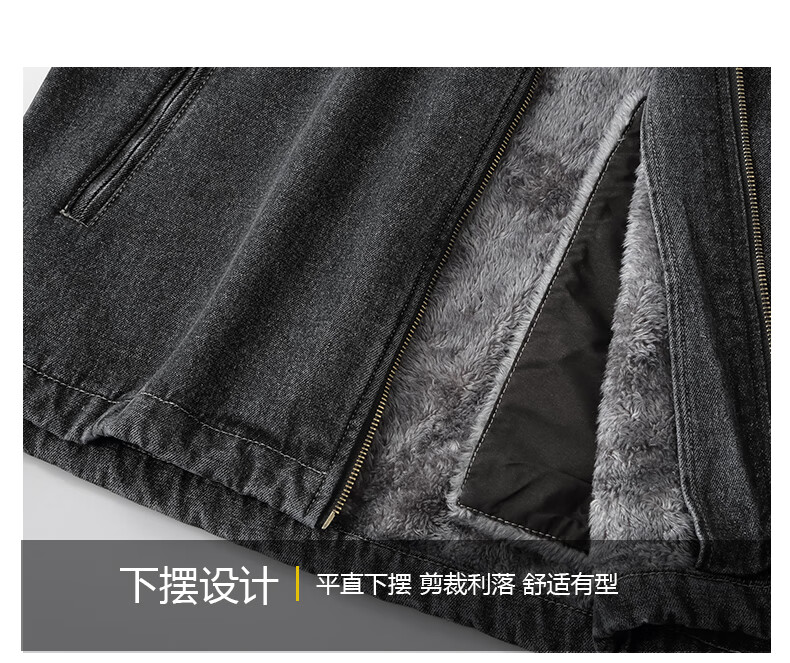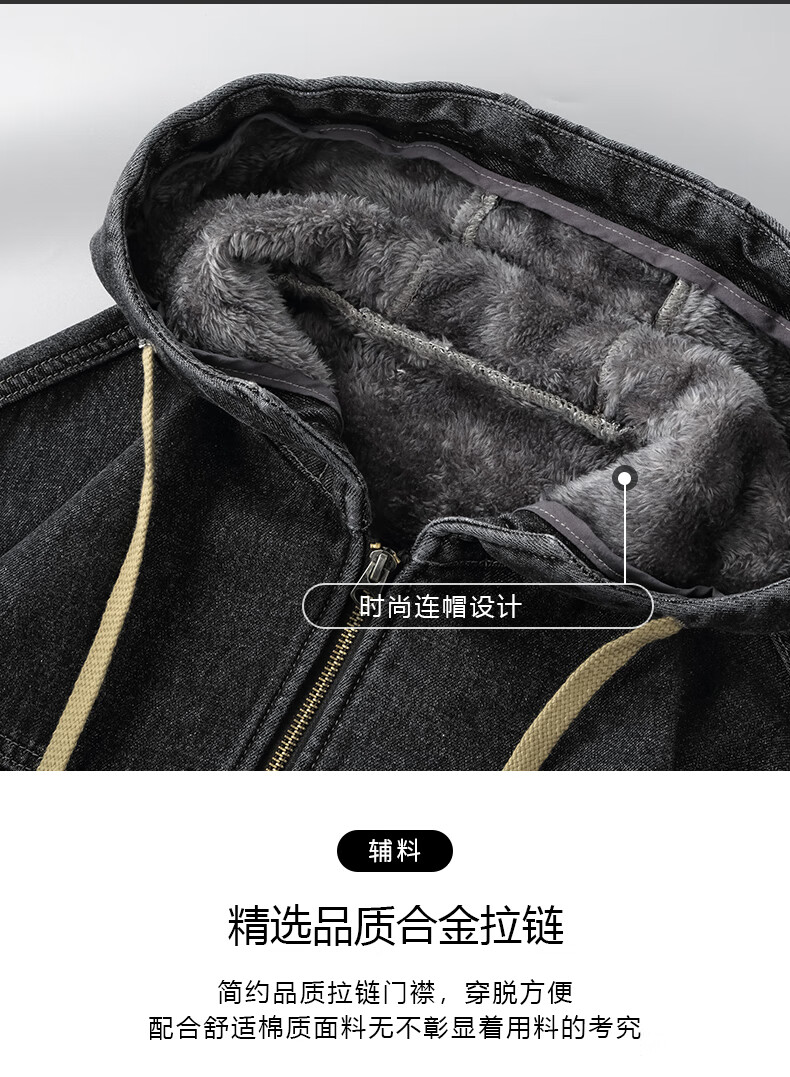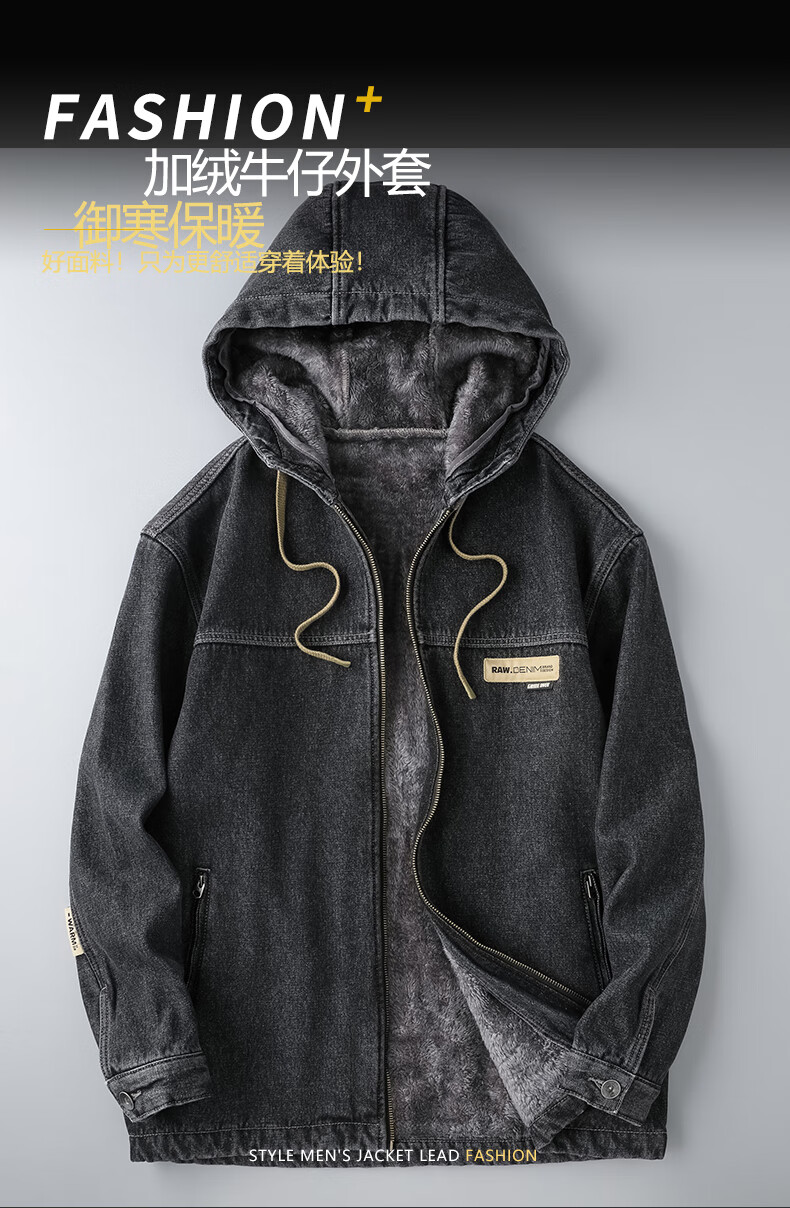 JEEP SPIRIT轻奢连帽加绒牛仔外套男秋冬宽松大码中长款加厚拉链休闲棉衣夹克 深灰色 X8243牛仔外套 加绒 2XL 170-185斤