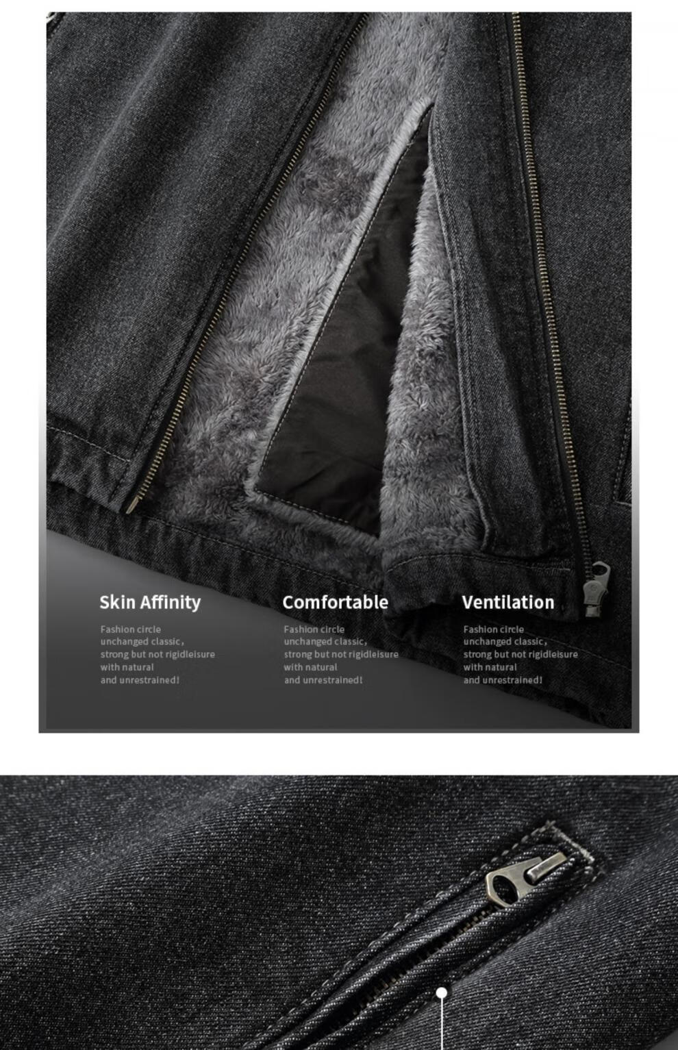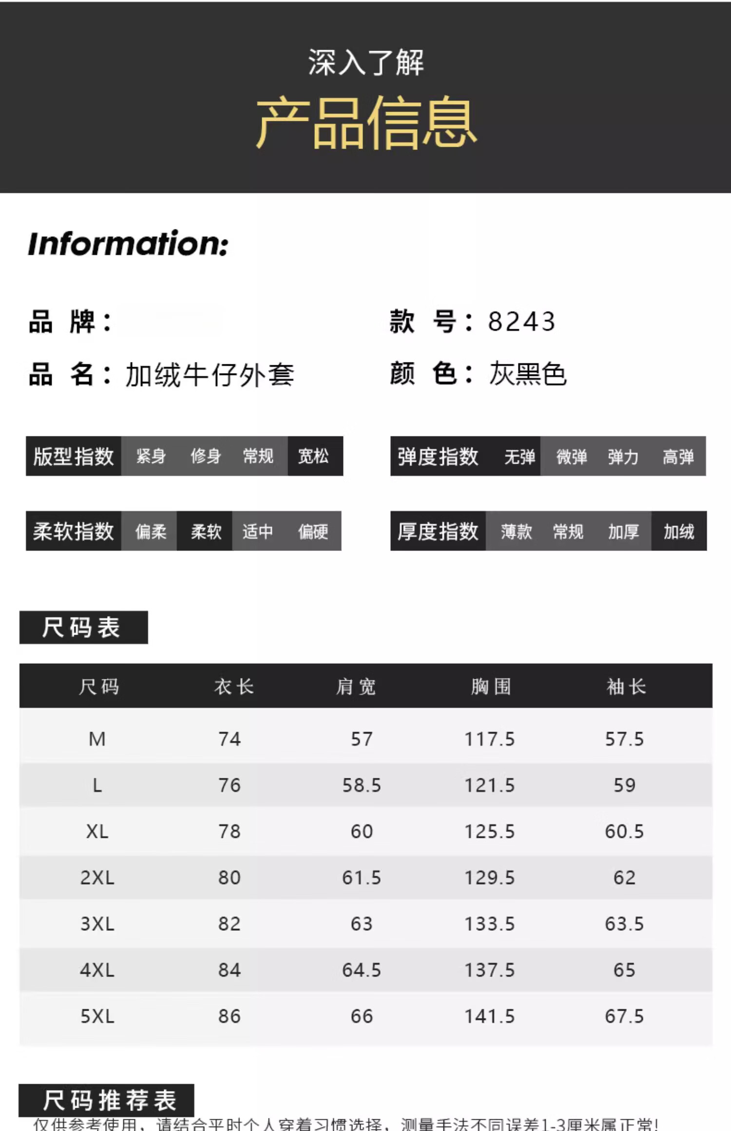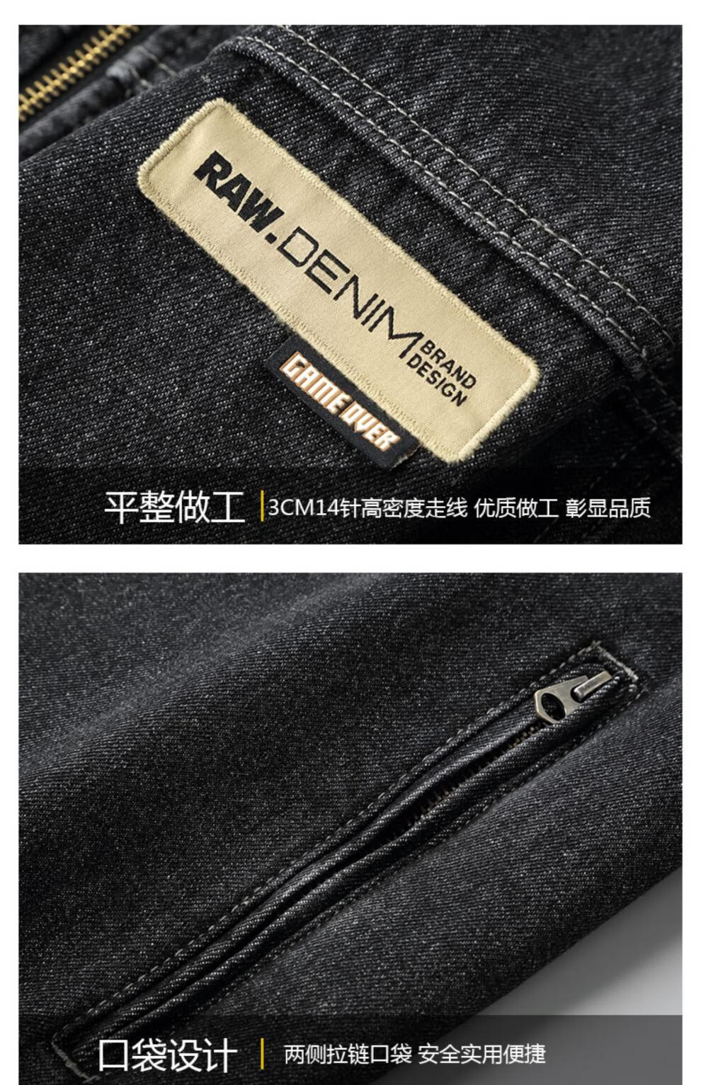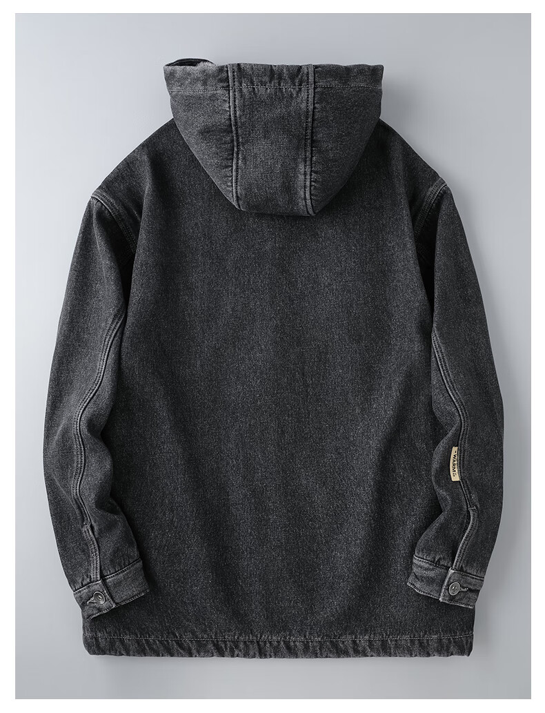 JEEP SPIRIT轻奢连帽加绒牛仔外套男秋冬宽松大码中长款加厚拉链休闲棉衣夹克 深灰色 X8243牛仔外套 加绒 2XL 170-185斤
