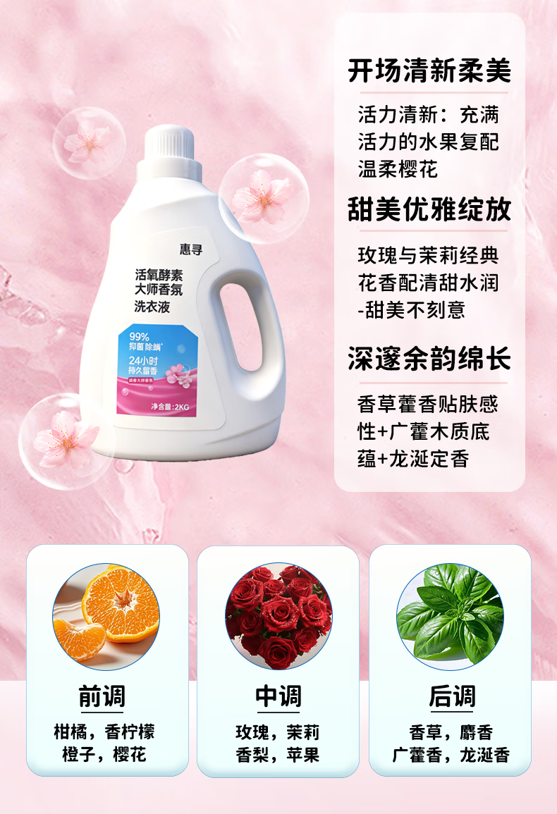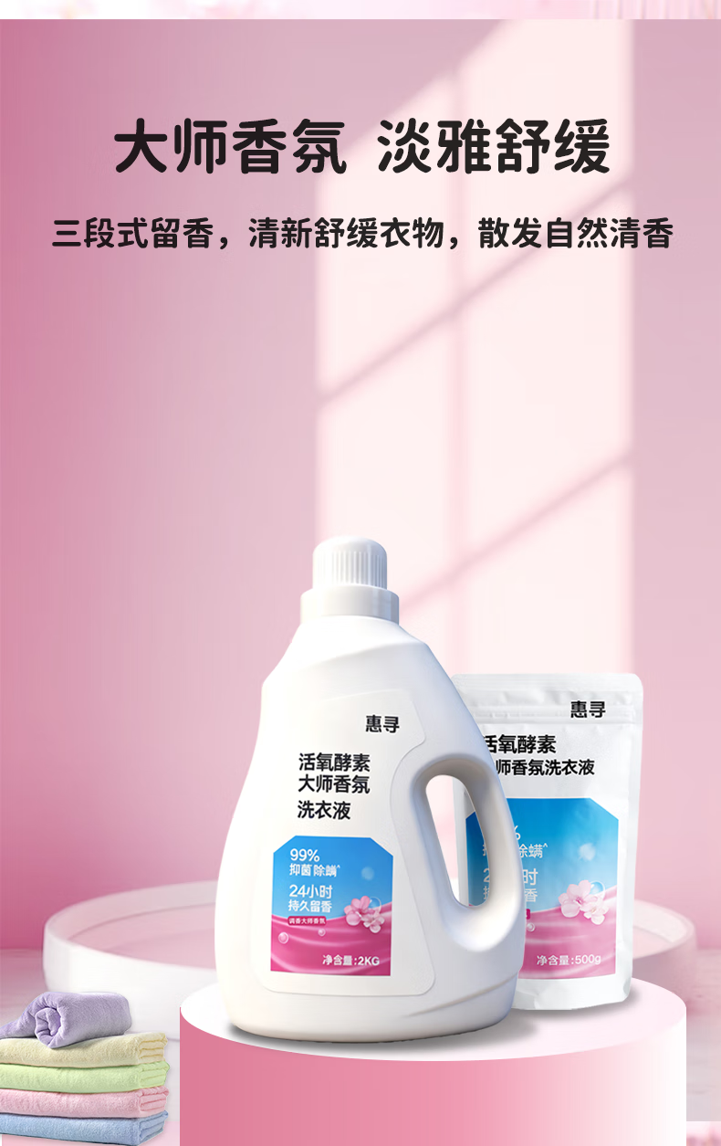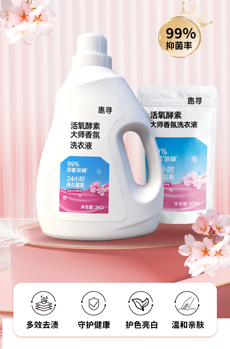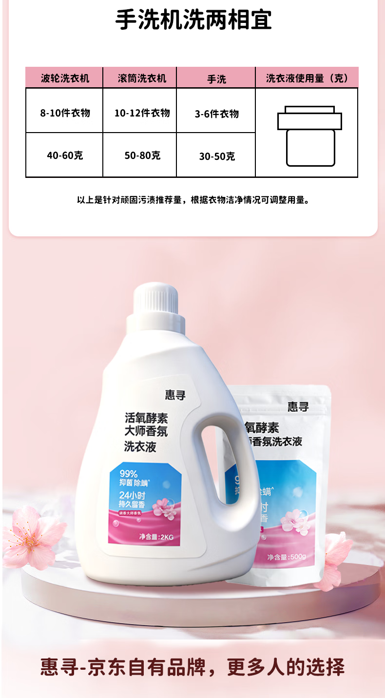 惠寻持久留香洗衣液2kg+500g洁净大师香氛手洗易漂不含磷除菌除螨护色 活氧大师香氛5斤