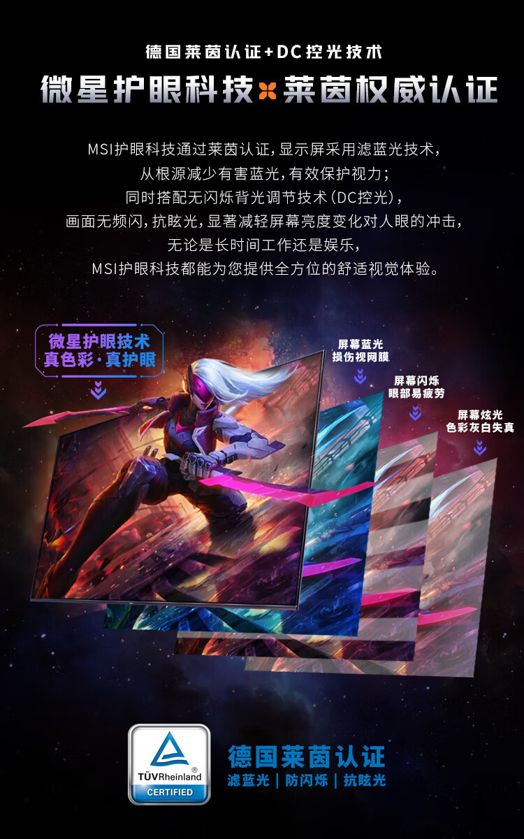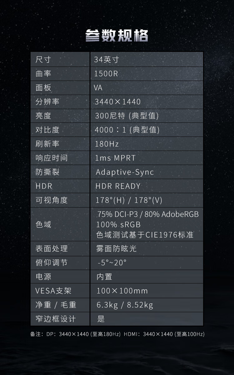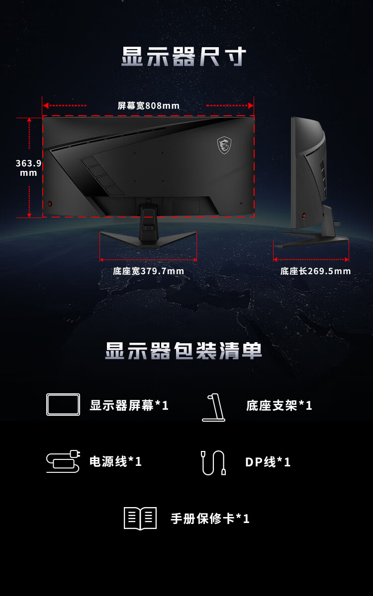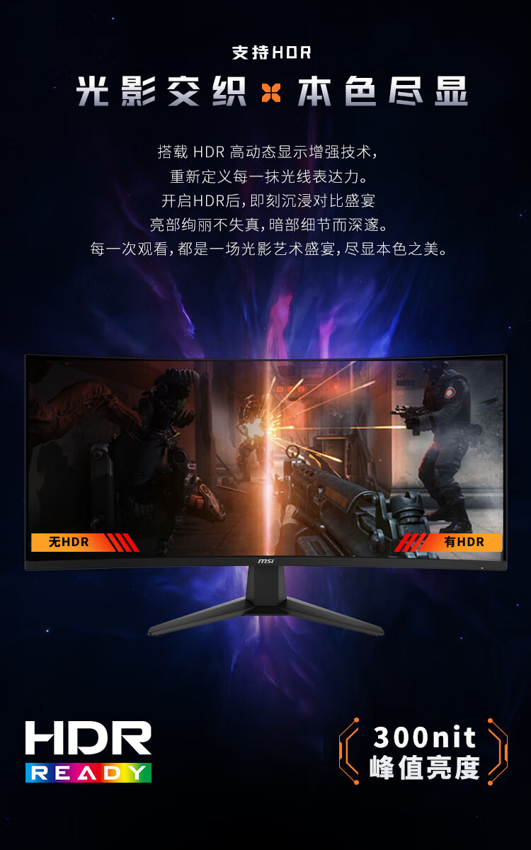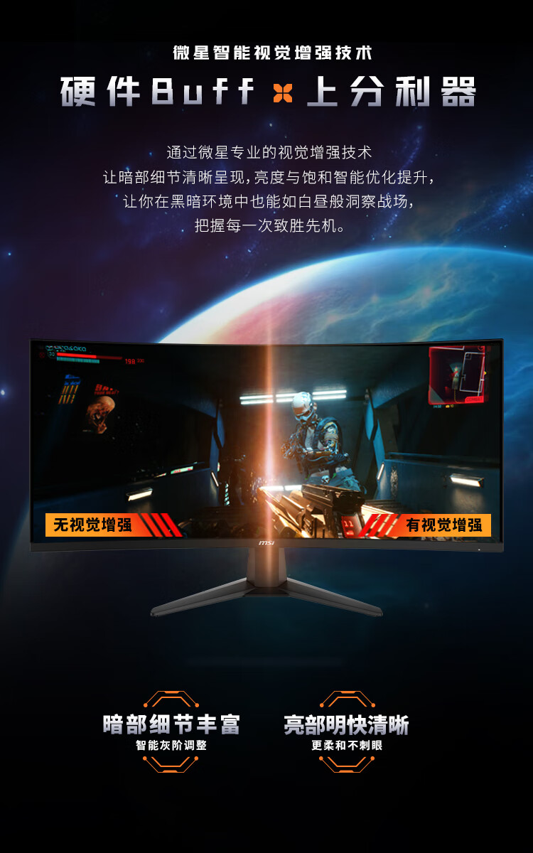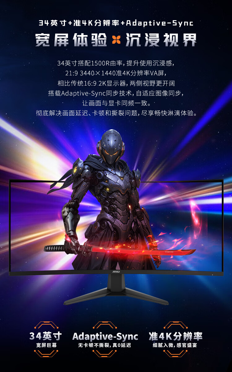 微星(MSI)34英寸 准4K 180Hz 支持HDR 曲面屏 1500R 1ms响应 低蓝光 莱茵护眼认证 游戏电竞显示器MAG 346CQ