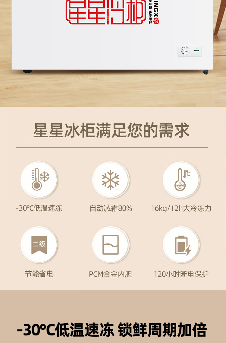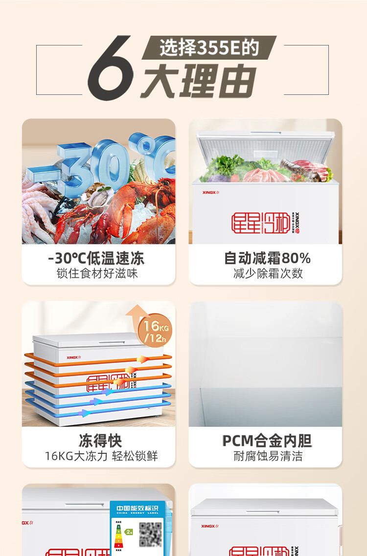 星星(XINGX)355L单温家用小型冰柜 大容量减霜保鲜净味节能冰箱 冷藏冷冻两用4D均冷冷柜 BD/BC-355E 国家补贴