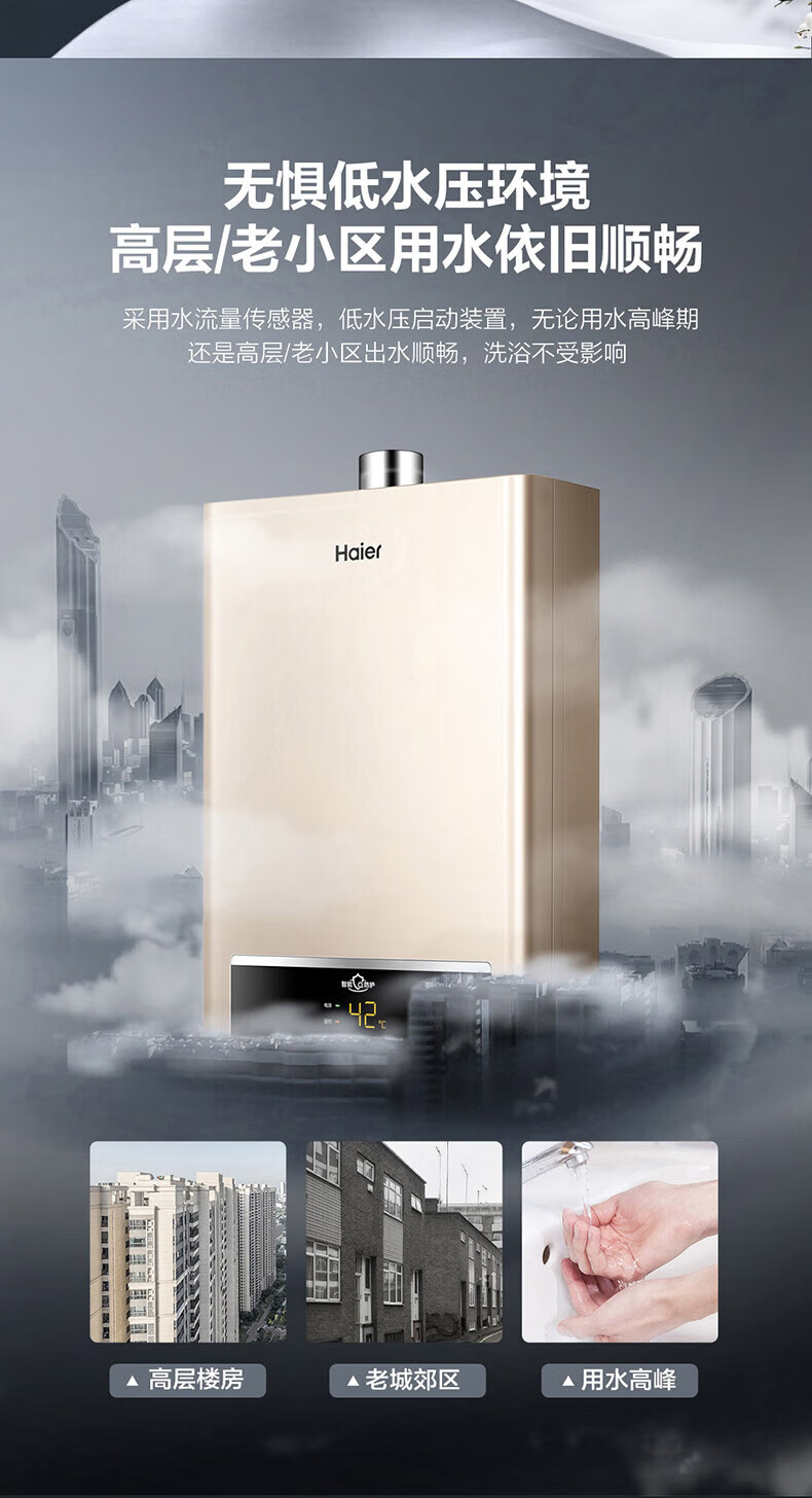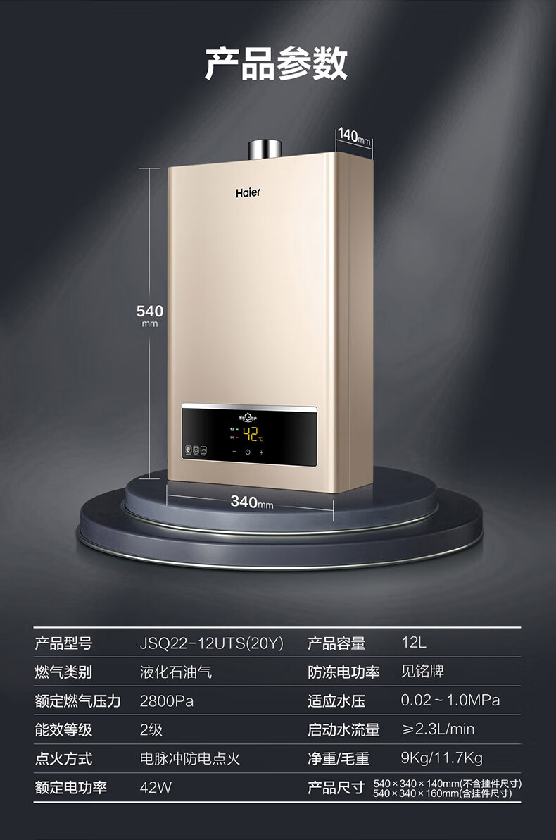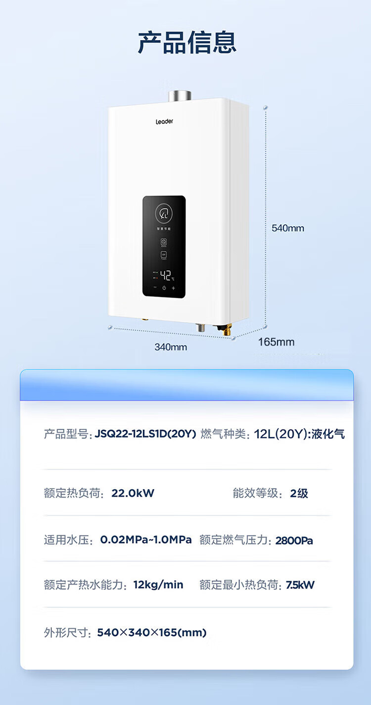 海尔(Haier)智家出品Leader系列液化气热水器UTSPRO家用大水量燃气热水器变频低水压启动恒温煤气热水器LVS 12L 统帅液化气款热卖榜TOP【LVS】